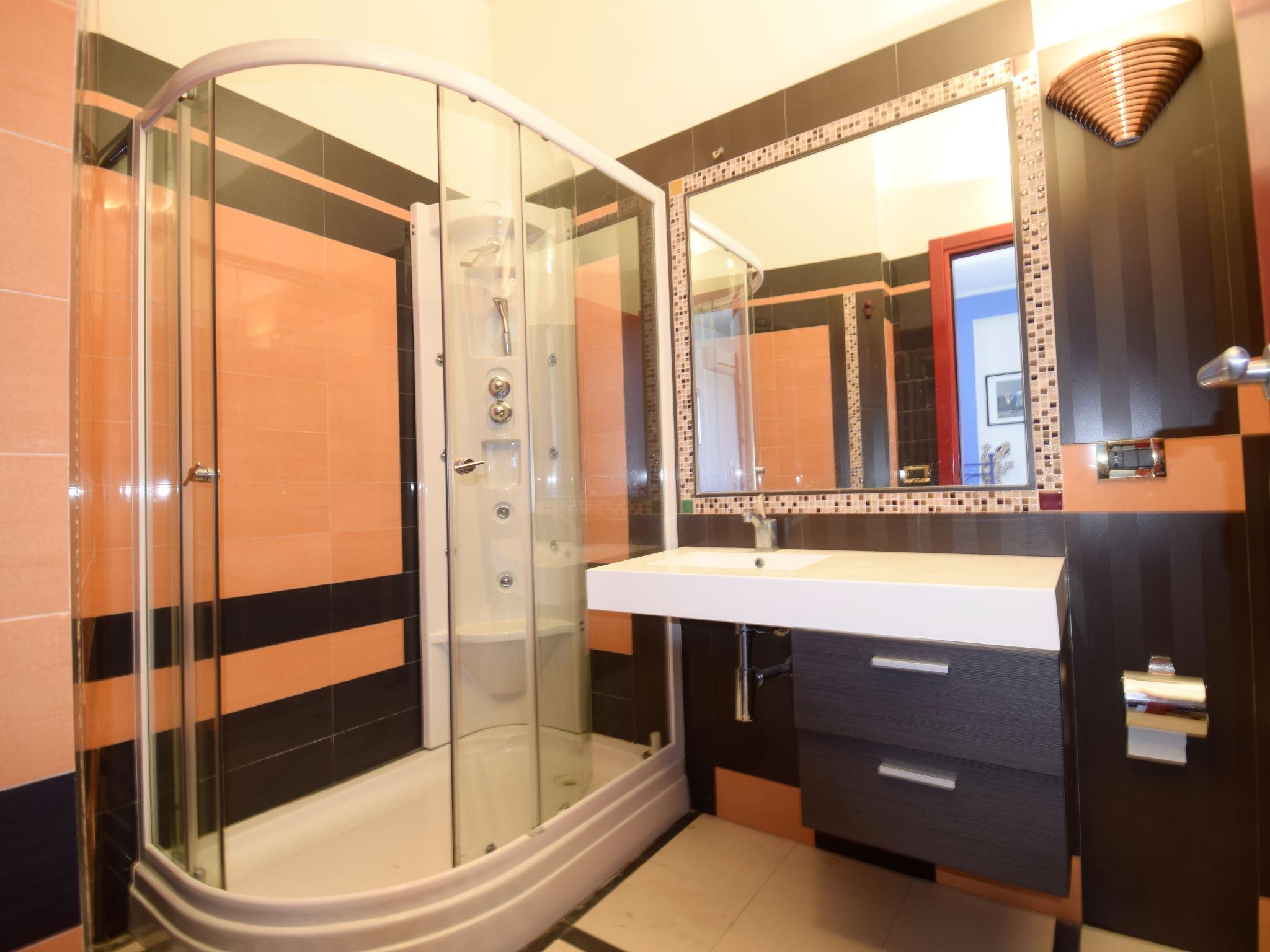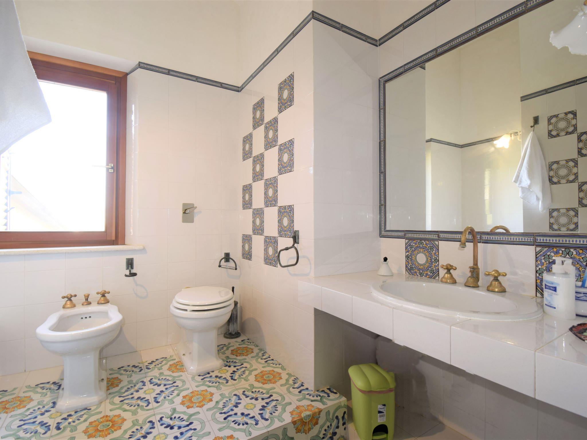 7-Zimmer-Villa 175 m2 auf 3 Stockwerken, im Erdgeschoss. Zweckmässig und komfortabel eingerichtet: Wohn-/Esszimmer mit offenem Kamin (nur Deko), TV (Flachbildschirm). Ausgang zur Terrasse. Eingang mit Klimaanlage. 1 Doppelzimmer mit Klimaanlage. Kochnische (4 Kochplatten, Backofen, Geschirrspüler, Toaster, Wasserkocher, Mikrowelle, elektrische Kaffeemaschine) mit Ventilator. Ausgang zur Terrasse. Dusche/Bidet/WC. Keine Heizmöglichkeit. Unteres Geschoss: (Aussentreppe) 1 Doppelzimmer mit Dusche/Bidet/WC und Klimaanlage. 1 Zimmer mit 2 Betten, Dusche/Bidet/WC und Klimaanlage. Obergeschoss: Eingang mit Klimaanlage. 1 Doppelzimmer. Ausgang zum Balkon. 1 Zimmer mit 2 Betten. Bad/Bidet/WC. Keine Heizmöglichkeit. 2. Obergeschoss: (Aussentreppe) 1 Doppelzimmer mit Panoramafenster mit Dusche/Bidet/WC, Doppelwaschbecken, Sprudelbad und Klimaanlage. Balkon 4 m2, Terrasse 70 m2, überdacht. Terrassenmöbel, Gartengrill, Liegestühle. Schöne Panoramasicht auf das Meer und die Landschaft. Zur Verfügung: Waschmaschine, Bügeleisen, Kinderhochstuhl, Babybett bis 2 Jahre (extra), Haartrockner. Internet (Wireless LAN, gratis). Bitte beachten: Nichtraucher-Haus. Rauchmelder, Feuerlöscher. Keine interne Verbindung zwischen den separaten Wohneinheiten. Bei Belegung mit weniger Personen als der maximalen Personenzahl stehen nicht alle Schlafzimmer zur Verfügung. IT081022C2LXOV7FPW
