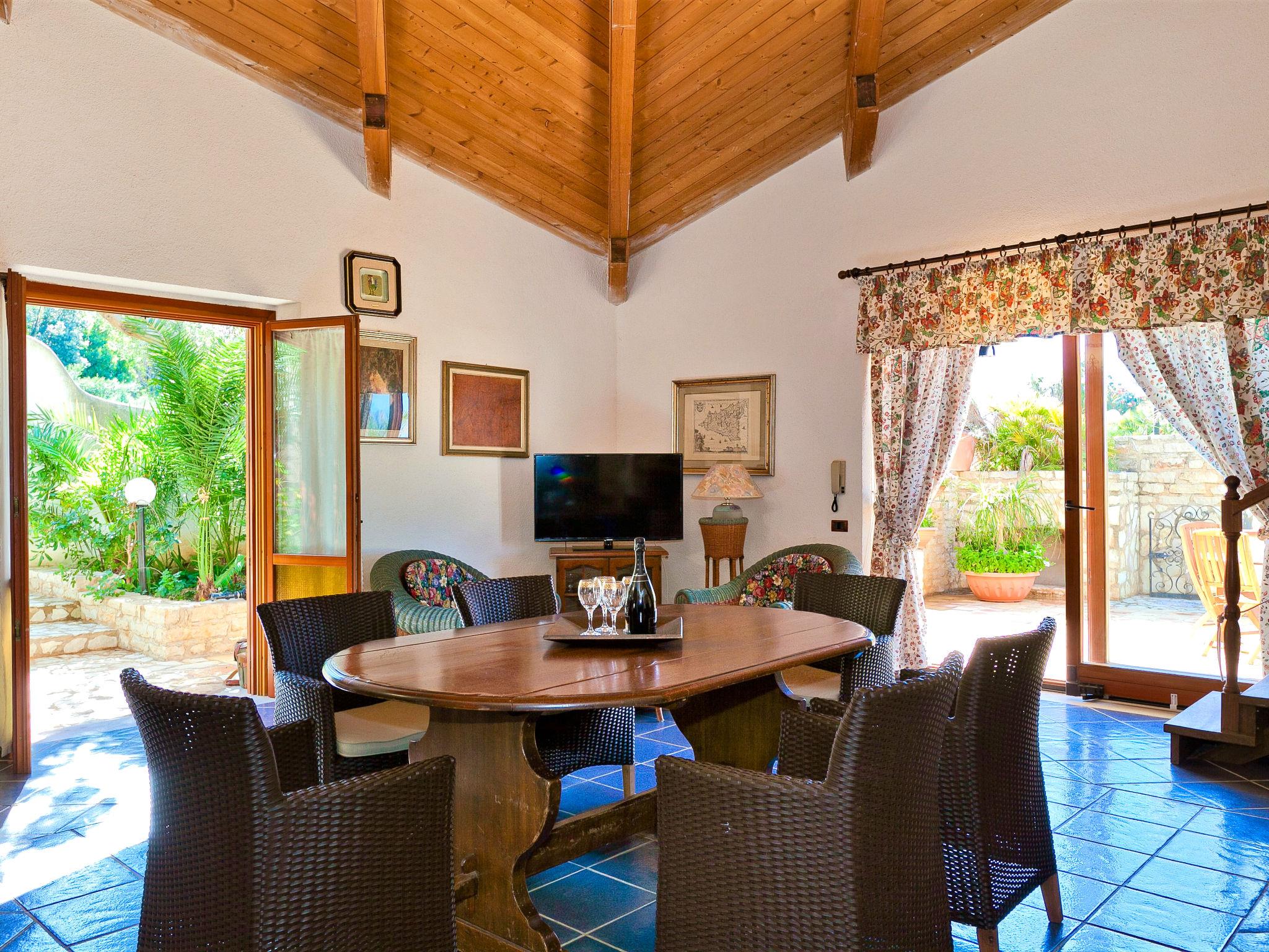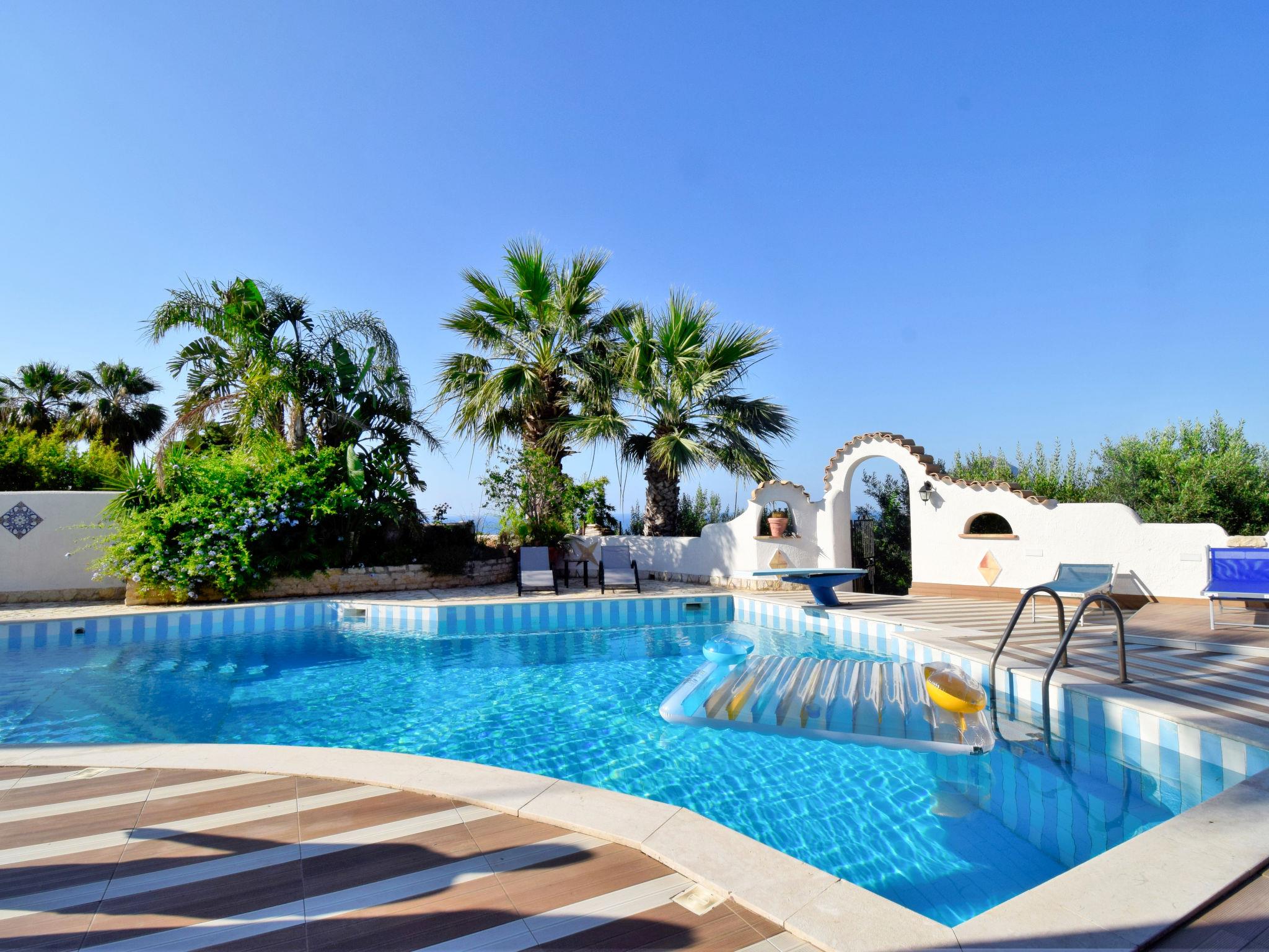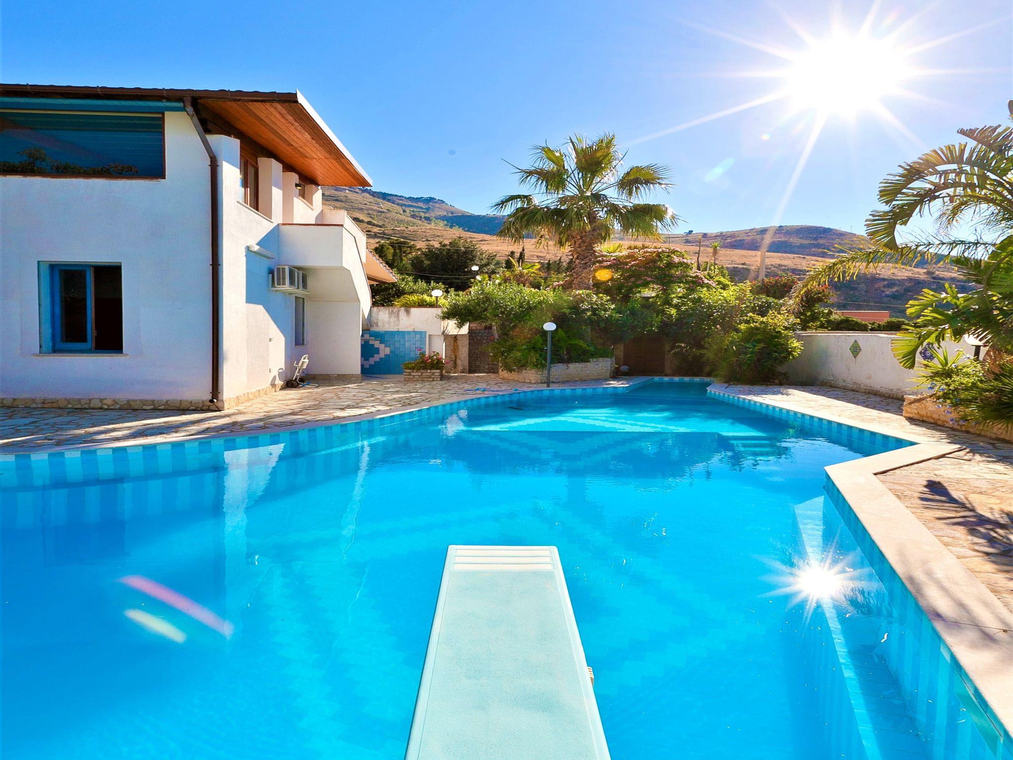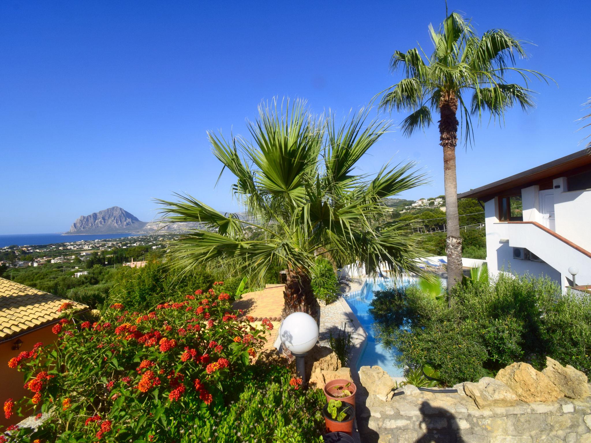 Villa "Le Palme", umgeben von Bäumen. Im Weiler Bonagia, 4.5 km vom Zentrum von Valderice, 11 km vom Zentrum von Trapani, alleinstehende, ruhige, sonnige Lage im Villenviertel, 1.5 km vom Meer, 2 km vom Strand. Zur Alleinbenutzung: Grundstück 600 m2 (eingezäunt), terrassierter Garten Blumen und Bäumen, Schwimmbad (9 x 11 m, saisonale Verfügbarkeit: 01.Apr. - 31.Okt.). Aussendusche, Gartenmöbel, Grill, Poolpflege durch den Besitzer/Gärtner. Heizung nur verfügbar von 01.Dez. - 31.Mar.. Treppenweg (4 Stufen) bis zum Haus. Öffentliche Parkplätze auf der Strasse. Supermarkt 1.5 km, Restaurant 2 km, Bar 2 km, Bushaltestelle 12 km, Bahnstation "Trapani" 12 m, Fähre "Trapani Aliscafi per Isole Egadi" 12 km, Steinstrand "Bonagia" 2 km. Nahe gelegene Sehenswürdigkeiten: Grotta di Mangiapane 9 km, Erice 12 km, San Vito lo Capo 28 km, Parco Archeologico di Segesta 35 km, Marsala-Saline 40 km, Palermo 95 km. Wandergebiete: Riserva Naturale Monte Cofano 11 km, Riserva Naturale dello Zingaro 39 km. Bitte beachten: Fahrzeug empfohlen.