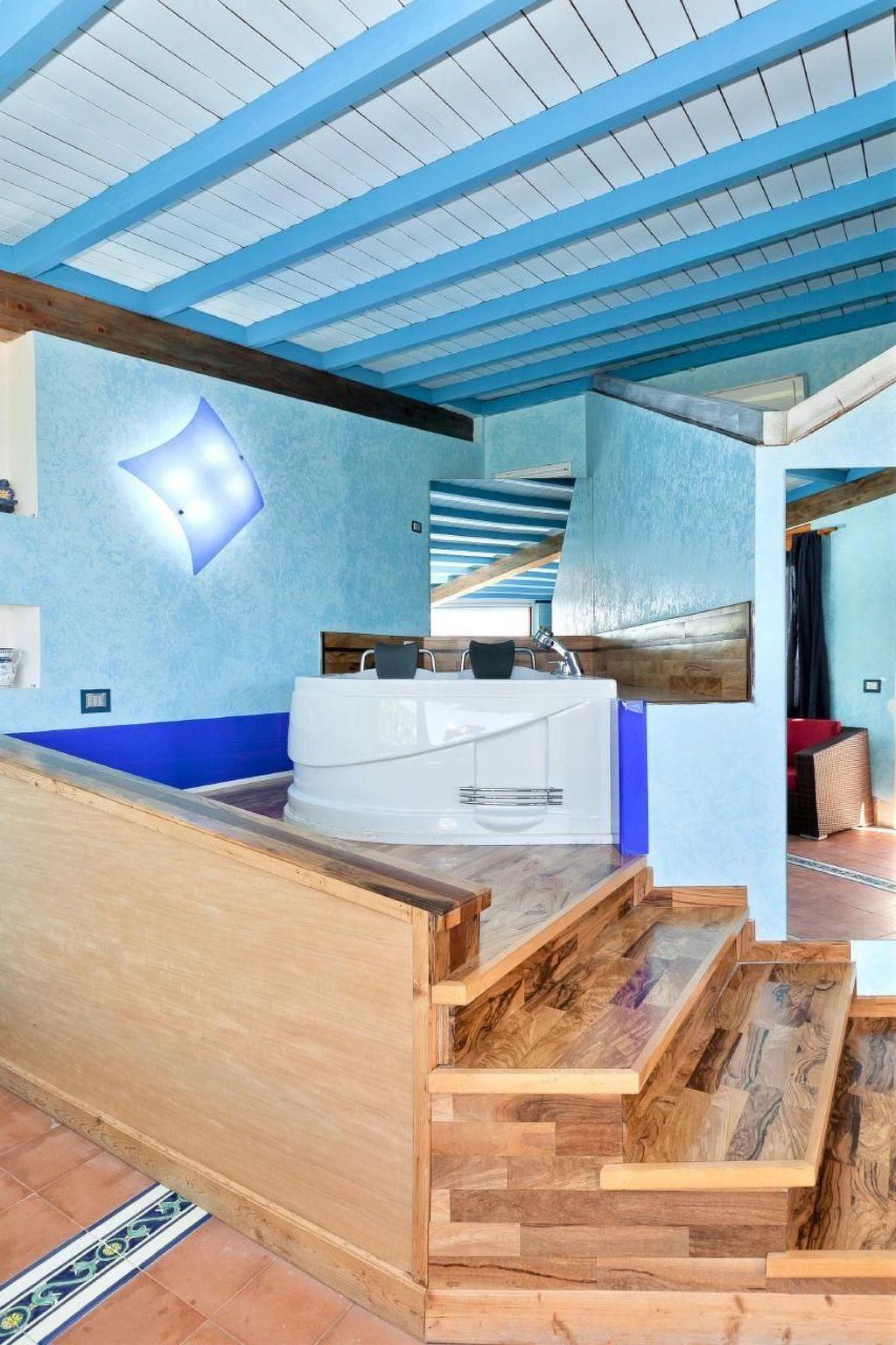 Im ersten Stock gibt es zwei Schlafzimmer, ein Doppelschlafzimmer mit herrlichem Blick auf das Meer, den Pool und den Garten unten und ein Zweibettzimmer. Das Badezimmer ist mit einer Badewanne ausgestattet. Die Suite im ersten Stock ist ein wunderschönes Element, das die Villa verschönert. Sie ist über eine Außentreppe zu erreichen, um eine vollständige Privatsphäre zu gewährleisten. Dieses Zimmer ist ein großartiger Ort zum "Träumen", umgeben von großen Fenstern mit Blick auf das Meer von San Vito Lo Capo und den Monte Cofano, der sich bis zum Meer erstreckt. Der Aufenthalt in der Suite haben Sie die Möglichkeit, nicht nur eine spannende Landschaft zu genießen, sondern auch eine besondere Einstellung, durch eine große Jacuzzi im selben Schlafzimmer gekennzeichnet, um unvergessliche Momente in völliger Entspannung zu verbringen. Die Suite hat noch ein weiteres Bad mit Whirlpool-Dusche und einen begehbaren Kleiderschrank. Die Einrichtung und die Innenfarben machen das Haus zu einem sehr charmanten Ort. Der Anbau der Villa kann vier Personen beherbergen, in der Tat gibt es zwei Zimmer, die aus einem Doppelzimmer mit eigenem Bad und ein Zweibettzimmer mit eigenem Bad bestehen.