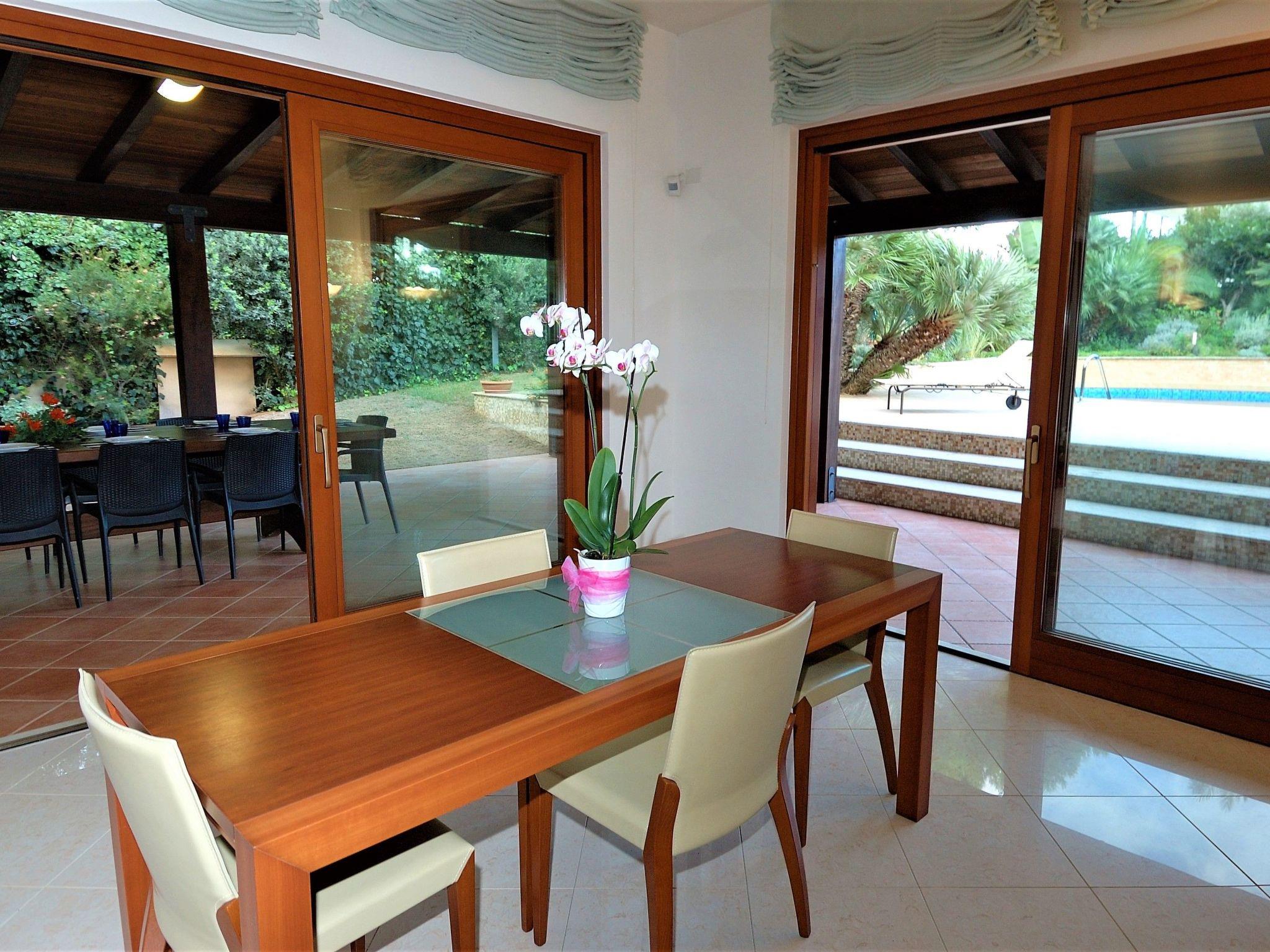 Die Villa, vor kurzem gebaut, hat einen einfachen, modernen Stil. Sie erstreckt sich über zwei Ebenen mit direktem Zugang vom großen und hellen Wohnzimmer mit verschiedenen Bereichen: Essbereich, Entspannungsbereich und Büroecke. Es zeichnet sich durch große Fenster mit Blick auf den Garten, den Pool und die offene Veranda aus, auf der man zu Mittag essen oder verweilen kann, um die Aussicht zu genießen.