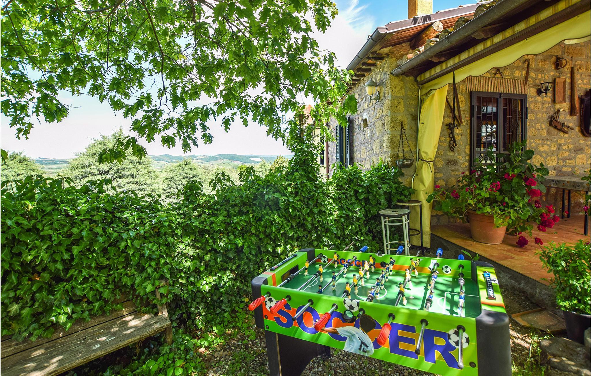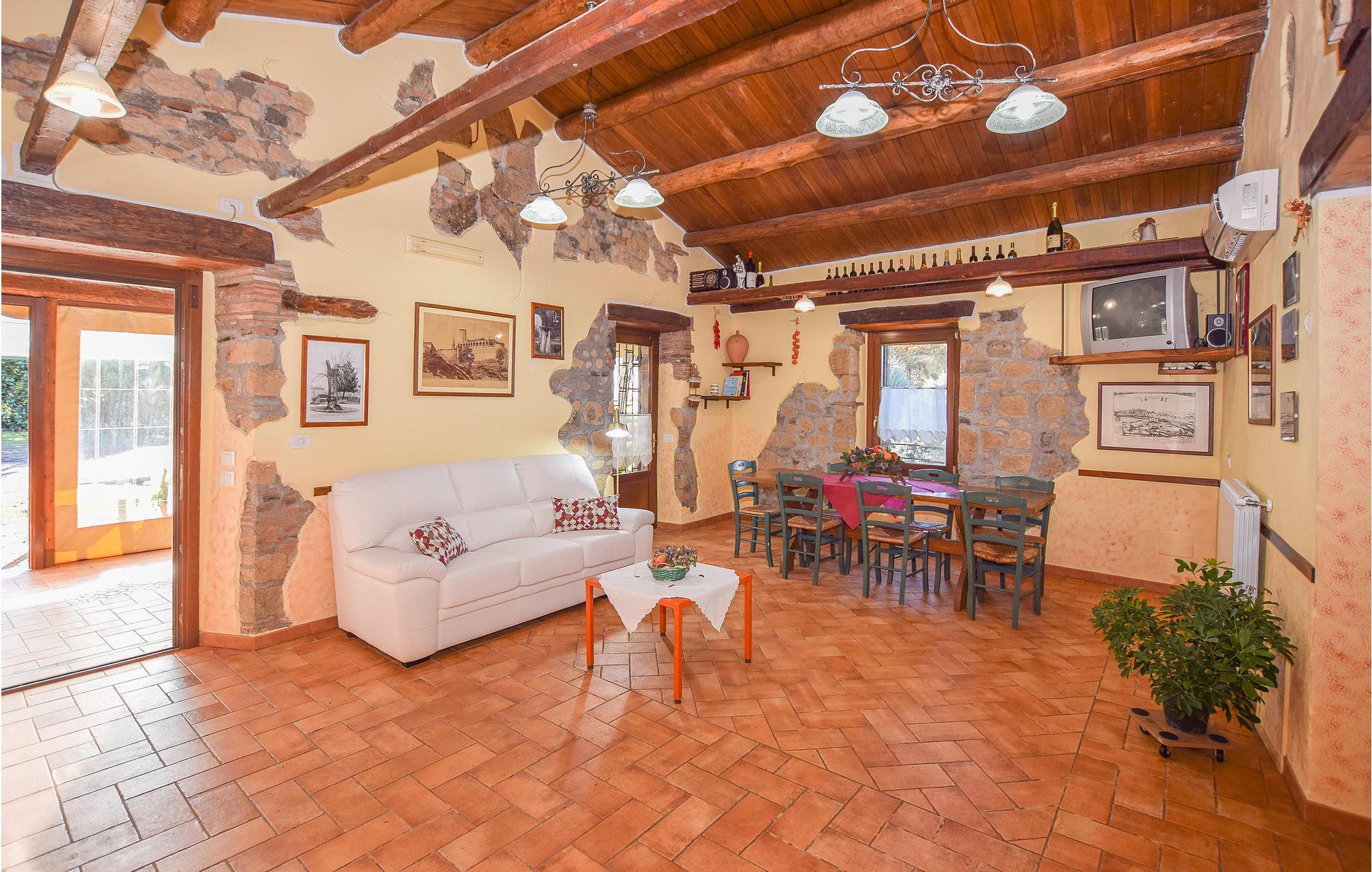 Nehmen Sie Ihre Liebsten mit und beziehen Sie dieses Haus voller Stil und charmantem Charakter im beschaulichen Valentano. Die Inneneinrichtung lässt Sie hier gerne Zeit miteinander verbringen. Sie kombiniert alte Elemente wie Fliesen, Steinmauern und hölzernes Gebälk mit modernen Annehmlichkeiten. Von dem Grundstück haben Sie einen bezaubernden Blick über die umliegenden, sanft geschwungenen Hügel und können schon den See erahnen.