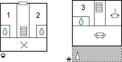 Badezimmer (nr. 3) - WC. Warmes und kaltes Wasser. Dusche