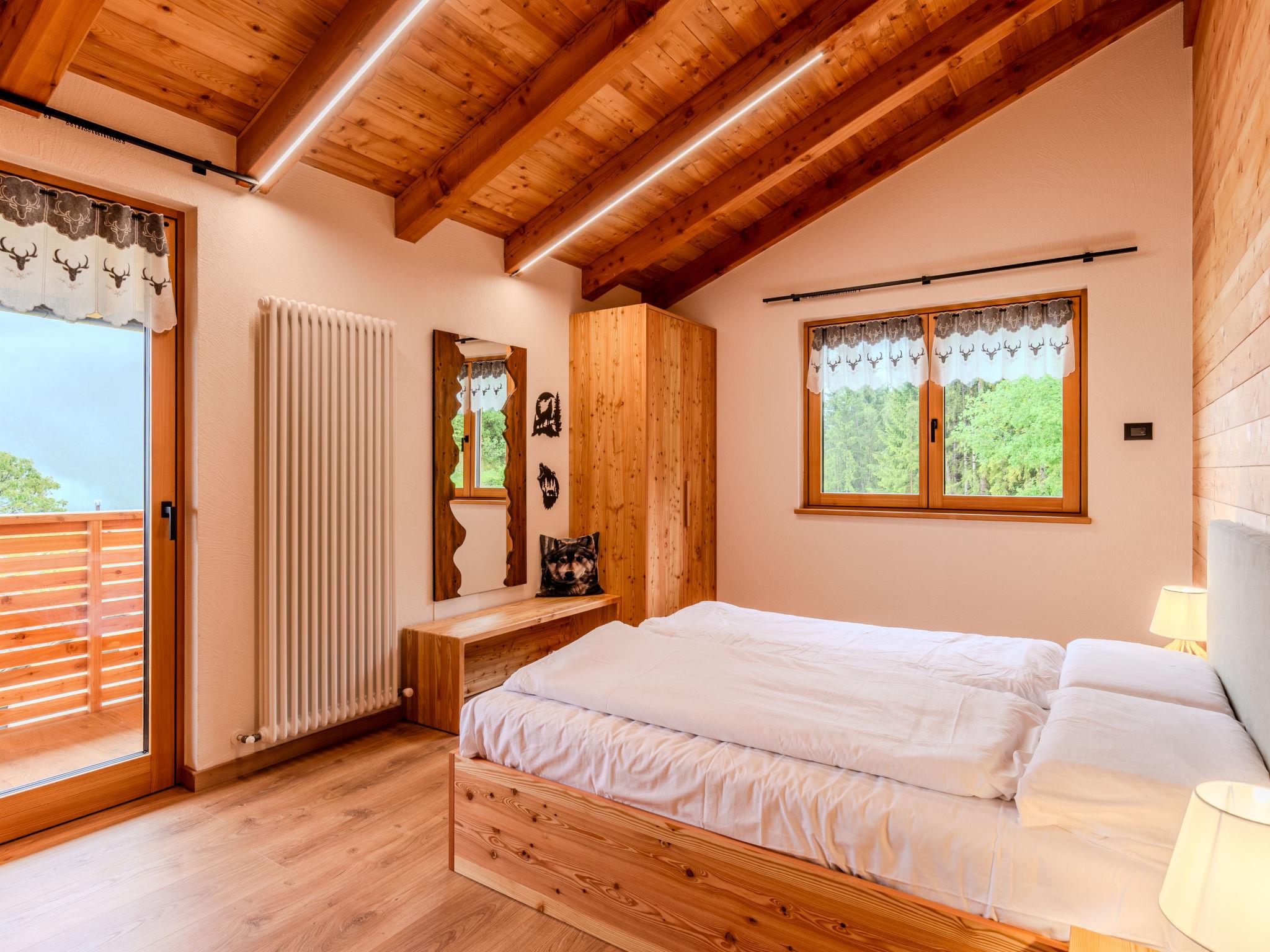 "Larice Quadrilocale", 5-Zimmer-Wohnung 110 m2, im Obergeschoss. Geräumig und hell, vollständig renoviert im Jahre 2025, gemütlich und mit viel Holz eingerichtet: Wohn-/Esszimmer mit TV. Ausgang zum Balkon, Richtung Süden und Richtung Osten. 3 Doppelzimmer. Ausgang zum Balkon. 1 Zimmer mit 1 x 2 Etagenbetten. Küche (Geschirrspüler, 5 Induktionskochplatten, Toaster, Wasserkocher, Mikrowelle, Tiefkühler). Ausgang zum Balkon. 2 Duschen/Bidet/WC. Heizung. Heizung nur verfügbar von 15.11. bis 30.04. Holzdielenboden. 4 Balkone, grosser Garten. Balkonmöbel, Liegestühle, Sitzplatz. Panoramasicht auf den See und die Landschaft. Zur Verfügung: Waschmaschine, Bügeleisen, Haartrockner. Internet (WLAN, gratis). Parkplatz (eingezäunt, 3 Autos). Bitte beachten: Nichtraucher-Unterkunft. Eigener Eingang, Feuerlöscher, kein Fahrstuhl. IT022106C2HQQIRX5Y
