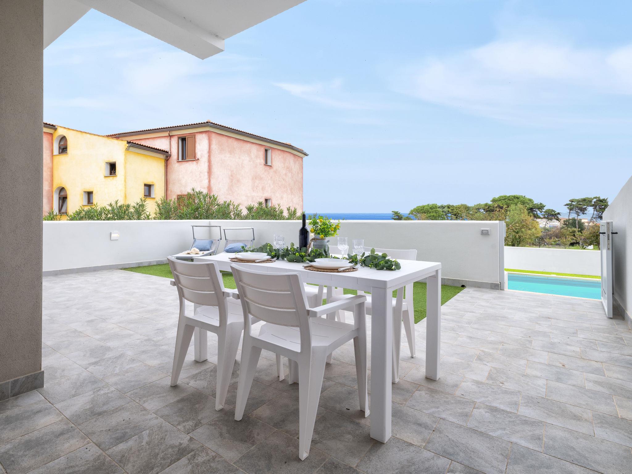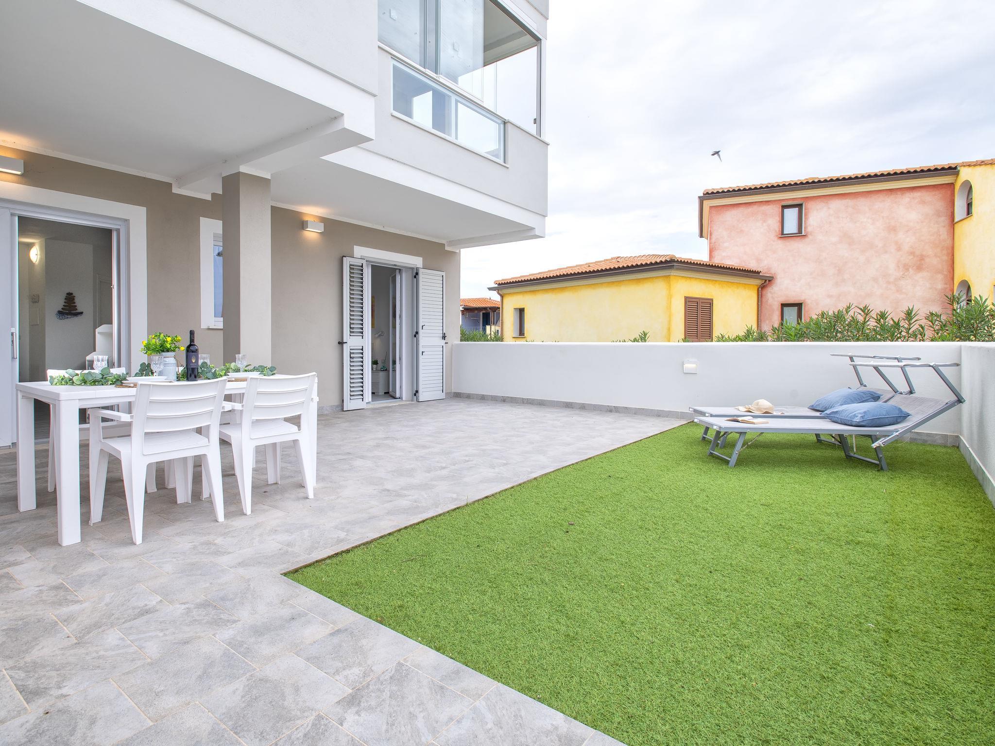 Modernes Appartementhaus "La Vallata", Baujahr 2023. 11 Wohnungen im Ferienhaus. Im Ort La Muddizza, 4 km vom Zentrum von Valledoria, ruhige, sonnige Lage in einem Wohnquartier, 1.2 km vom Meer, 1.2 km vom Strand. Zur Mitbenutzung: Schwimmbad (6 x 12 m, 125 cm tief, saisonale Verfügbarkeit: 01.Jun. - 30.Sep.). Dusche/WC im Poolbereich. Supermarkt 650 m, Restaurant 500 m, Bar 600 m, Bushaltestelle 400 m, Sandstrand "Baia Verde" 1.2 km. Nahe gelegene Sehenswürdigkeiten: Isola Rossa 20 km, Costa Paradiso 30 km, Stintino 78 km, Olbia 87 km, Porto Torres 48 km. Bitte beachten: Fahrzeug empfohlen.