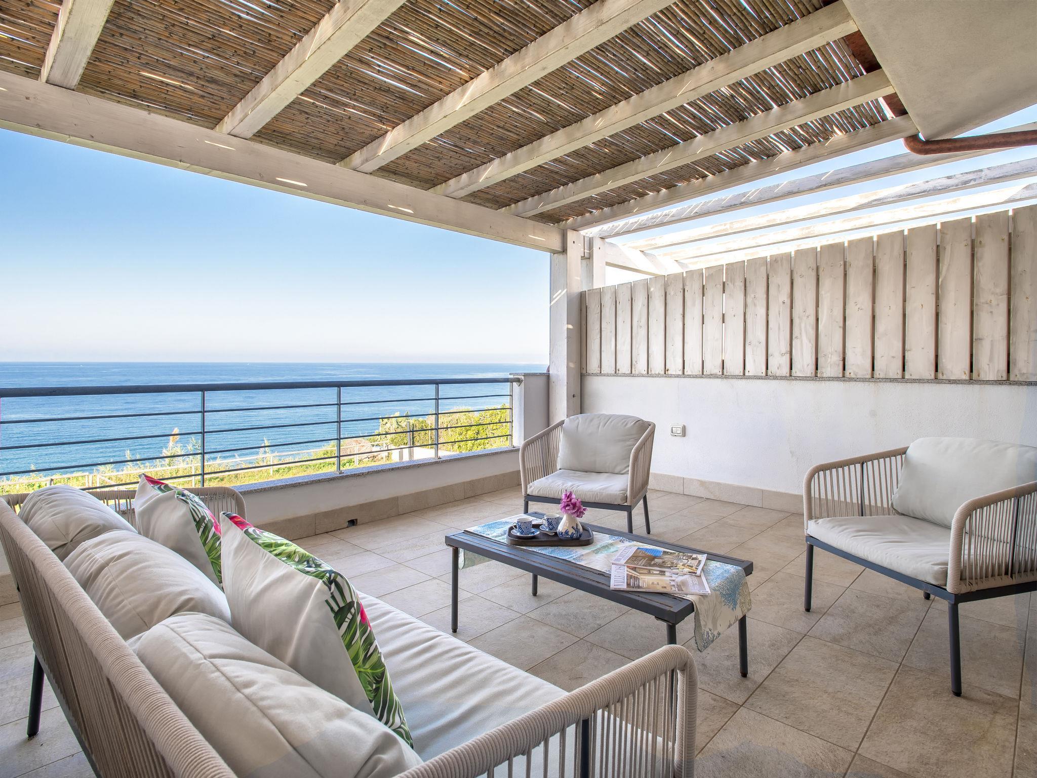 "Onda perfetta", 2-Zimmer-Wohnung 50 m2 im 1. Stock. Modern und gemütlich eingerichtet: Wohn-/Esszimmer mit Sat-TV und Flachbildschirm. Ausgang zur Terrasse. Galerie mit Dachfenster mit 2 Betten. 1 Doppelzimmer. Kochnische (Backofen, 4 Induktionskochplatten, Toaster, Wasserkocher, Mikrowelle, elektrische Kaffeemaschine). Dusche/Bidet/WC. Klimaanlage, Warmluftheizung. Grosse Terrasse 30 m2, überdacht. Terrassenmöbel, Sitzplatz. Sehr schöne Sicht auf das Meer. Zur Verfügung: Waschmaschine, Bügeleisen, Haartrockner. Parkplatz Nr. 8. Maximal 1 Haustier/Hund erlaubt. IT090079C2000R1835