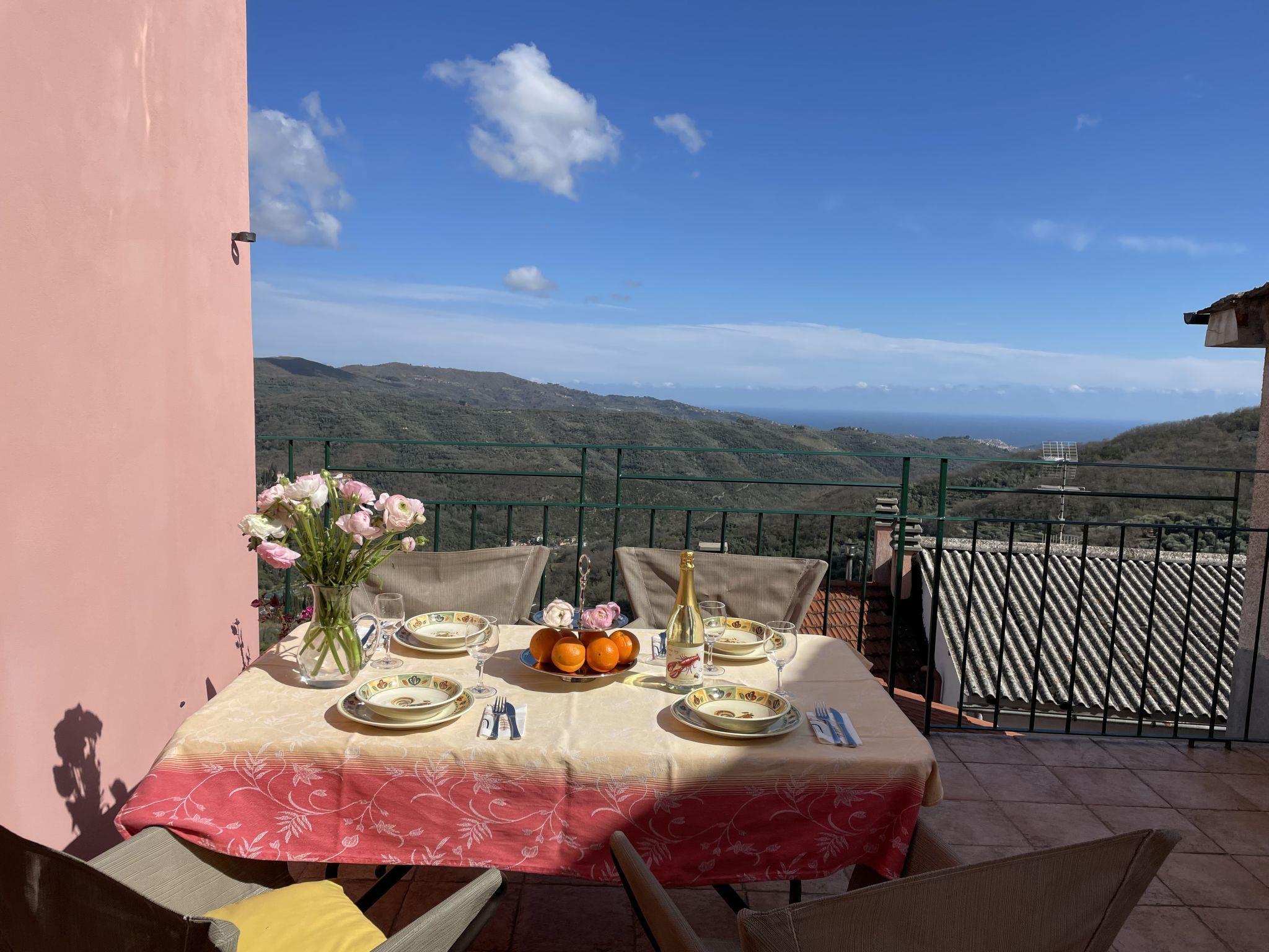 "Le Volte", 3-Zimmer-Wohnung 80 m2 auf 2 Stockwerken, im Erdgeschoss. Geräumig und hell, geschmackvoll und gemütlich eingerichtet: Wohnzimmer mit Sat-TV, Internationale TV-Sender und Flachbildschirm. 1 Zimmer mit 1 franz. Bett (160 cm). Grosse Küche (Gasherd, 4 Flammen, Toaster, Tiefkühler, elektrische Kaffeemaschine, Kapseln für die Kaffeemaschine (Lavazza)) mit Esstisch. Dusche/Bidet/WC. G-Heizung. Obergeschoss: 1 Zimmer mit 1 franz. Bett (160 cm). Komfortable Einrichtung im Landhausstil. Terrasse 16 m2. Terrassenmöbel, Gartengrill, Liegestühle (2). Sehr schöne Fernsicht auf das Meer und das Tal. Zur Verfügung: Waschmaschine, Bügeleisen, Fliegengitter, Haartrockner. Internet (Wireless LAN, gratis). IT008047B5MRIN37B3