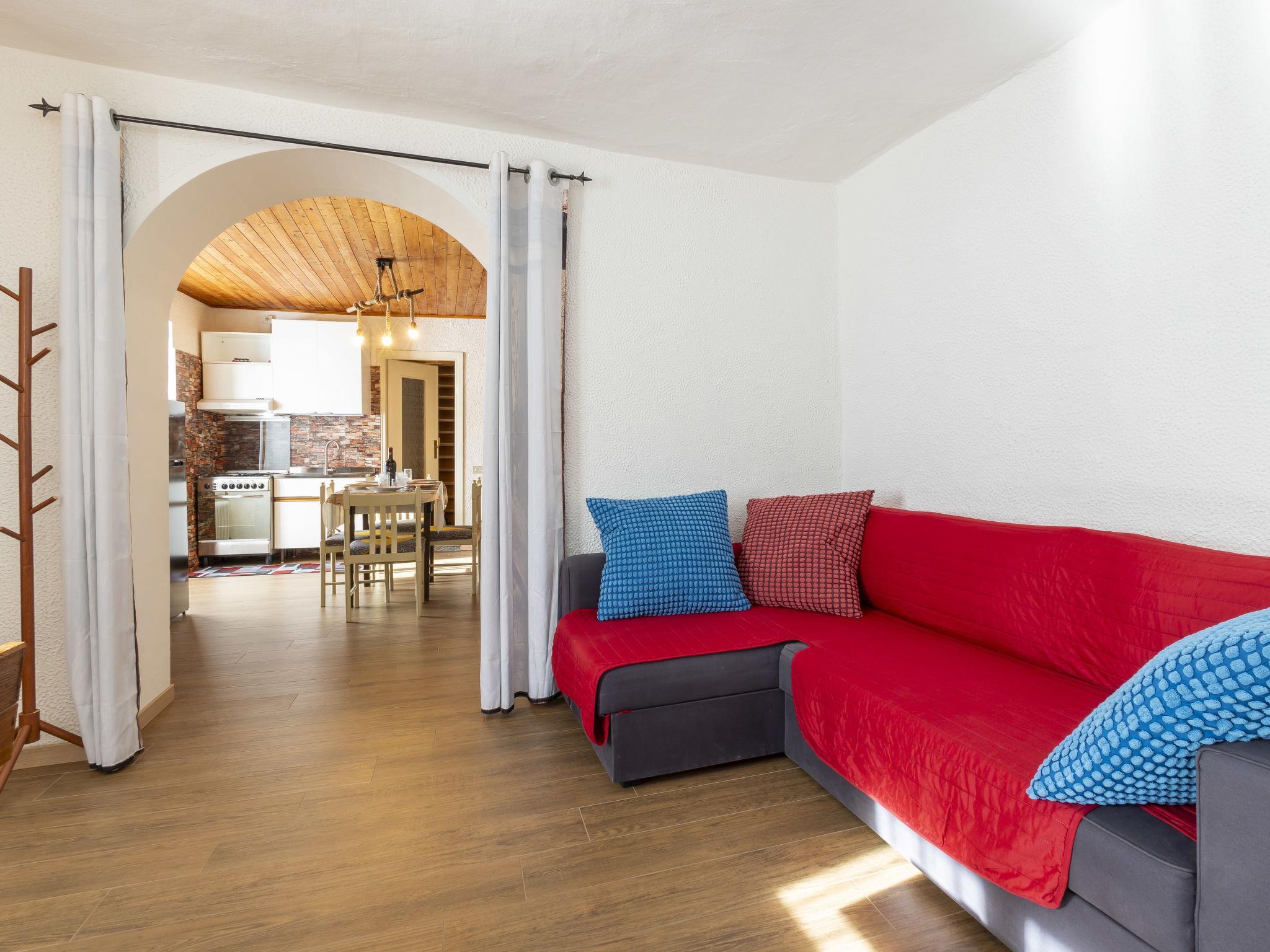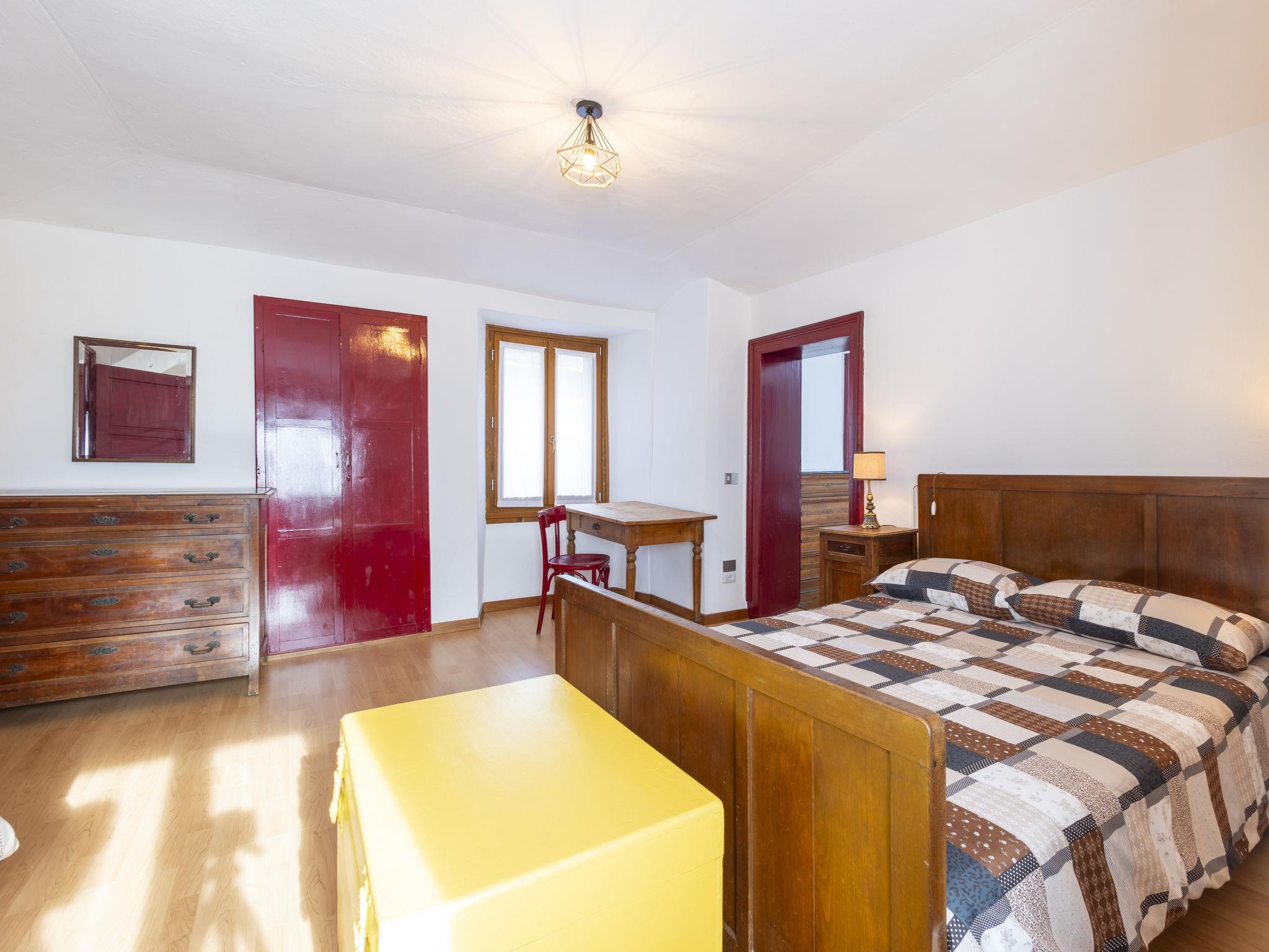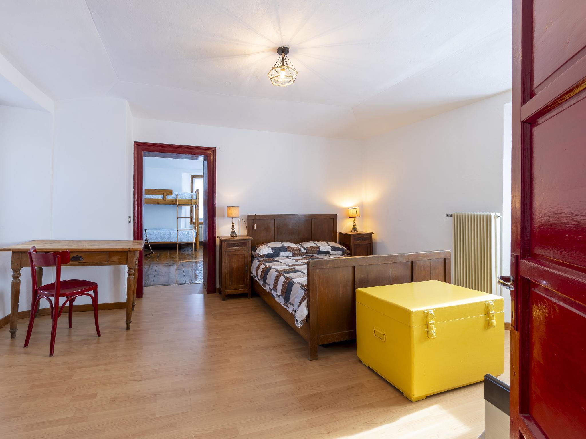 4-Zimmer-Haus 95 m2 auf 2 Stockwerken, im erhöhten Erdgeschoss. Geräumig, zweckmässig und komfortabel eingerichtet: offenes Wohn-/Esszimmer mit Esstisch, TV und Klimaanlage. Offenes Wohn-/Esszimmer mit offenem Kamin, Esstisch und Klimaanlage. Ausgang zum Gartensitzplatz. Kleine Kochnische (Backofen, 4 Flammen, Toaster, Wasserkocher, elektrische Kaffeemaschine, Kapseln für die Kaffeemaschine (Nespresso) gratis). Dusche/Bidet/WC. Obergeschoss: (steile Treppe) Durchgangszimmer mit 1 Bett und 1 Doppelbett. 1 grosses Zimmer mit 1 Bett und 1 x 2 Etagenbetten, 1 franz. Bett (120 cm, Länge 190 cm). Sep. WC. Heizung. Parkettboden. Kleiner Gartensitzplatz. Gartengrill. Eingeschränkte Sicht auf die Berge. Zur Verfügung: Waschmaschine, Kinderhochstuhl, Babybett (extra), Haartrockner, Holz (gratis). Internet (WLAN, gratis). Bitte beachten: geeignet für Familien. Nichtraucher-Haus. Maximal 1 Haustier/Hund erlaubt. IT014078C2XJJ6HP7J