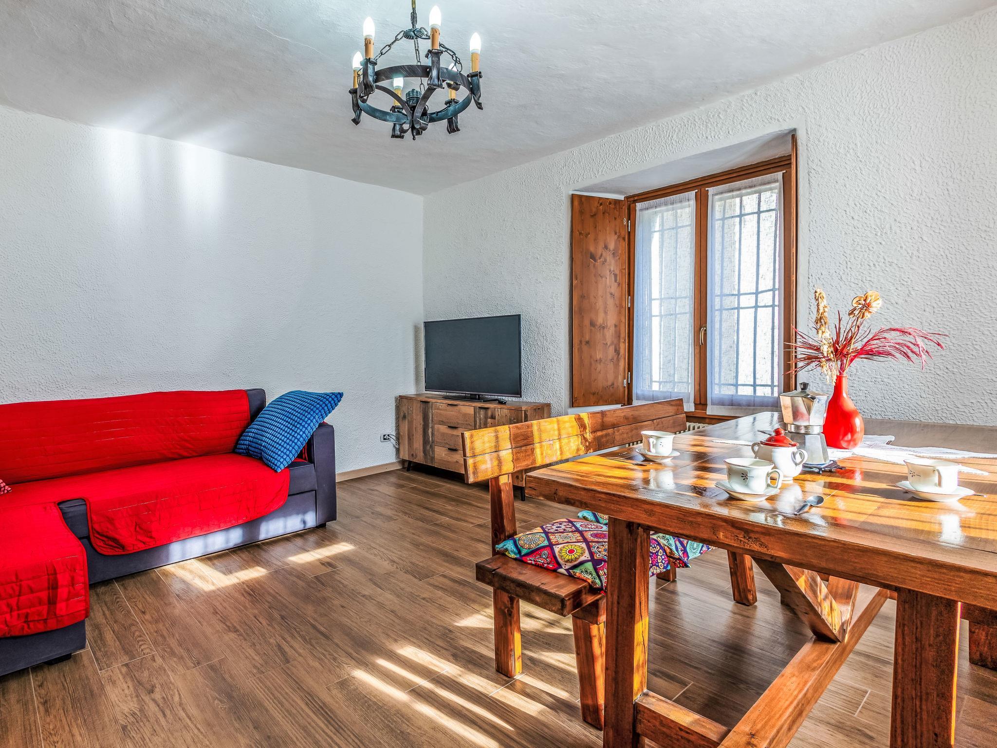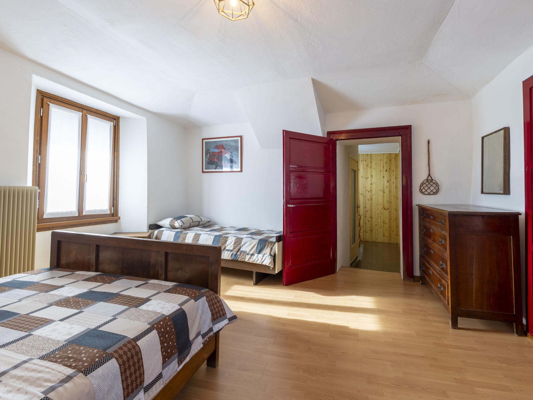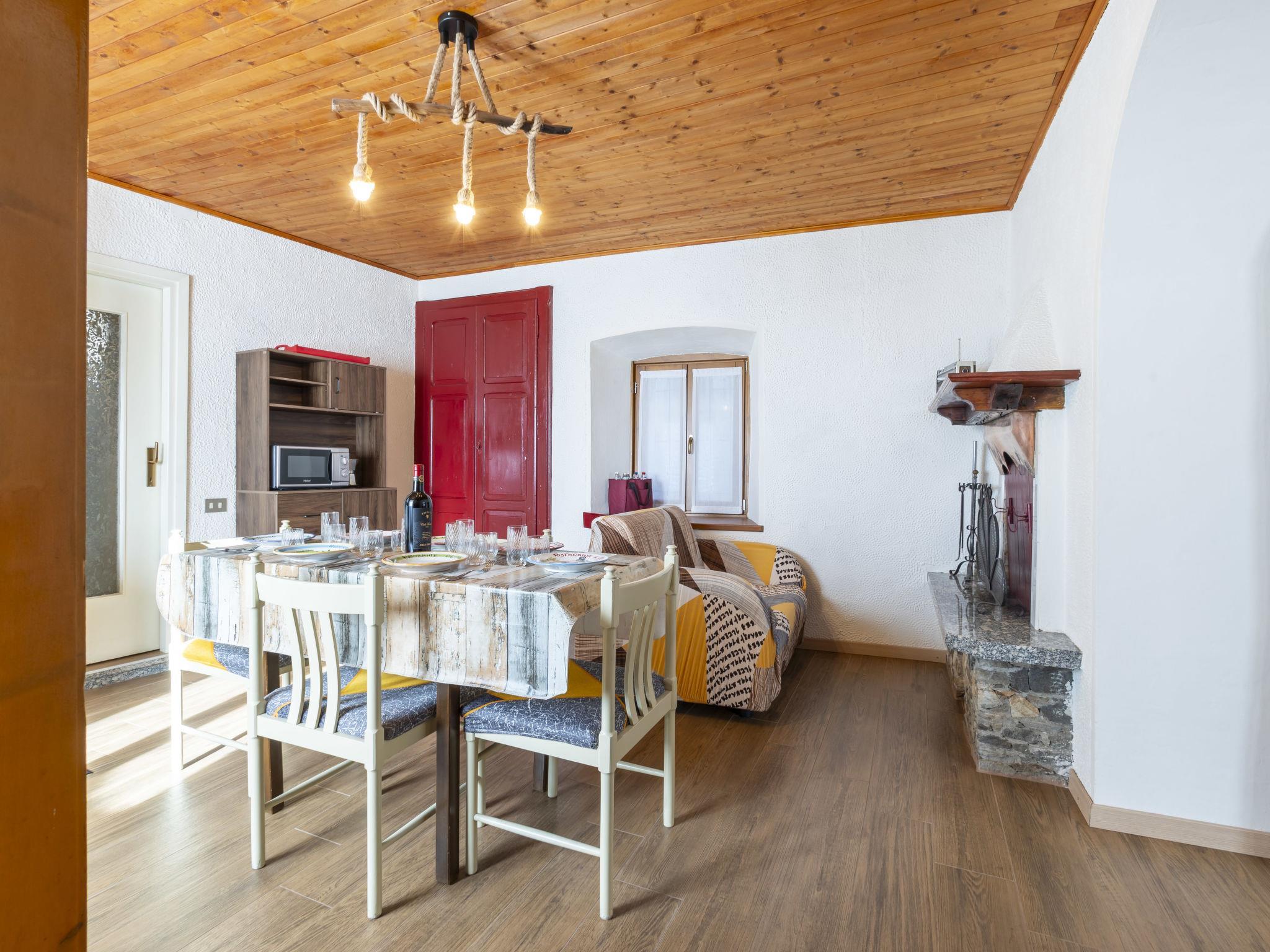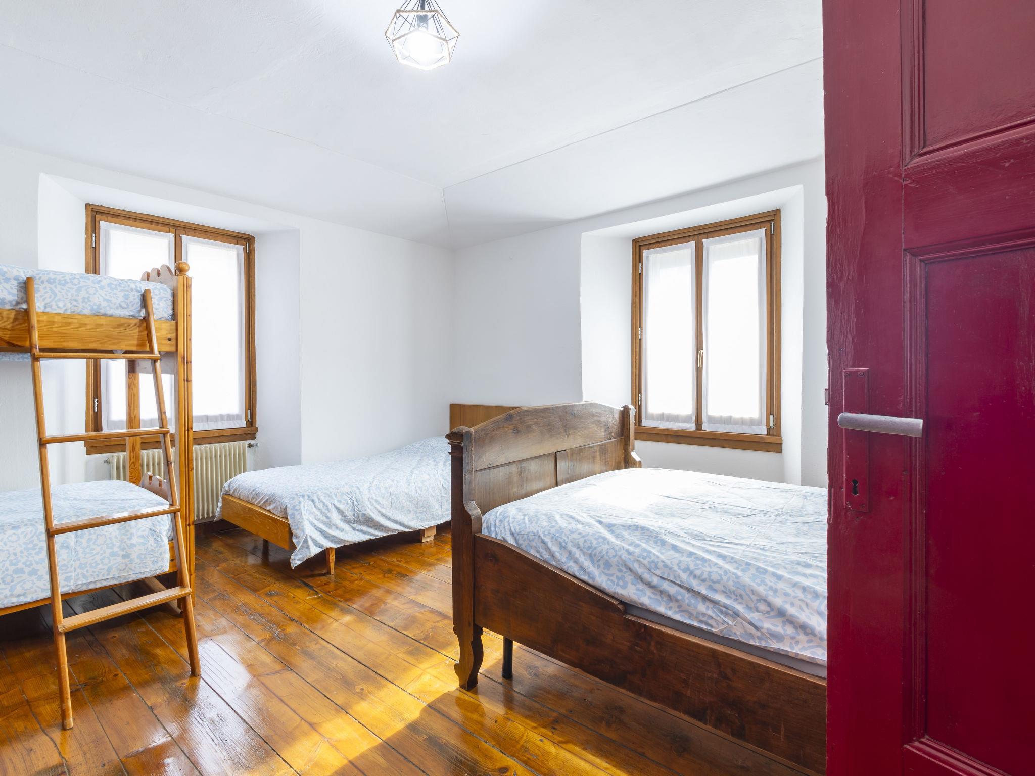 4-Zimmer-Haus 95 m2 auf 2 Stockwerken, im erhöhten Erdgeschoss. Geräumig, zweckmässig und komfortabel eingerichtet: offenes Wohn-/Esszimmer mit Esstisch, TV und Klimaanlage. Offenes Wohn-/Esszimmer mit offenem Kamin, Esstisch und Klimaanlage. Ausgang zum Gartensitzplatz. Kleine Kochnische (Backofen, 4 Flammen, Toaster, Wasserkocher, elektrische Kaffeemaschine, Kapseln für die Kaffeemaschine (Nespresso) gratis). Dusche/Bidet/WC. Obergeschoss: (steile Treppe) Durchgangszimmer mit 1 Bett und 1 Doppelbett. 1 grosses Zimmer mit 1 Bett und 1 x 2 Etagenbetten, 1 franz. Bett (120 cm, Länge 190 cm). Sep. WC. Heizung. Parkettboden. Kleiner Gartensitzplatz. Gartengrill. Eingeschränkte Sicht auf die Berge. Zur Verfügung: Waschmaschine, Kinderhochstuhl, Babybett (extra), Haartrockner, Holz (gratis). Internet (WLAN, gratis). Bitte beachten: geeignet für Familien. Nichtraucher-Haus. Maximal 1 Haustier/Hund erlaubt. IT014078C2XJJ6HP7J