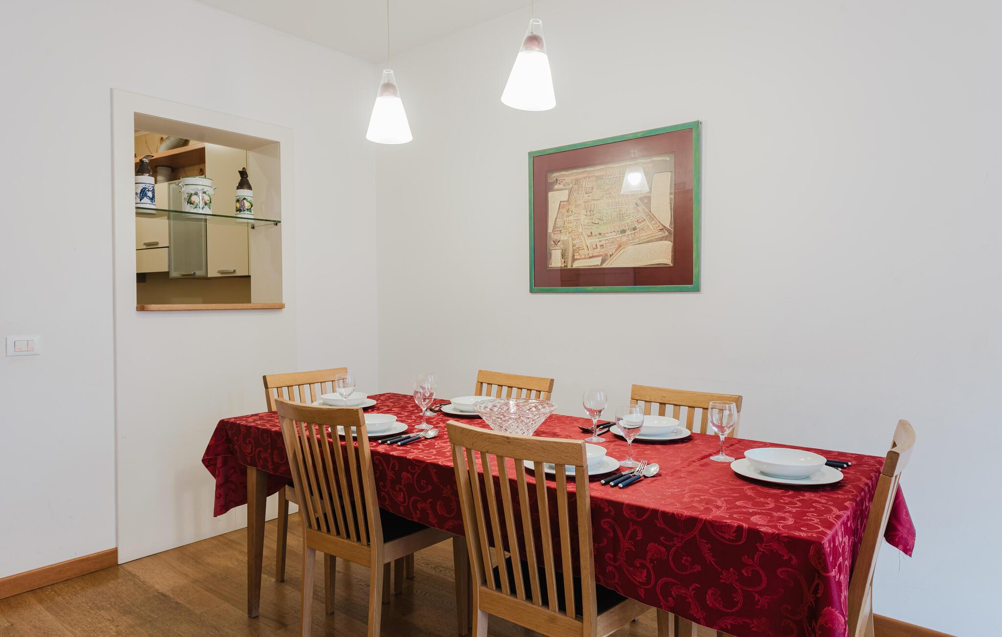 Diese Ferienwohnung ist zentral in Venedig gelegen. Sie liegt im ersten Stock und bietet Platz für bis zu 6 Personen. Das Gebäude ist mehr als 300 Jahre alt, wurde aber neulich renoviert und macht einen hübschen Eindruck. In der Küche können Sie schön kochen und im Essbereich gemeinsam essen. Entspannen Sie sich im geräumigen Wohnzimmer nach einem Tag mit Sehenswürdigkeiten.