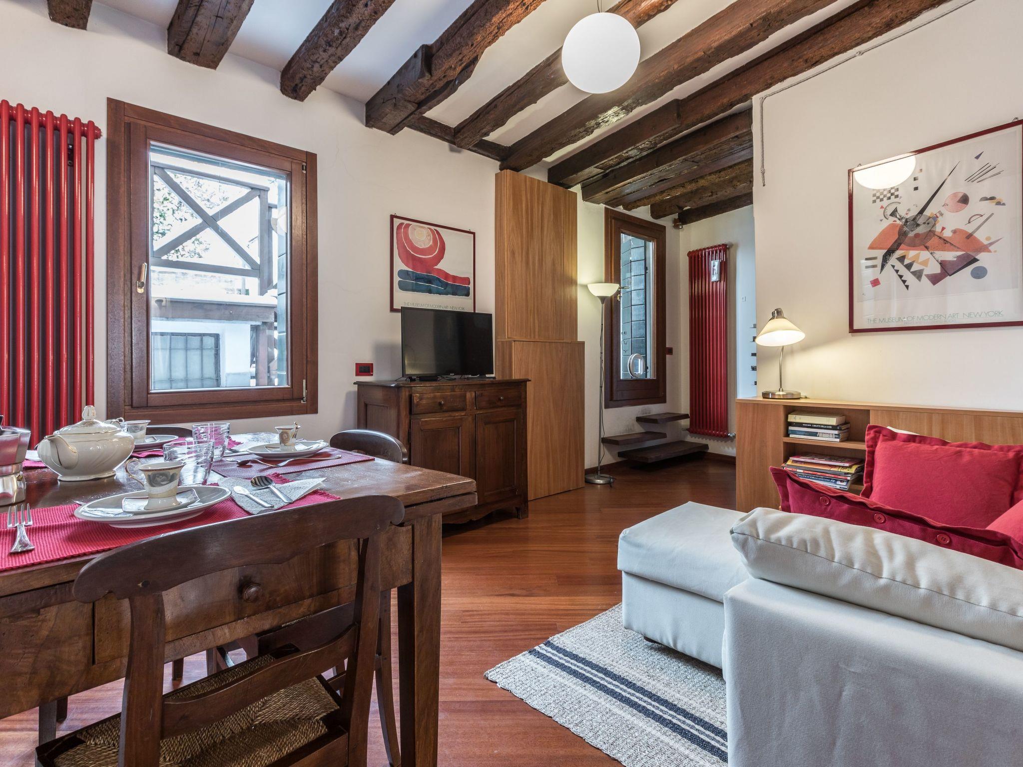 Diese moderne und farbenfrohe Zweizimmerwohnung befindet sich in einer schönen Ecke des Stadtteils Cannaregio, Corte Zappa, nur wenige Schritte vom lebhaften jüdischen Ghetto entfernt. Das Viertel bleibt eines der authentischsten in Venedig, mit einer Atmosphäre fast unberührt von der Zeit, wo Sie sich in romantischen Spaziergängen entlang der Kanäle verlieren können bewundern Denkmäler noch wenig bekannt für den Massentourismus, wie die schöne Kirche von Sant'Alvise (mit seiner herrlichen Fresken an der Decke) oder die Madonna dell'Orto. In den Fondamente (Straßen an den Kanälen) finden Sie leicht hübsche Lebensmittelgeschäfte, Gasthäuser und Restaurants mit Tischen im Freien. Weitere interessante und wenig bekannte Orte sind die Fondazione Wilmotte und die Bibliothek der Farben in der Mosaikwerkstatt Orsoni. Wenn Sie weiter in Richtung Rialto gehen (ein Spaziergang von etwa 20 Minuten), werden Sie das berühmte Ca' d'Oro und die schöne Jesuitenkirche auf Ihrem Weg finden.