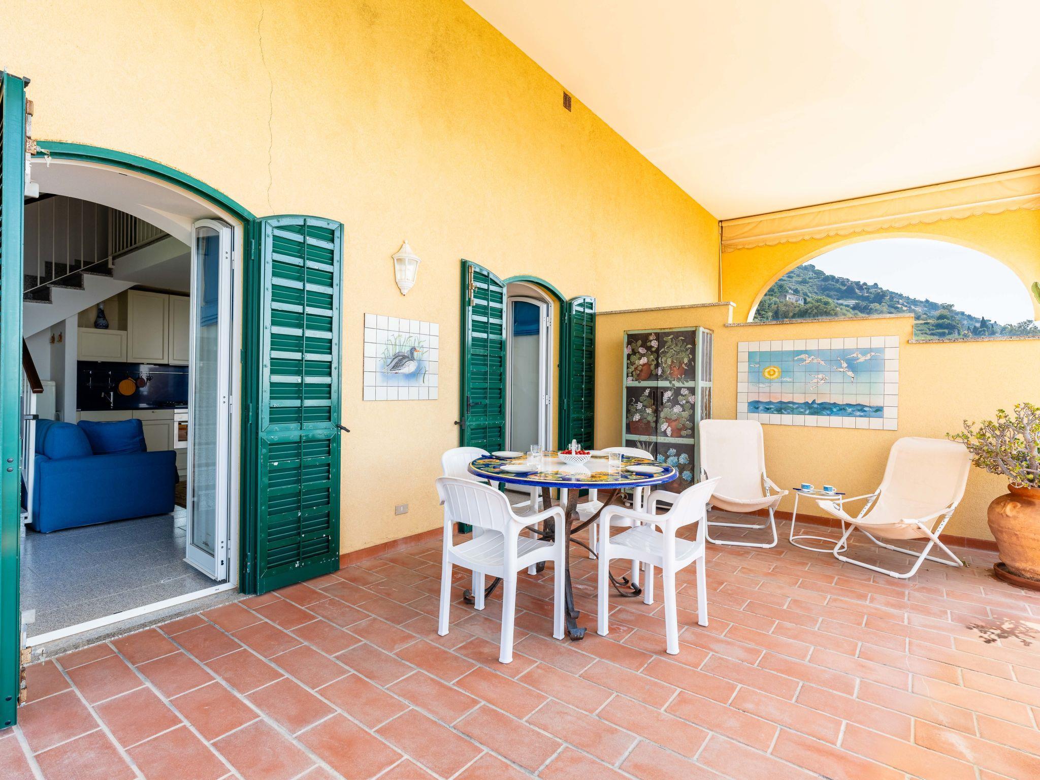 "Loggia sul mare", 2-Zimmer-Wohnung 75 m2 auf 2 Stockwerken im 1. Stock. Schön und geschmackvoll eingerichtet: Wohn-/Esszimmer mit 1 Doppeldiwanbett (120 cm, Länge 200 cm). Ausgang zum Balkon. Kochnische (Backofen, Geschirrspüler, 4 Flammen, Toaster, Wasserkocher). Obergeschoss: 1 offenes Doppelzimmer mit Dusche/Bidet/WC. G-Heizung. Heizung nur verfügbar von 01.11. bis 15.04. Grosser Balkon 20 m2. Balkonmöbel, Liegestühle. Sehr schöne Panoramasicht auf das Meer. Zur Verfügung: Babybett bis 2 Jahre, Haartrockner. Internet (WLAN, gratis). Garage Nr. 2 beim Haus. Bitte beachten: Nichtraucher-Unterkunft. Maximal 1 Haustier/Hund erlaubt. Entfernung pool 80m. IT008065C2NNO5IL84