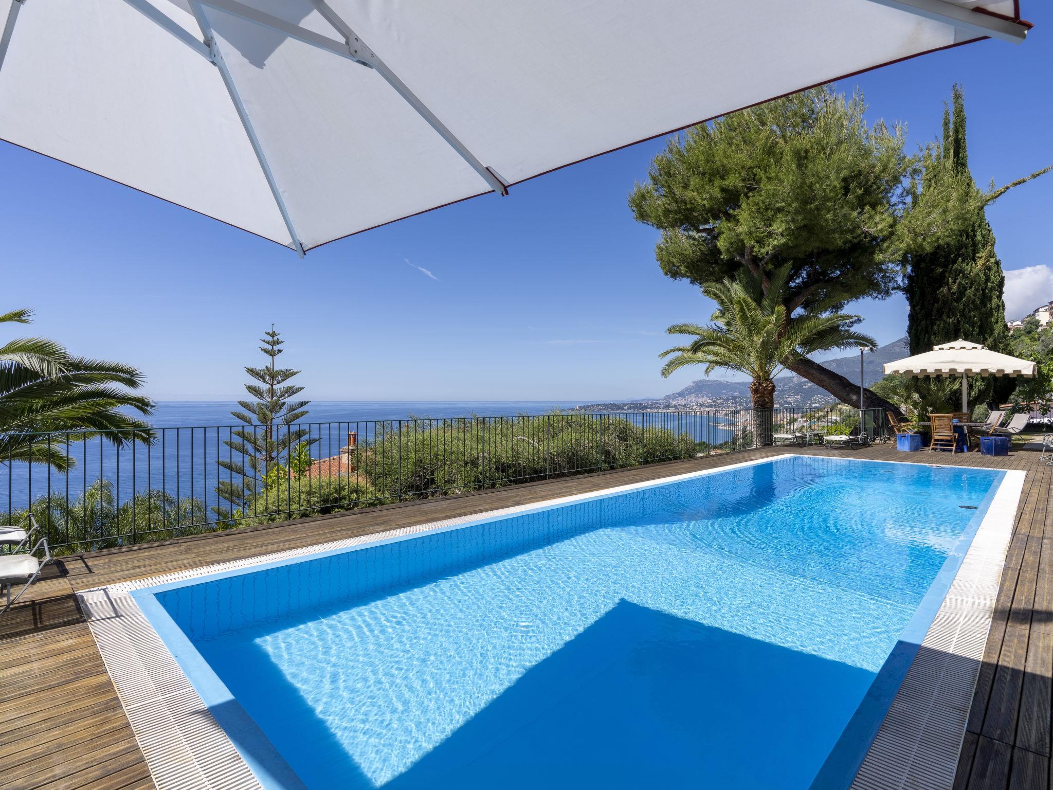 Sehr luxuriöse Villa auf 3 Stockwerken. Im Ortsteil Grimaldi, 7 km vom Zentrum von Ventimiglia, 4 km vom Zentrum von Menton, 12 km vom Zentrum von Bordighera, 2 km vom Meer. Zur Mitbenutzung: Grundstück 2'000 m2 (eingezäunt), gepflegter Garten mit Rasen und Pflanzen, Naturgarten, Schwimmbad (10 x 5 m, saisonale Verfügbarkeit: 01.Jun. - 01.Okt.). Poolhaus mit Dusche, Terrasse, Gartenmöbel, Grillhaus. Im Hause: Einstellraum für Fahrräder. Treppenweg (10 Stufen) bis zum Haus. Parkplatz beim Haus, Einzelgarage beim Haus. Einkaufsgeschäft 3 km, Supermarkt 3 km, Restaurant 1 km, Bushaltestelle "Su strada direzione Francia" 200 m, Sandstrand "La Cabane Plage" 3 km, Kieselstrand "Balzi Rossi" 750 m. Jacht-Hafen 4 km. Nahe gelegene Sehenswürdigkeiten: Museo Balzi Rossi 750 m, Giardini Hanbury botanico 1 km. Bitte beachten: Fahrzeug empfohlen. Geeignet für Familien, nicht geeignet für Kinder unter 14 Jahren. Der Besitzer wohnt auf dem gleichen Grundstück. Hauptstrasse in der Nähe. Die Nachbarschaft ist sehr lärmempfindlich. Ruhe und gutes Benehmen wird erwartet. Badekappenpflicht.