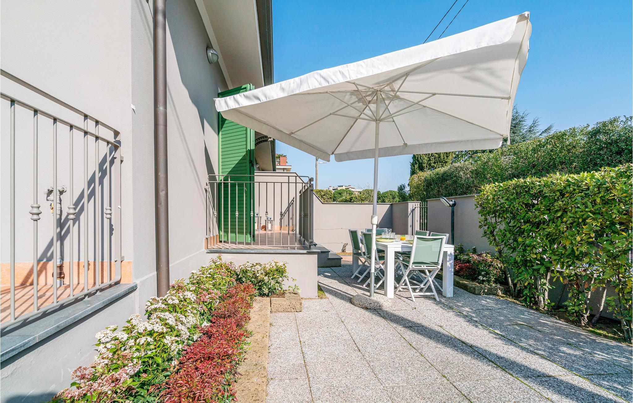 Diese Doppelhaushälfte in der Nähe von Viareggio (2 km) liegt nur 3 km vom Meer entfernt. Dank der günstigen Lage erreichen Sie leicht das Zentrum dieser Stadt, die auch für ihren Karneval berühmt ist: Mit seinen schönen, großen und satirischen Karnewalswagen zählt er zu den wichtigsten Karnevalfeiern der Welt. Viareggio ist auch bekannt für sein Nachtleben und die vielen Einkaufsmöglichkeiten entlang der Strandpromenade. In ca. 13 km Entfernung liegt Pietrasanta, berühmt für seine Marmorskulptur-Workshops und Studios berühmter Künstler. In seinem historischen Zentrum können Sie die schöne Kathedrale von San Martino besuchen und Sie finden hier viele Geschäfte. Nur 22 km entfernt erwartet Sie die charmante Stadt Pisa, wo Sie den weltberühmten Schiefen Turm und die Piazza dei Miracoli mit dem Dom und Baptisterium bewundern können. Das Haus ist auf drei Etagen verteilt, im Untergeschoss sind ein Schlafzimmer mit Doppelbett, ein Einzelzimmer und ein Badezimmer.