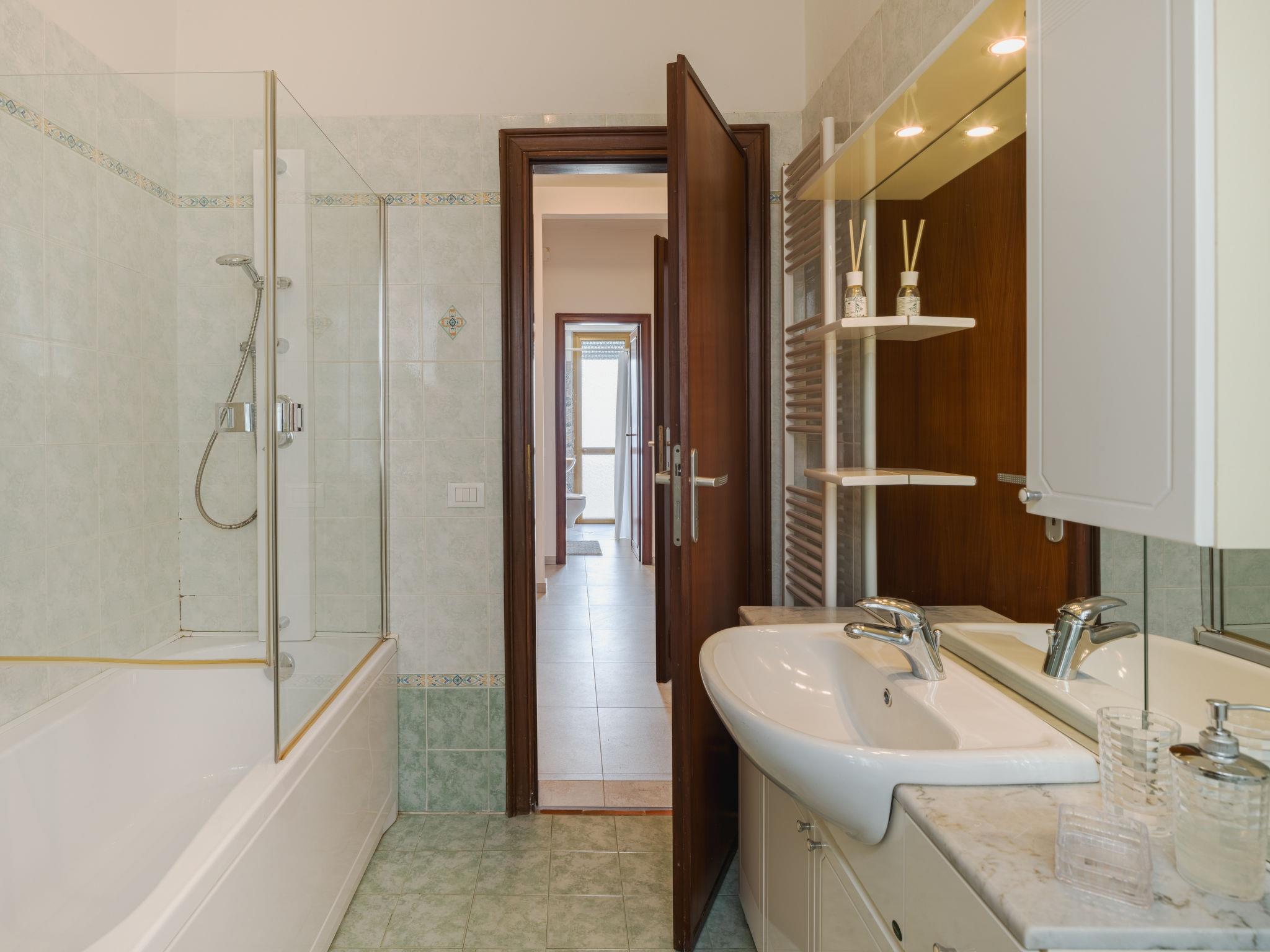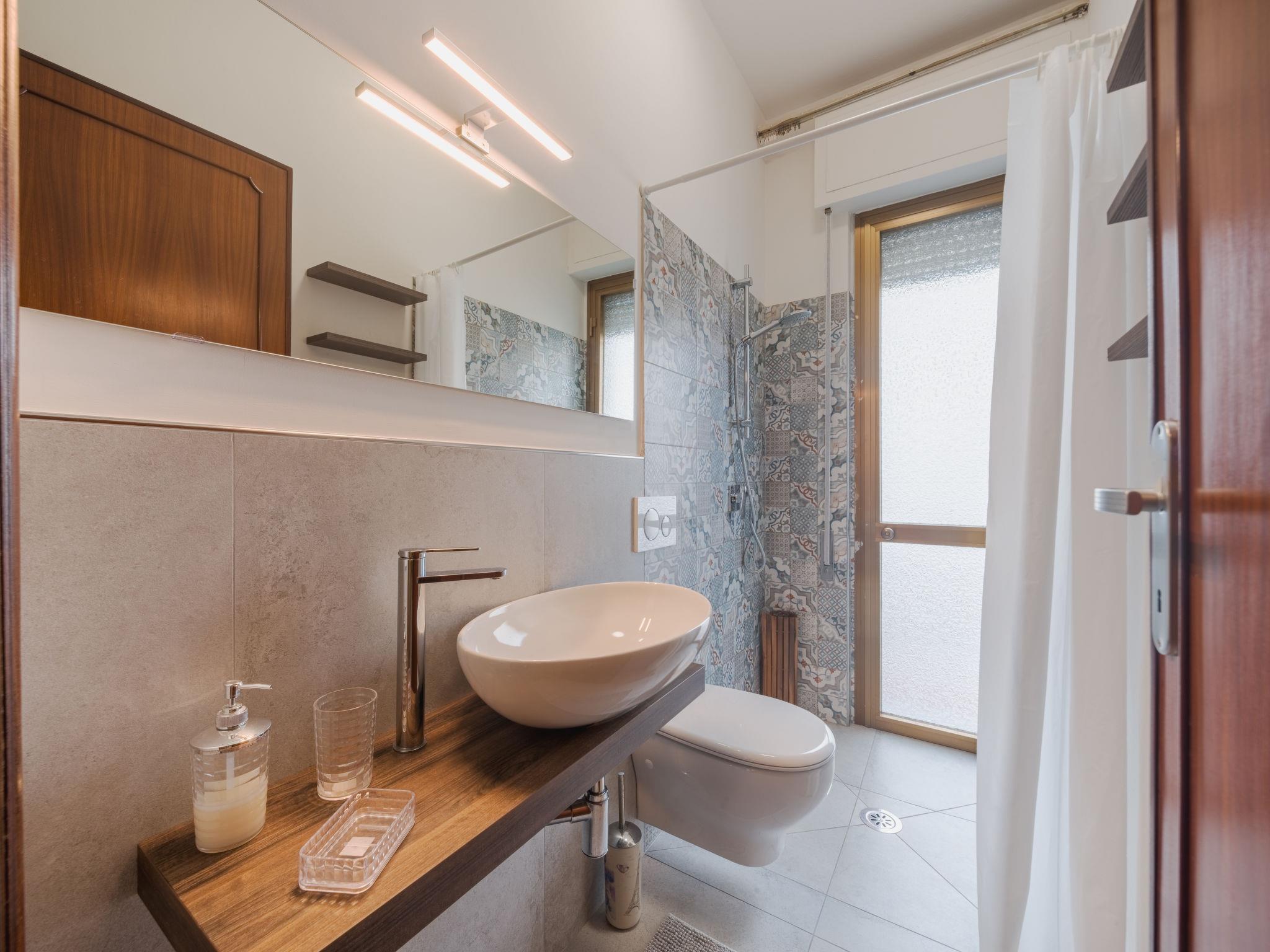 "Minù", 5-Zimmer-Wohnung 110 m2 auf 2 Stockwerken im 1. Stock. Geräumig und hell, teilweise abgeschrägt, renoviert, sehr zweckmässig und komfortabel eingerichtet: Wohn-/Esszimmer mit 1 Doppeldiwanbett und Klimaanlage. Ausgang zum Balkon. 1 Doppelzimmer mit TV (Flachbildschirm), Klimaanlage. Ausgang zum Balkon. 1 Zimmer mit 1 franz. Bett und TV (Flachbildschirm), Klimaanlage. Ausgang zum Balkon. Kochnische (Backofen, Geschirrspüler, Gasherd, 4 Flammen, Toaster, Wasserkocher, Tiefkühler, elektrische Kaffeemaschine) mit Esstisch. Ausgang zum Balkon. Bad/Bidet/WC. G-Heizung, Klimaanlage. Heizung nur verfügbar von 01.11. bis 07.04. Obergeschoss: abgeschrägtes Büro mit 1 Doppelbett und TV (Flachbildschirm), Klimaanlage. Abgeschrägtes Büro mit 1 Doppelbett und Klimaanlage. Dusche/Bidet/WC. G-Heizung. Zur Verfügung: Waschmaschine, Bügeleisen, Haartrockner. Internet (WLAN, gratis). Bitte beachten: nicht geeignet für Kinder unter 10 Jahren. Nichtraucher-Unterkunft. TV nur IT. Rauchmelder, Feuerlöscher, kein Fahrstuhl. IT046033C2TAIH9LWJ