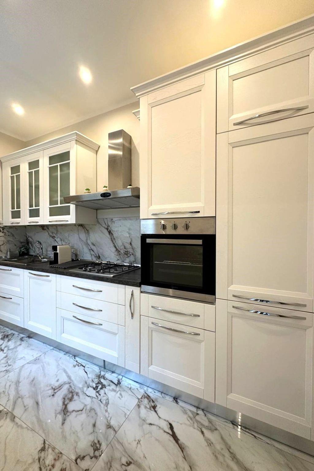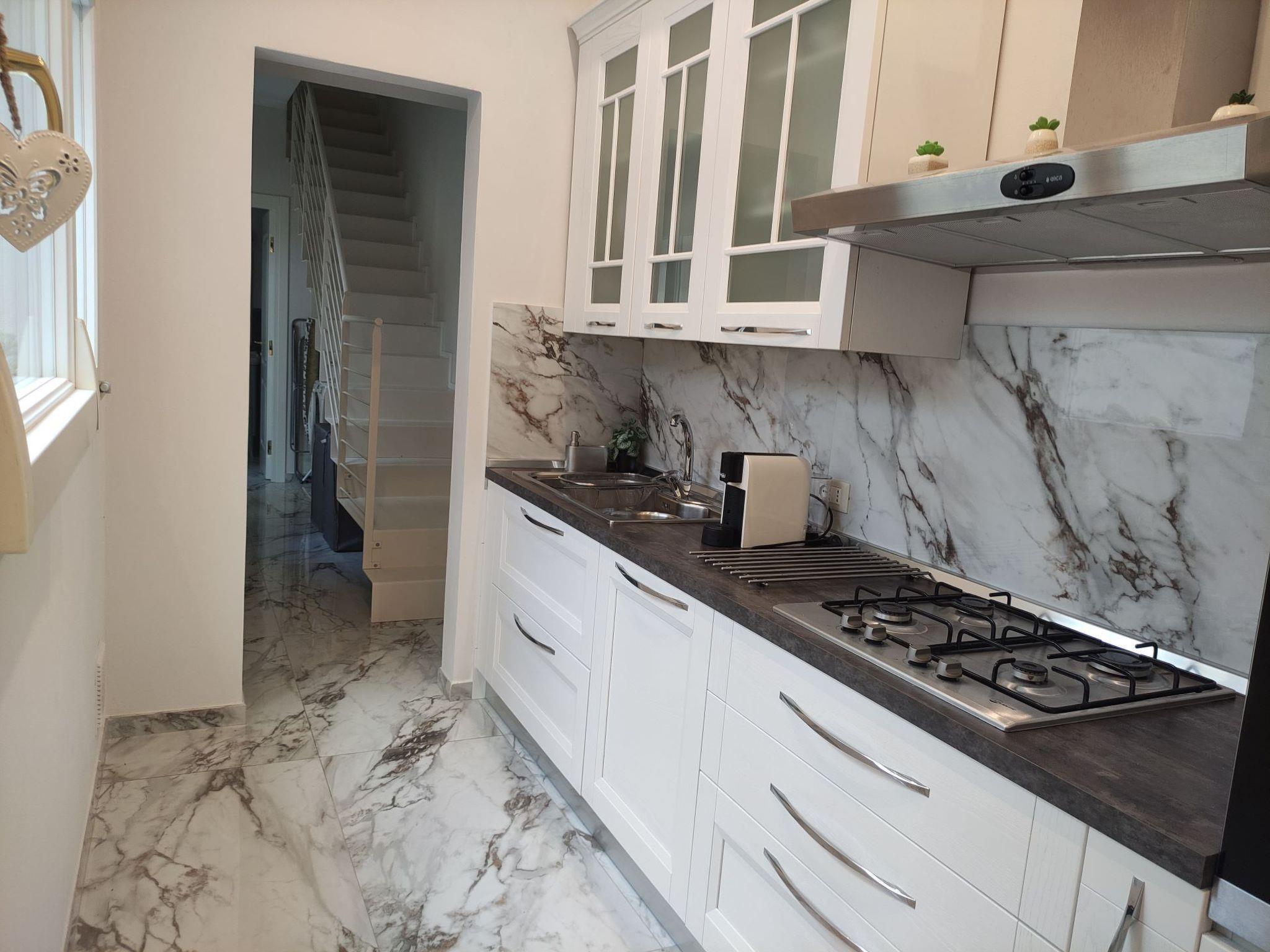 Die ansprechend gestaltete Innenausstattung der Wohnung erstreckt sich über 100 m² und ist mit allen Annehmlichkeiten ausgestattet, die Ihren Aufenthalt angenehm und komfortabel machen. Im Erdgeschoss finden Sie ein Wohnzimmer mit einem gemütlichen Schlafsofa für zwei Personen und einem TV, ideal für entspannte Abende. Die Wohnung verfügt zudem über eine vollausgestattete Küche mit Gasherd, Espressokanne und Spülmaschine, die alle Ihre kulinarischen Bedürfnisse erfüllen wird. Zusätzlich steht eine Waschmaschine zur alleinigen Nutzung bereit, um Ihren Aufenthalt auch bei längeren Urlauben bequem zu gestalten.
