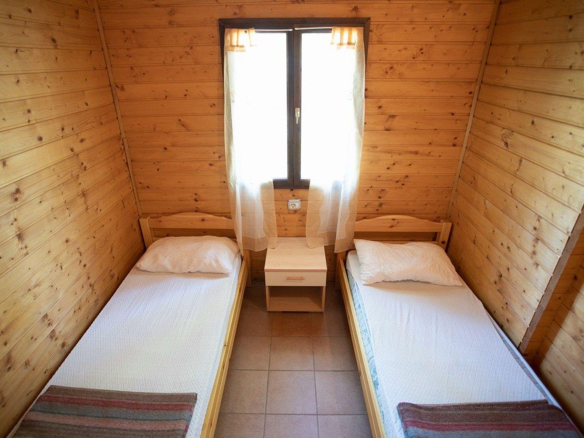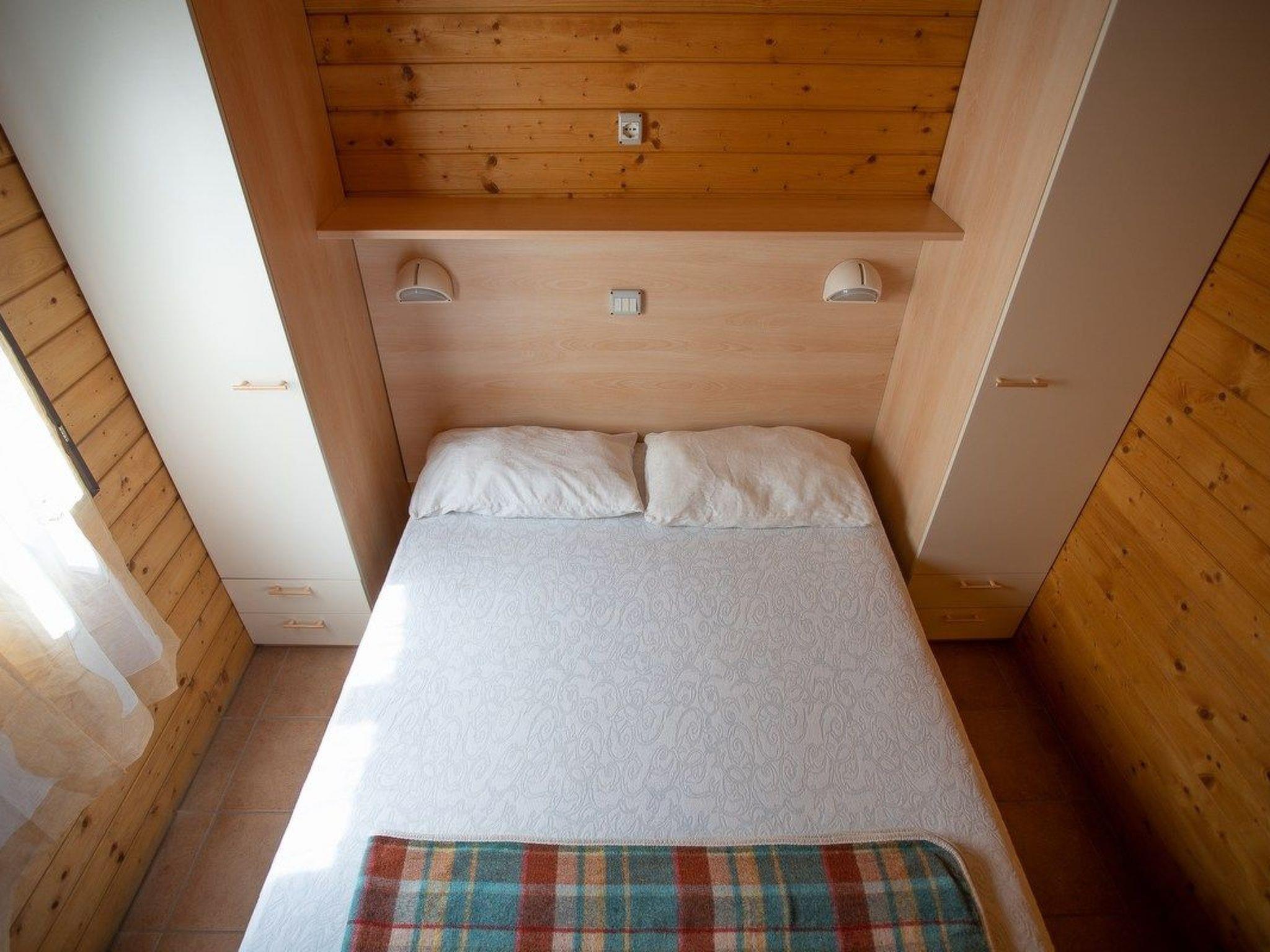 Ausstattung: Der Campingplatz hat 26 Holz Bungalows. Es handelt sich um typische schöne Häuschen mit einer Veranda und einem Vorplatz für Fahrräder und Kinderwagen. Wohnküche mit Esstisch und TV. Schlafzimmer mit 1 Doppelbett und 1 Schlafzimmer 2 Einzelbetten (oder 3 gegen Aufpreis 3 Einzelbetten), Bad mit Dusche. Der WiFi-Empfang (gegen Gebühr) ist garantiert der Nähe der Reception.
