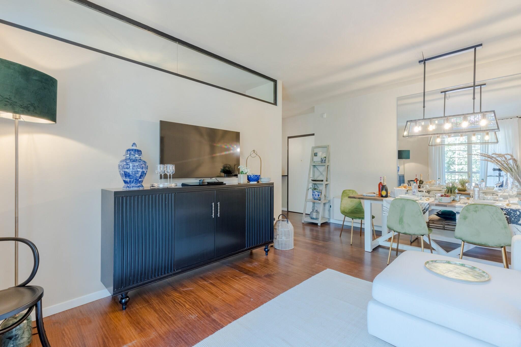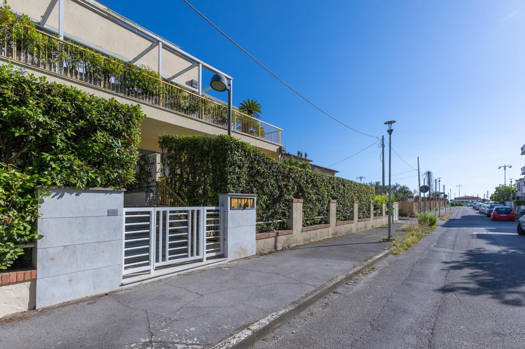 Willkommen in einem bezaubernden Rückzugsort, wo Eleganz und Komfort perfekt miteinander harmonieren. Dieses einladende Apartment liegt an der prestigeträchtigen Viale Michelangelo Buonarroti, nur 70 Meter vom Strand und der lebhaften Strandpromenade von Viareggio, der Passeggiata a Mare, entfernt. Mit trendigen Cafés, lebhaften Strandclubs und unzähligen Unterhaltungsmöglichkeiten direkt vor der Haustür tauchen Sie in eine lebendige Atmosphäre ein, die zum Entdecken einlädt. Beim Betreten werden Sie von großen Fenstertüren begrüßt, die viel Tageslicht und eine erfrischende Brise vom alten Pinienwald in Esszimmer, Küche und Schlafzimmer lassen. Farbenfrohe Samt- und Naturleinenpolster verleihen dem eleganten Design eine verspielte Note. Bei Sonnenuntergang lädt die Terrasse mit Parkblick zum Entspannen ein – der perfekte Ort, um bei einem Glas Wein die atemberaubende Aussicht und die malerische Umgebung zu genießen. Diese erstklassige Lage bietet unzählige Möglichkeiten für Abenteuer und Freizeit. Die schönsten Strandbäder sind nur einen kurzen Spaziergang entfernt, und ein nahegelegener Tennisclub trägt zum Reiz bei. Ein sicherer, eingezäunter Parkplatz auf dem Grundstück sorgt für Ruhe und Geborgenheit, während ein Aufzug bequemen Zugang zu Ihrer Wohnung ermöglicht. Erkunden Sie die üppige Pineta di Ponente, genießen Sie exquisite Meeresfrüchte in lokalen Restaurants und gönnen Sie sich einen Einkaufsbummel in den Boutiquen. Für Tagesausflüge bieten sich die charmanten Städte Lucca und Pisa an, die nur 20 km entfernt sind, und die atemberaubende Cinque Terre erreichen Sie nach nur 60 km. Erleben Sie das Beste, was dieses Küstenparadies zu bieten hat, wo jedes Detail auf Ihren Komfort und Ihr Vergnügen ausgelegt ist. Hinweis: Kurtaxe ist vor Ort zu entrichten.