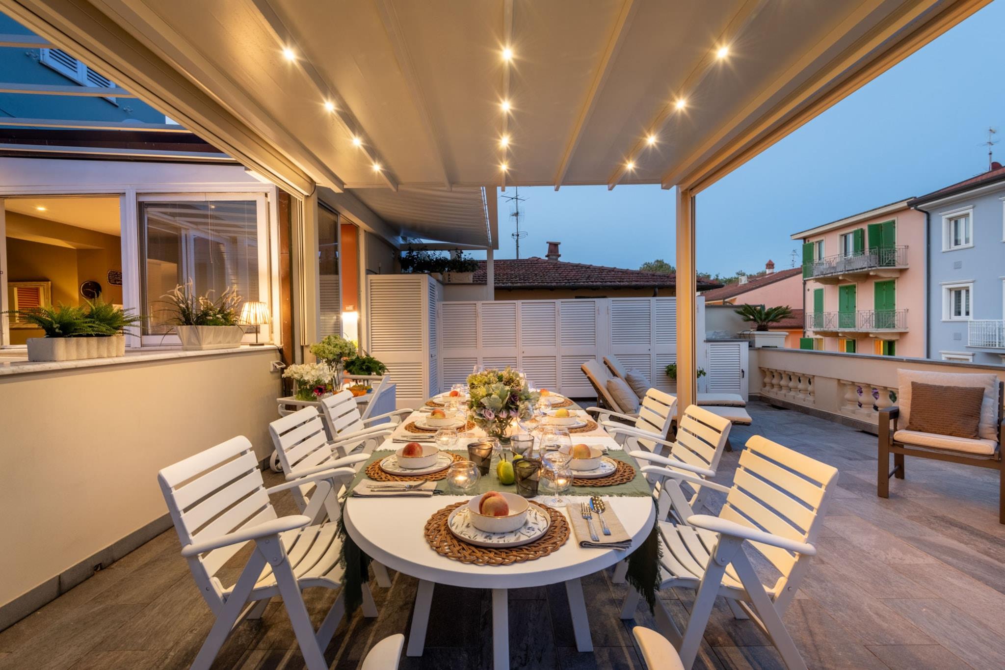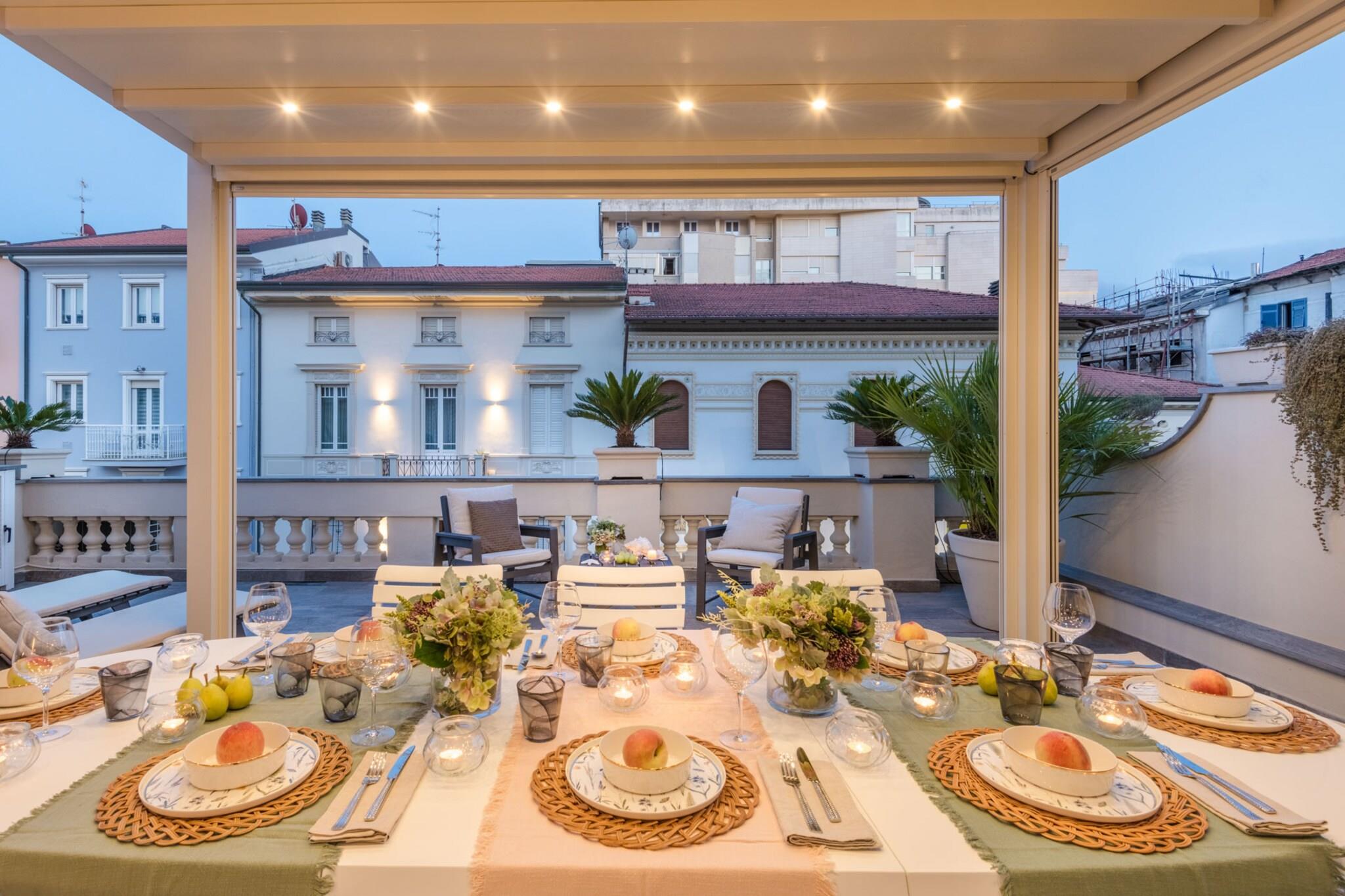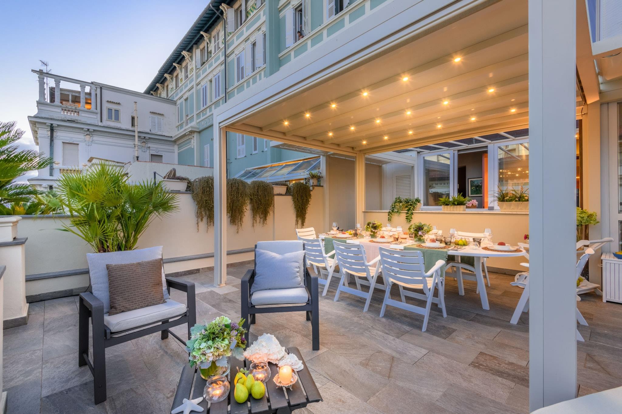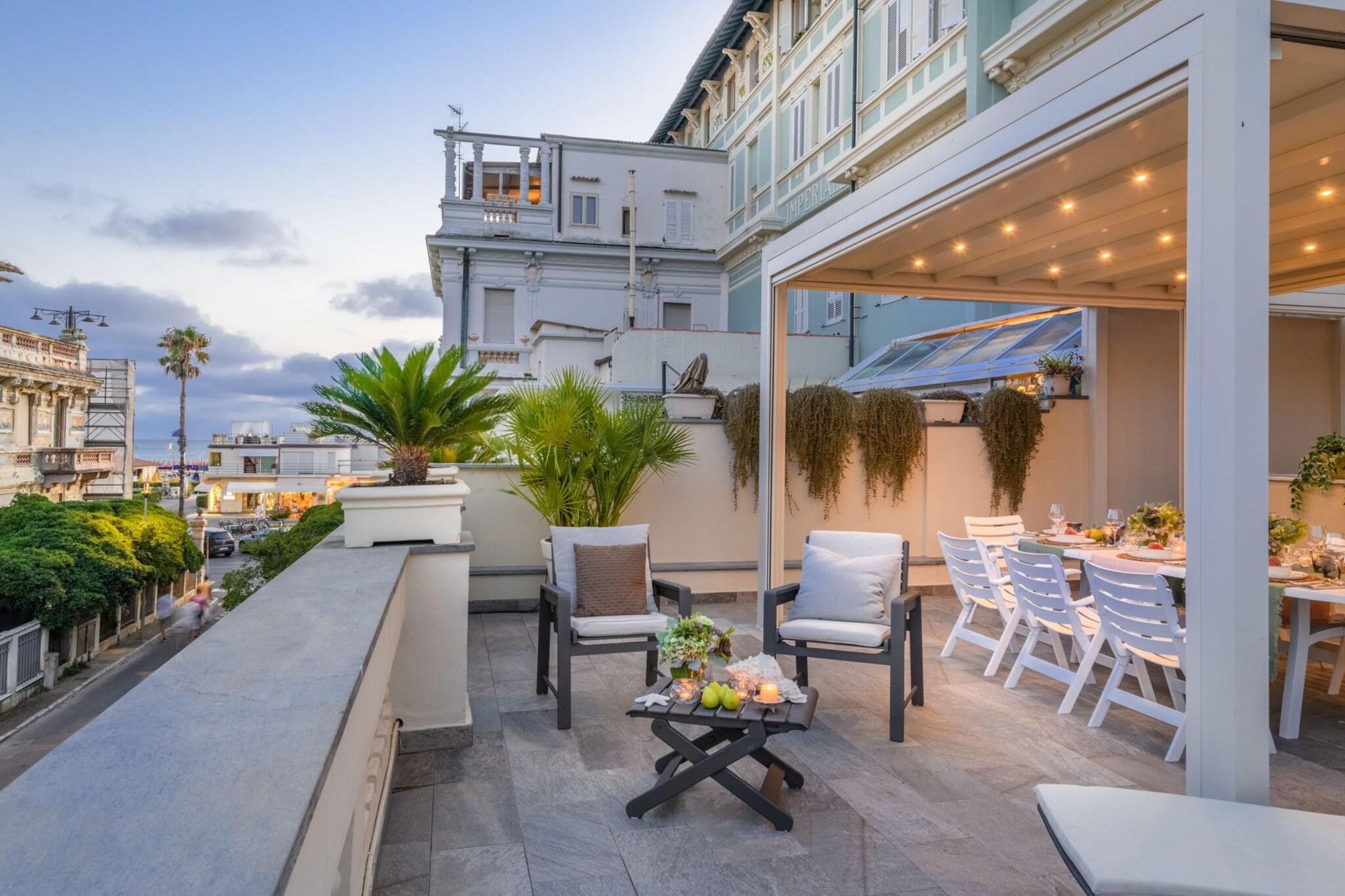 Inmitten der eleganten Mauern eines majestätischen Palastes mit Meerblick aus dem 19. Jahrhundert verbindet diese Wohnung im ersten Stock nahtlos modernen Luxus mit historischem Charme. Einst Teil des legendären Grand Hotel Imperiale, wurde dieses Strandanwesen gekonnt in exquisite, moderne Residenzen verwandelt, wobei sein majestätischer Charakter erhalten blieb. Die Wohnung ist bequem mit dem Aufzug erreichbar und verfügt über eine bemerkenswerte große Terrasse mit inspirierendem Blick auf die Promenade, unberührte Strände und das schimmernde Meer. Dieser großzügige Rückzugsort im Freien ist ideal zum Sonnenbaden, Essen im Freien oder Genießen der ruhigen Küstenatmosphäre. Bewundern Sie von der Terrasse aus die kunstvollen Jugendstilfassaden der nahegelegenen Villen, die Anfang des 20. Jahrhunderts von Aristokraten erbaut wurden und der bezaubernden Landschaft eine opulente Note verleihen. Stellen Sie sich vor, Sie wachen zum sanften Rauschen der Wellen auf, während das Morgenlicht die lebhafte Promenade und das Leben am Meer in goldene Töne taucht. Diese Wohnung ist mehr als nur eine Residenz; Es ist ein Tor zu einer zeitlosen Ära der Eleganz und Pracht. Die große Terrasse lädt zum Entspannen und Aufsaugen der Umgebung ein. Genießen Sie Ihren Morgenkaffee, während die Sonne über dem Horizont aufgeht, oder speisen Sie abends unter dem Sternenhimmel und bewundern Sie dabei das glitzernde Wasser und die charmante Architektur. Der ruhige Raum ist perfekt, um in der Sonne zu liegen oder die funkelnden Sterne am Himmel zu beobachten. Der durchdachte Grundriss umfasst einen Eingang, ein geräumiges Wohnzimmer, einen Essbereich mit Küche und Zugang zur Terrasse, ein Doppelzimmer mit Terrassenzugang und eigenem Bad, zwei weitere Doppelzimmer, ein Badezimmer und einen Ankleideraum. Eine Außendusche auf der Terrasse rundet das Küstenerlebnis ab. Genießen Sie einen eleganten Lebensstil mit atemberaubender Aussicht in dieser außergewöhnlichen Residenz. Hinweis: Kurtaxe ist vor Ort zu entrichten.
