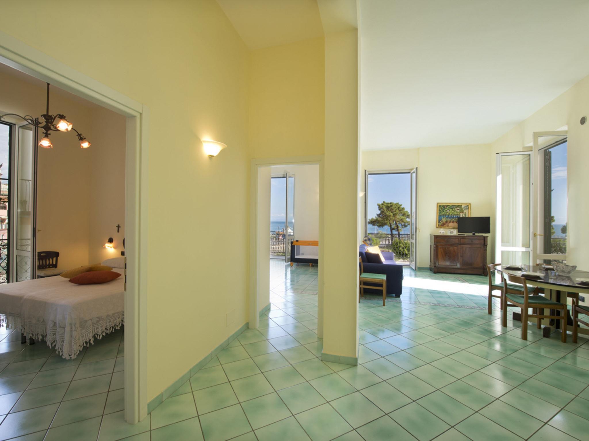 "Antonietta", 3-Zimmer-Wohnung 80 m2 im 1. Stock. Teilweise renoviert im Jahre 2023, komfortabel und gemütlich eingerichtet: Wohn-/Schlafzimmer mit Panoramafenster mit 1 Doppeldiwanbett, Esstisch und TV (Flachbildschirm). Ausgang zur Terrasse. 1 Doppelzimmer mit Panoramafenster. Ausgang zum Balkon. 1 Doppelzimmer. Kochnische (2 Kochplatten, Mikrowelle). Dusche/Bidet/WC. Heizung (extra). Balkon, grosse Terrasse. Terrassenmöbel. Schöne Sicht auf das Meer. Zur Verfügung: Waschmaschine. Parkplatz Nr. 1 (extra) beim Haus. IT065157B498ND3DIG