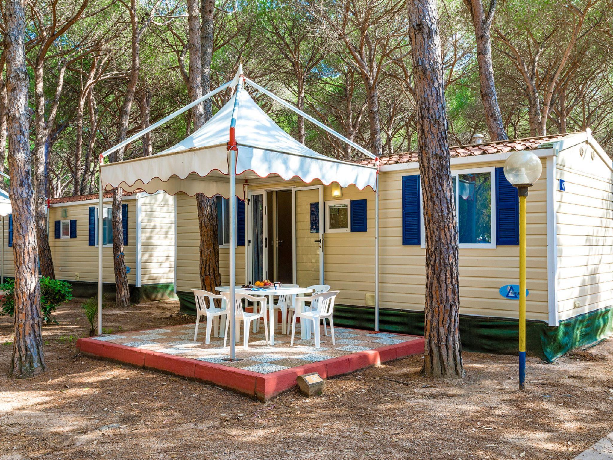 "Baia Blu Romantic", 3-Zimmer-Mobilheim 24 m2. Wohn-/Esszimmer mit 1 Diwanbett (70 cm, Länge 160 cm), Esstisch, Sat-TV und Internationale TV-Sender. 1 Zimmer mit 1 franz. Bett (140 cm). 1 Zimmer mit 2 Betten (70 cm), 1 x 1 Etagenbetten (65 cm, Länge 175 cm). Offene Küche (4 Flammen). Dusche, sep. WC. Klimaanlage, Warmluftheizung (extra). Gartensitzplatz. Parkplatz (1 Auto). Maximal 2 Haustiere/Hunde erlaubt. Flexibilität bei der Bettenaufteilung: Es stehen mehr Schlafmöglichkeiten zur Verfügung als die maximal zugelassene Personenzahl, diese darf dennoch nicht überschritten werden. IT090062B1000F2412