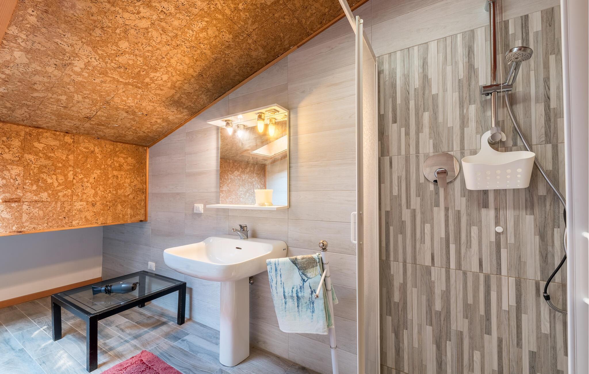 Badezimmer (nr. 2) - WC. Warmes und kaltes Wasser. Dusche und Badewanne