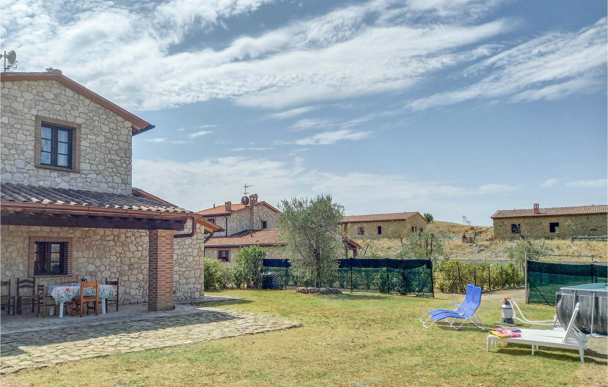 Willkommen in diesem schönen Ferienhaus mit großem Garten und einem privaten Badebassin. Auf der überdachten Terrasse können Sie morgens frühstücken oder den Tag bei einem Glas Wein aus der Region ausklingen lassen. Dieses Haus besticht durch seine schöne Lage mit Blick auf die umliegenden Hügel mit Weizen- und Olivenhainen. Es befindet sich im Grünen, ideal zum Entspannen, aber ist auch ein guter Ausgangspunkt für Sightseeing in der Umgebung.