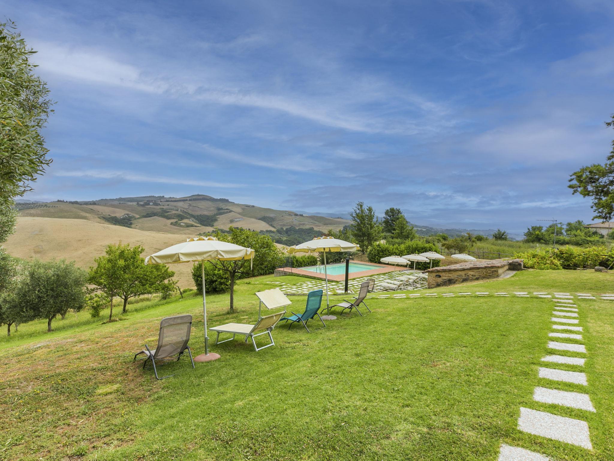 Residenz "Villa Caggio". 2 Häuser in der Residenz. 5 Wohnungen in der Residenz. 3 km vom Zentrum von Volterra, am Ortsrand, 30 km vom Zentrum von San Gimignano, 45 km vom Meer. Zur Mitbenutzung: Grundstück 1'000 m2 (eingezäunt), Bäumen, Wiese, Schwimmbad (4 x 9 m, saisonale Verfügbarkeit: 21.Mai. - 02.Okt.). Aussendusche, Poolpflege durch den Besitzer/Gärtner. In der Anlage: Wireless LAN, Fahrradverleih. Parkplatz auf dem Grundstück. Einkaufsgeschäft 2 km, Supermarkt 3 km, Bushaltestelle 1 km, Sandstrand "Marina di Cecina" 45 km, Hallenbad 4 km. Nahe gelegene Sehenswürdigkeiten: Pisa 70 km, Lucca 75 km, Siena 50 km, Firenze 80 km. Wandergebiete: Parco Berignone 12 km. Bitte beachten: Der Besitzer wohnt auf dem gleichen Grundstück. E-Bikes und Auto Verleih beim Besitzer. (extra).