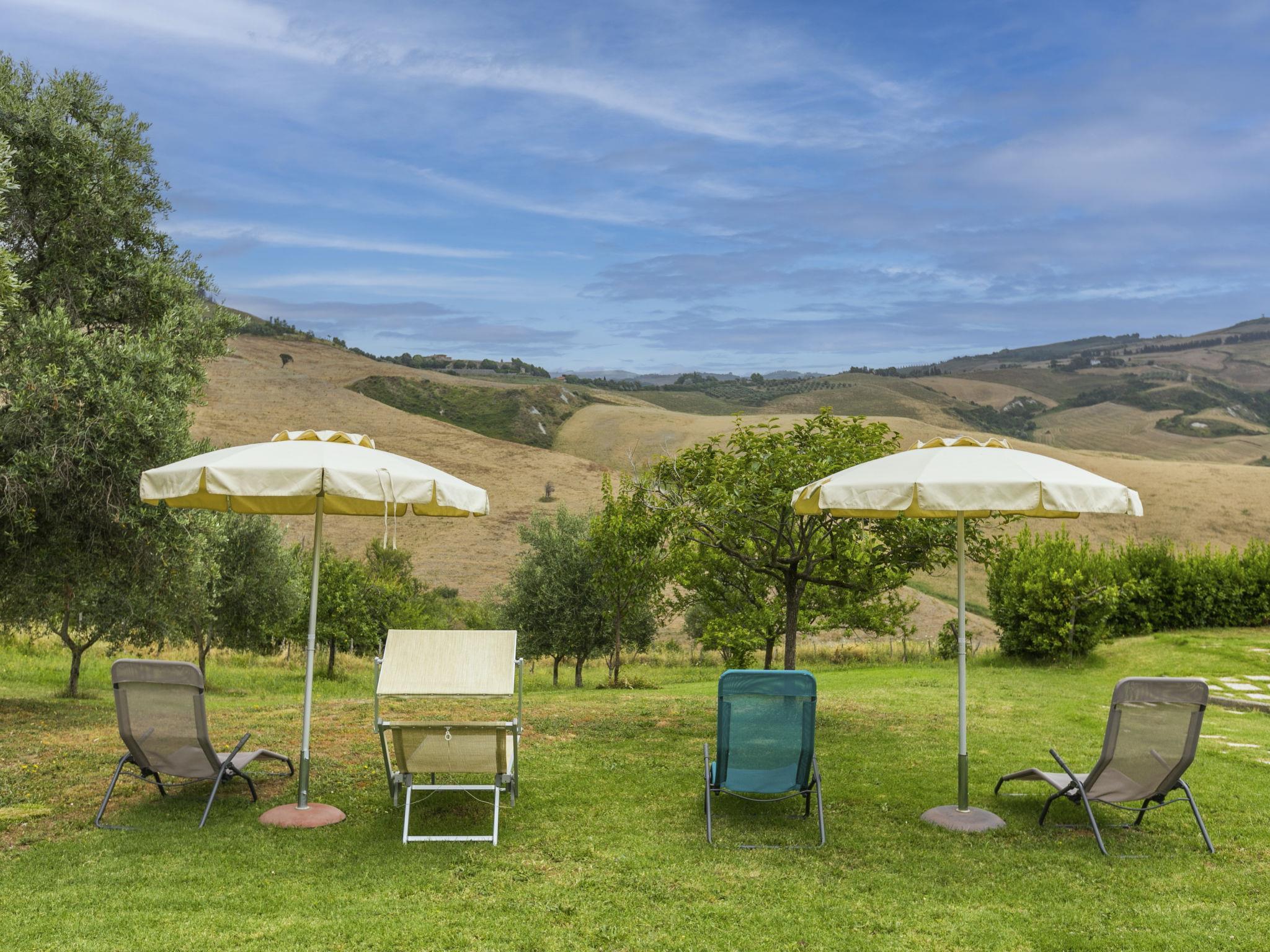 Residenz "Villa Caggio". 2 Häuser in der Residenz. 5 Wohnungen in der Residenz. 3 km vom Zentrum von Volterra, am Ortsrand, 30 km vom Zentrum von San Gimignano, 45 km vom Meer. Zur Mitbenutzung: Grundstück 1'000 m2 (eingezäunt), Bäumen, Wiese, Schwimmbad (4 x 9 m, saisonale Verfügbarkeit: 21.Mai. - 02.Okt.). Aussendusche, Poolpflege durch den Besitzer/Gärtner. In der Anlage: Wireless LAN, Fahrradverleih. Parkplatz auf dem Grundstück. Einkaufsgeschäft 2 km, Supermarkt 3 km, Bushaltestelle 1 km, Sandstrand "Marina di Cecina" 45 km, Hallenbad 4 km. Nahe gelegene Sehenswürdigkeiten: Pisa 70 km, Lucca 75 km, Siena 50 km, Firenze 80 km. Wandergebiete: Parco Berignone 12 km. Bitte beachten: Der Besitzer wohnt auf dem gleichen Grundstück. E-Bikes und Auto Verleih beim Besitzer. (extra).