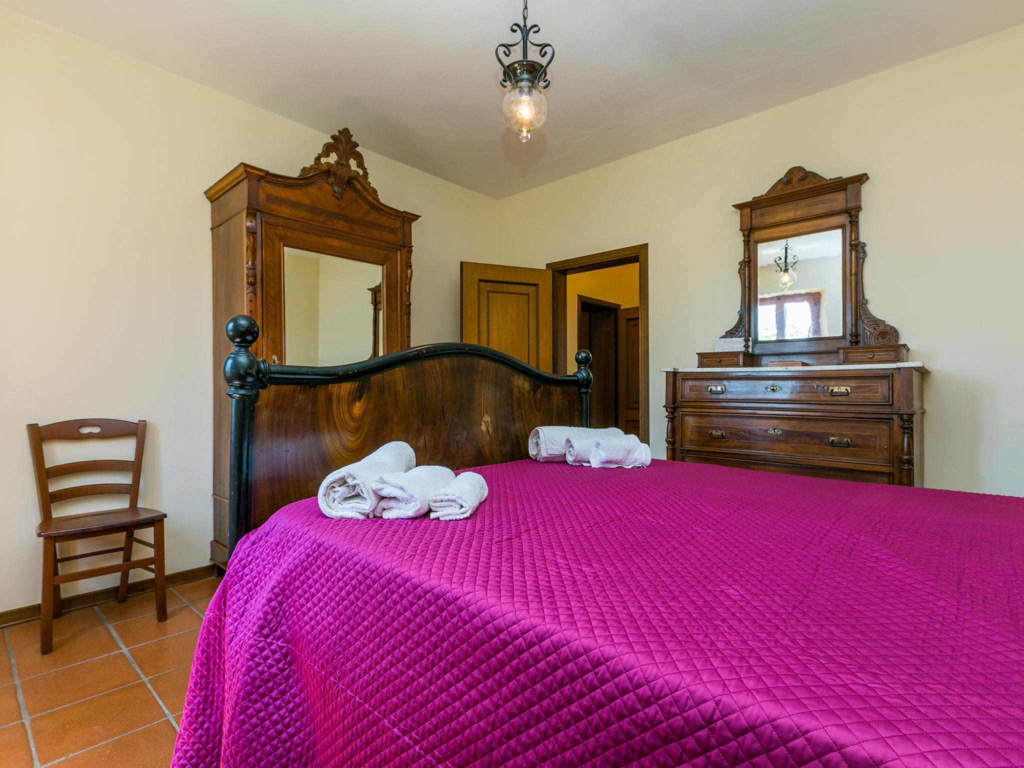 Landhaus "Podere Santa Lucia". 1.5 km vom Zentrum von Volterra, 65 km vom Zentrum von Siena, 40 km vom Zentrum von Cecina, 41 km vom Meer. Zur Alleinbenutzung: Grundstück 5'000 m2, terrassierter Garten (nicht eingezäunt), Wiese, Obstgarten, Schwimmbad (8 x 4 m, 140 cm tief, saisonale Verfügbarkeit: 01.Mai. - 09.Okt.). Aussendusche, Terrasse, Gartenmöbel, Poolpflege durch den Besitzer/Gärtner. Zufahrt (200 m Naturweg). Parkplatz auf dem Grundstück. Einkaufsgeschäft 500 m, Supermarkt 1.5 km, Bushaltestelle 250 m, Sandstrand 41 km, Hallenbad 400 m.