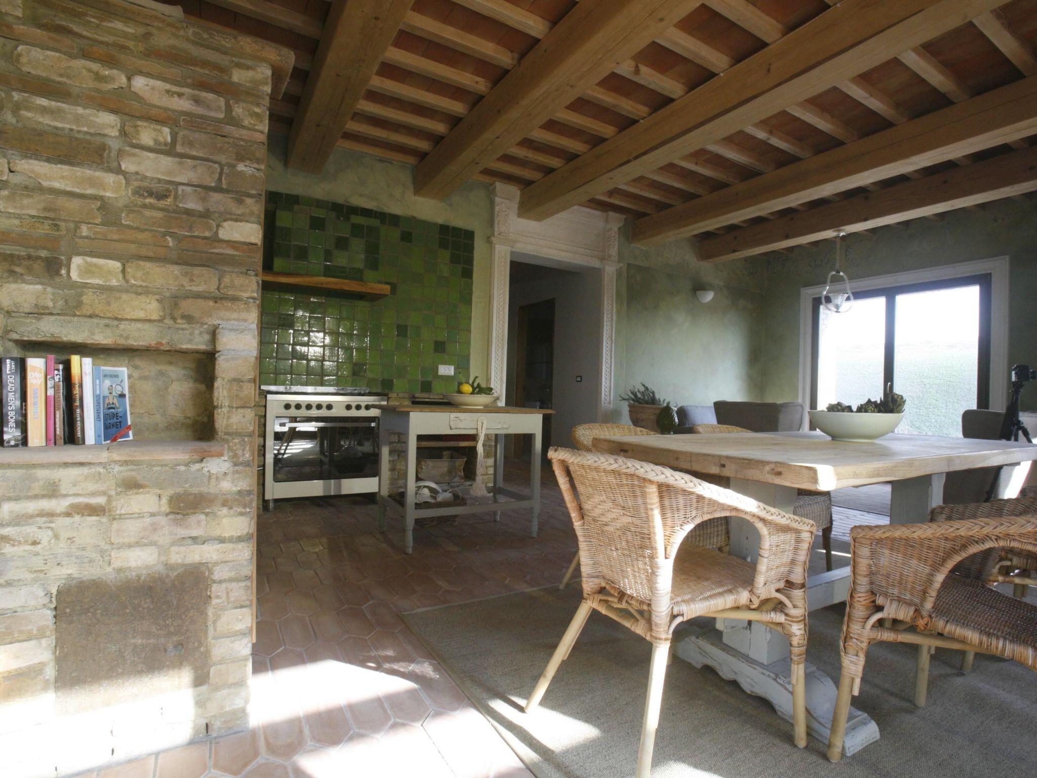 Die Wohnung verfügt auch über erstaunliche Terrasse mit Tisch und Stühlen, wo Sie frühstücken, Mittagessen haben kann. Gelegen zwischen den Dörfern, Weinbergen und goldenen Hügeln der Toskana. Unser Garten ist riesig, gemeinsam für alle Gäste.