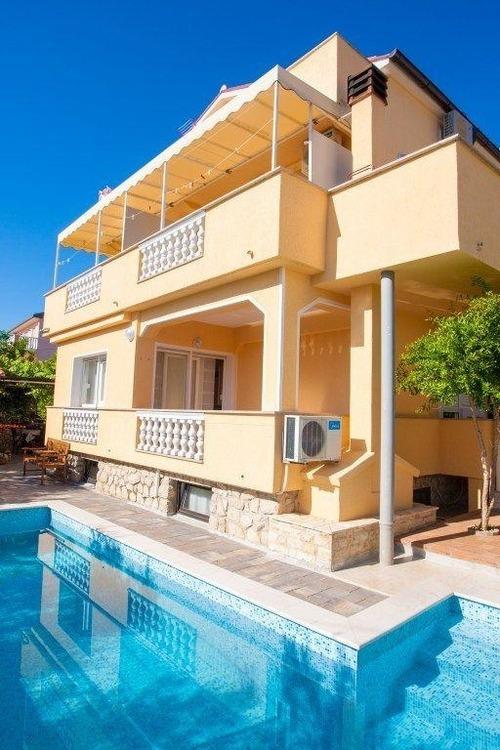 Each apartment has a balcony and free Wi-Fi , air-conditioned and have satellite TV . The apartments are equipped for self-catering , and the hosts are always at your disposal . All guests can enjoy at the outdoor swimming pool and sun terrace in the garden . The courtyard is completely enclosed by a fence and provides guests with privacy . In addition to the pool there is a barbecue , and the back yard playground and table tennis .