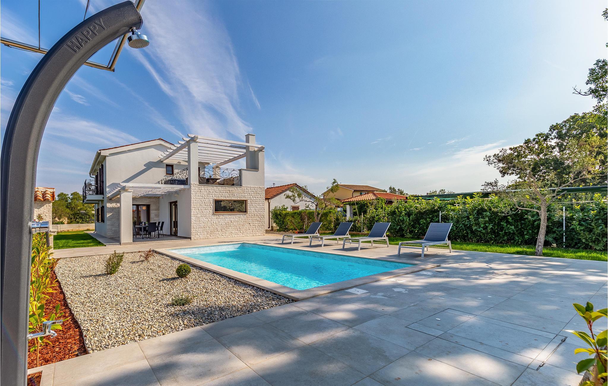 In der grünen Umgebung und in der Nähe des Rasa-Kanals empfängt Sie dieses schöne Ferienhaus, das Sie mit vielen Annehmlichkeiten empfängt. Treten Sie ein und fühlen sich in der hellen Umgebung wie zuhause. Entspannen Sie sich in den Räumen, die Ihnen durch das offene Konzept gemeinsame Zeit beim Kochen, Essen und Spielen verspricht. Genießen Sie Ihre Stunden beim Billardspielen im Haus oder wählen Im Freien die Terrasse im Garten, wo Sie am Morgen frühstücken und am Abend grillen können. Die großartige Dachterrasse ist ebenfalls ein herrlicher Ort, um Ihren Kaffee zu genießen und anschließend im Whirlpool zu entspannen. Badefreunde finden Spaß und Erfrischung auch in dem privaten Pool im Garten, wo daneben das Sonnendeck auf Sie wartet.