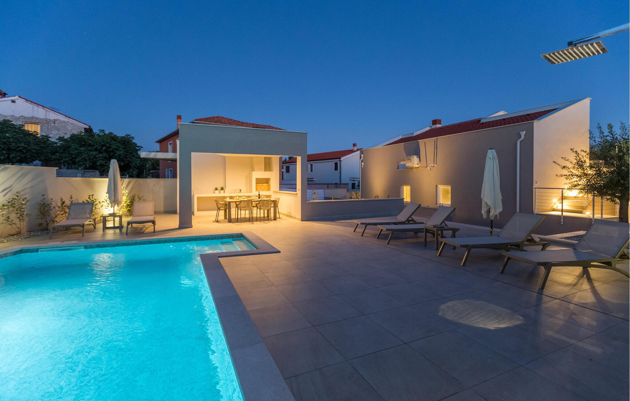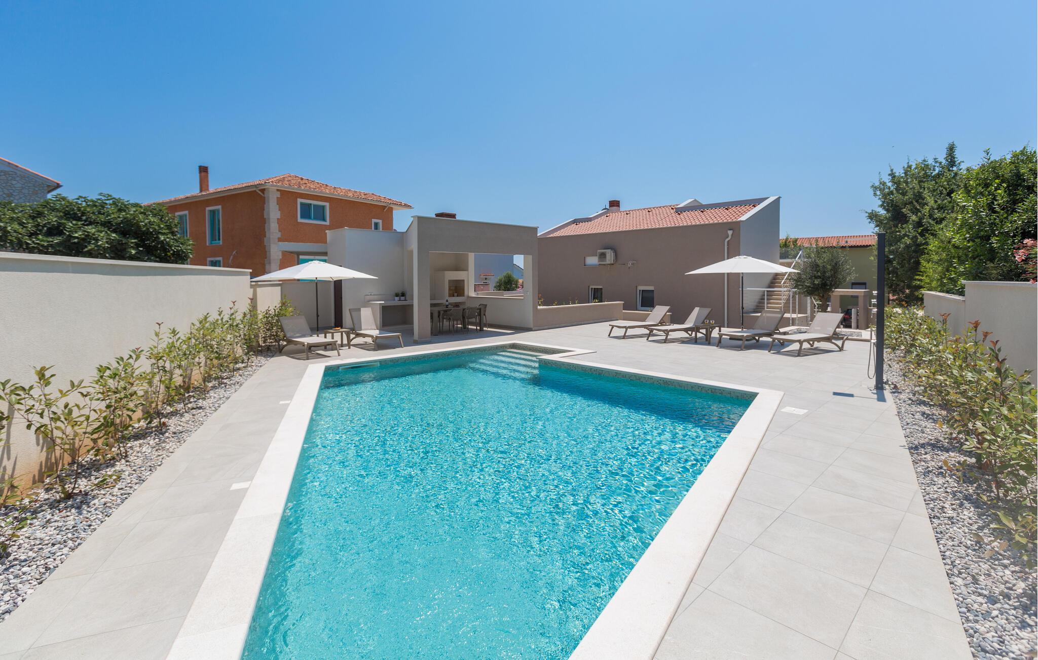 Ihr luxuriöses Ferienhaus erwartet Sie mit einem modernen Design und einem warmen Stil, der Ihnen das Gefühl von Sorglosigkeit vermittelt. Lassen Sie den Tag ruhig angehen und bereiten Sie in der offenen Küche ein stärkendes Frühstück zu und nehmen Sie es mit hinaus auf die überdachte Terrasse. Dort am Esstisch können Sie Ihren Kindern beim Planschen im Pool zuschauen und die freie Urlaubszeit in vollen Zügen genießen. Bereiten Sie im Außenbereich in der überdachten Sommerküche auch köstliche Mahlzeiten zu und genießen Sie diese mit der ganzen Familie.