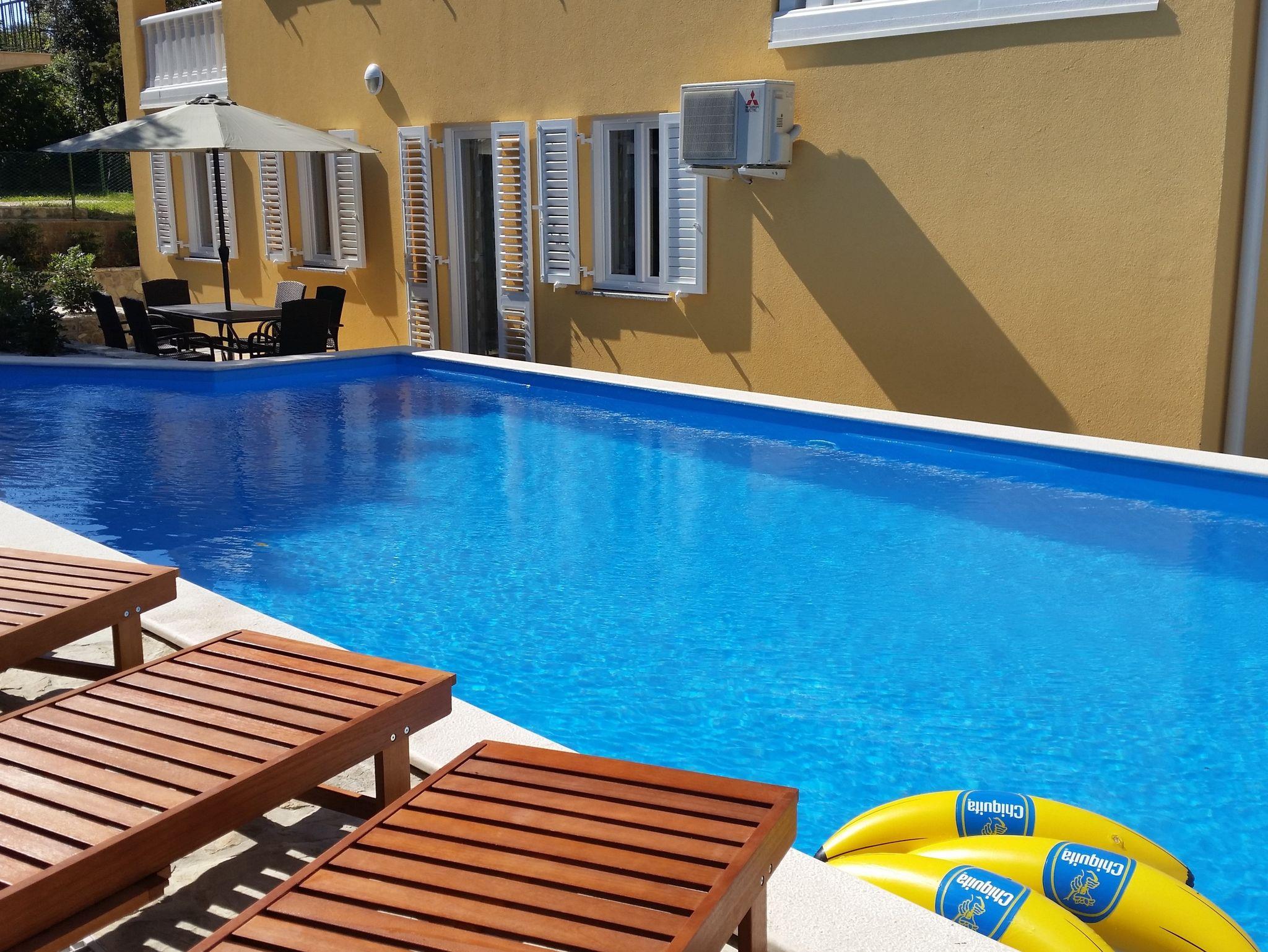 Umgebung des Objekts (Ordentlich), Hof (200m2, Kinderbereich, Sitzbereich), Parkplatz (Anzahl der Parkplätze: 6, Entfernung vom Objekt: im Hof), Parkplatz (Anzahl der Parkplätze: 4, Entfernung vom Objekt: 50 m), Pool: gemeinsam, Dimensionen: 9m x 4m x 1.4m, Wassertyp: Süßwasser, Grill: gemeinsam, WiFi Internet, Föhn, Bügeleisen