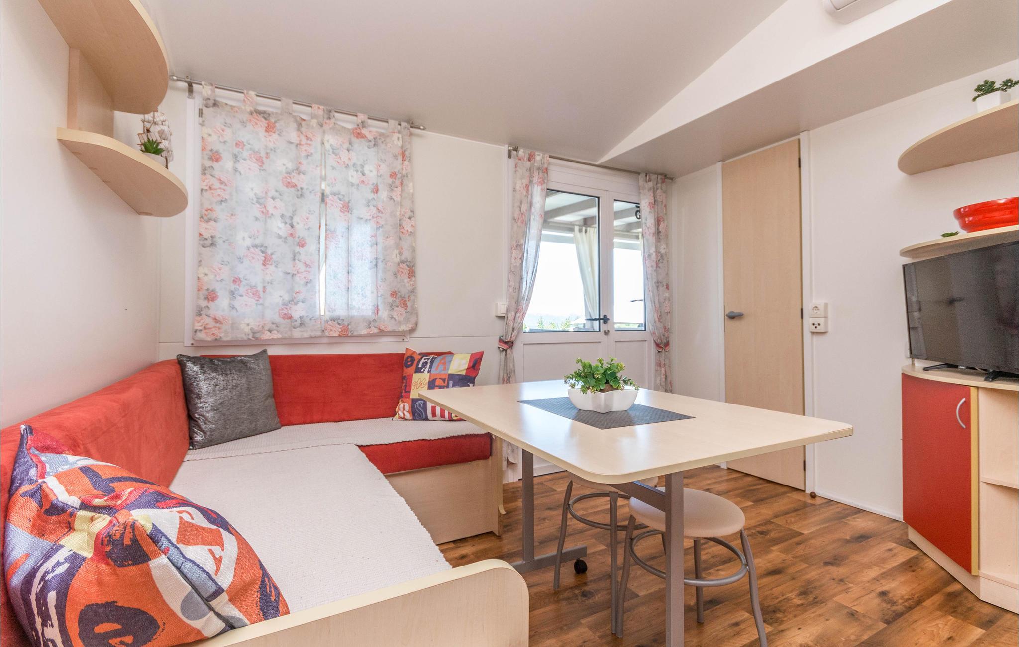 Auf einem schönen Grundstück mit mehreren Ferienwohnungen und Mobilheimen empfängt Sie dieses schöne Ferienhaus. Gemeinsam mit Ihrer Familie können Sie es sich hier bequem machen und finden alles vor, was Sie zum Entspannen vom Alltag brauchen. Fühlen Sie sich in dem schönen Mobilheim wohl und genießen Ihre Mahlzeiten auf Ihrer überdachten und großzügigen Terrasse. Erkunden Sie das Grundstück, von dem Sie auch auf das Meer blicken können. Hier gibt es für Kinder einen Spielplatz und für die gesamte Familie einen Gemeinschaftspool sowie Whirlpool zum Relaxen. Auch gemeinsamen Grillabenden steht nichts im Wege, kommen Sie dabei auch mit den anderen Gästen des Grundstücks ins Gespräch.