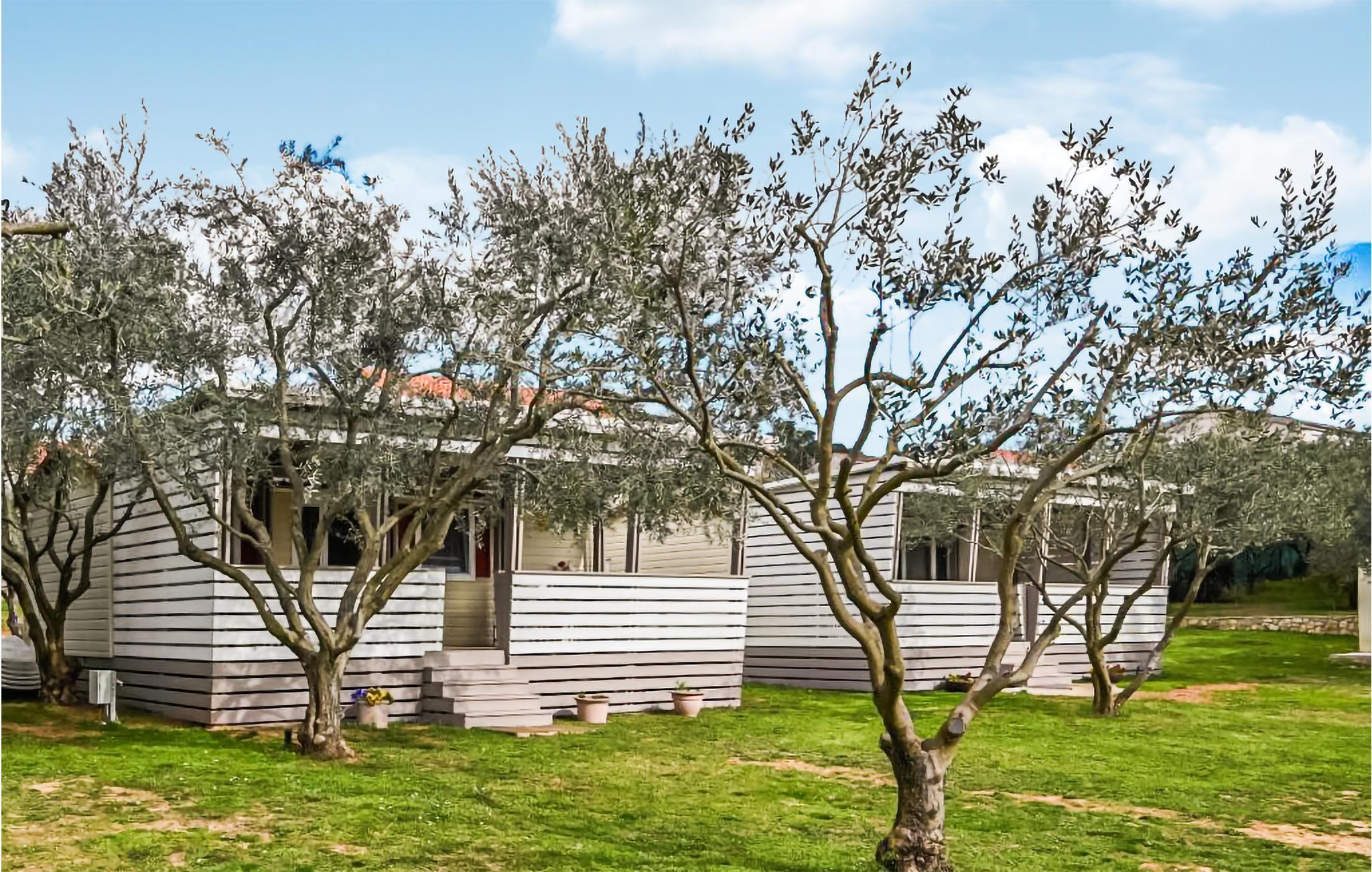 Auf einem schönen Grundstück mit mehreren Ferienwohnungen und Mobilheimen empfängt Sie dieses schöne Ferienhaus. Gemeinsam mit Ihrer Familie können Sie es sich hier bequem machen und finden alles vor, was Sie zum Entspannen vom Alltag brauchen. Fühlen Sie sich in dem schönen Mobilheim wohl und genießen Ihre Mahlzeiten auf Ihrer überdachten und großzügigen Terrasse. Erkunden Sie das Grundstück, von dem Sie auch auf das Meer blicken können. Hier gibt es für Kinder einen Spielplatz und für die gesamte Familie einen Gemeinschaftspool sowie Whirlpool zum Relaxen. Auch gemeinsamen Grillabenden steht nichts im Wege, kommen Sie dabei auch mit den anderen Gästen des Grundstücks ins Gespräch.