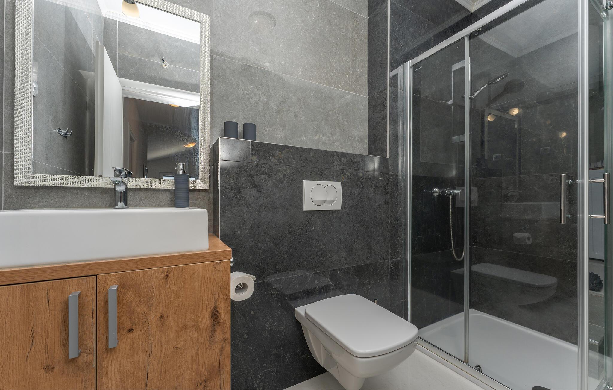 Badezimmer 7m2 (nr. 1) - WC. Warmes und kaltes Wasser. Dusche