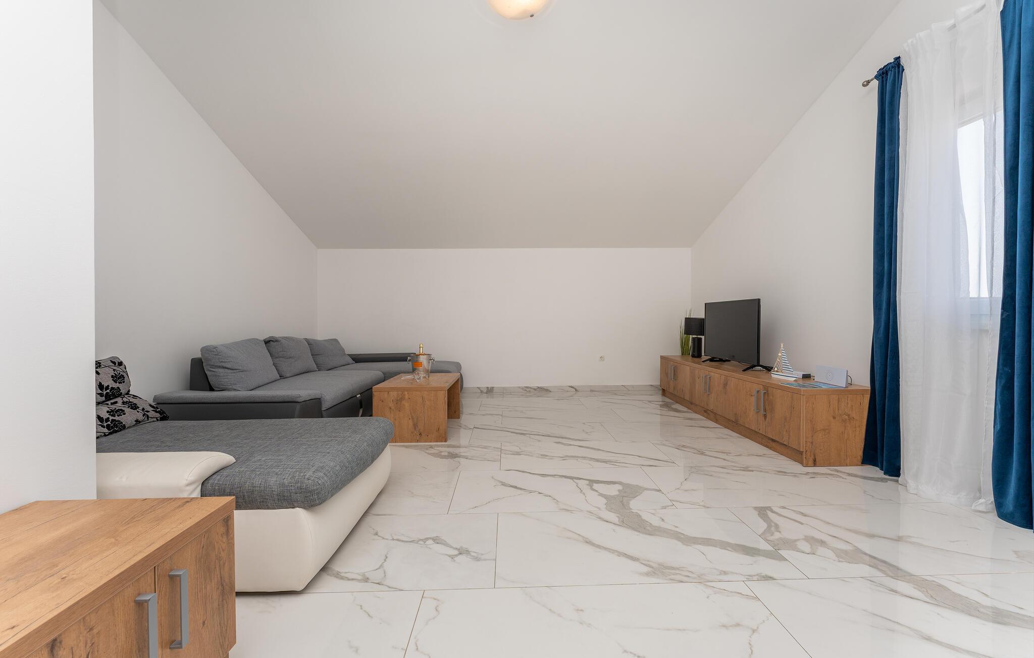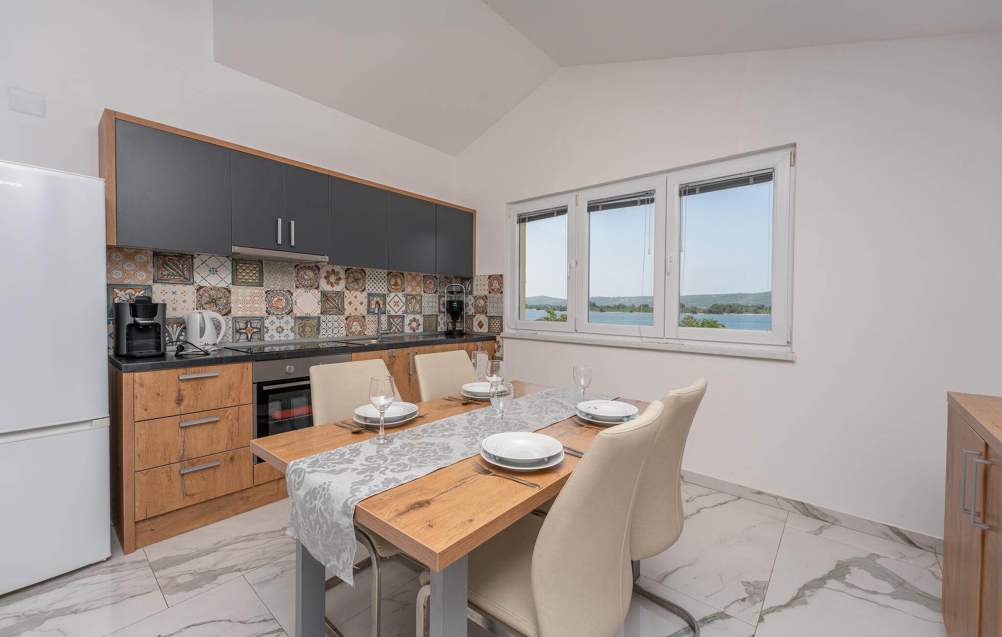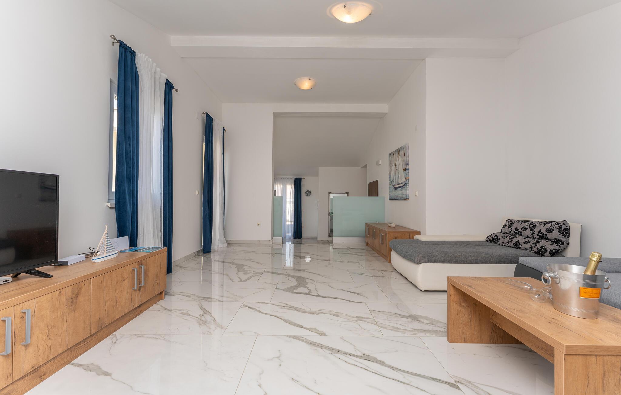 Von dieser geräumigen und komfortabel ausgestatteten Ferienwohnung aus stehen Sie schon nach wenigen Schritten im türkisblauen Wasser der Adria. Den Blick darauf können Sie bereits beim Kochen in der einladenden Küche genießen. Freuen Sie sich auf harmonische Mahlzeiten mit Ihren Liebsten und lassen Sie sich nach einem sonnigen Tag am Strand auf die gemütliche Sofalandschaft fallen, um einen Film zu streamen oder einen Spieleabend zu veranstalten.