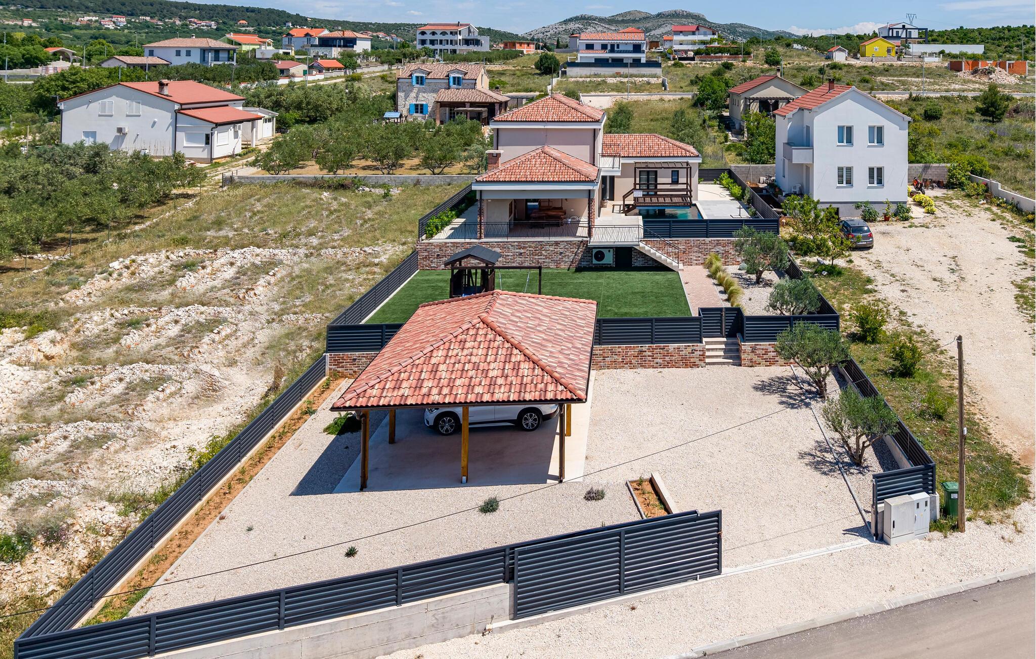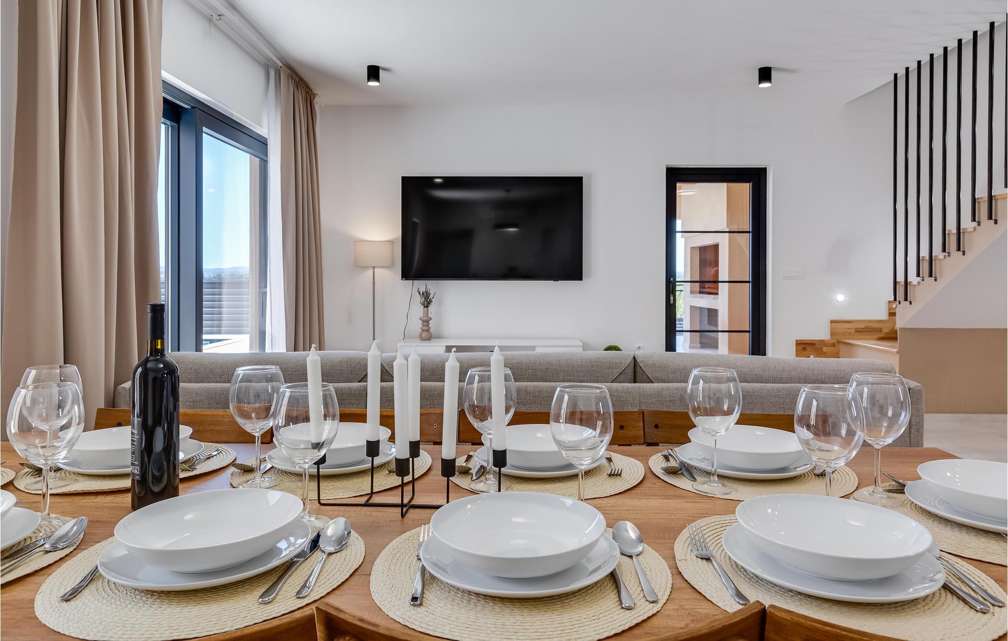 Freuen Sie sich auf dieses wunderschöne Ferienhaus, das sich ideal für die ganze Familie eignet. In einer kleinen Wohnsiedlung zwischen dem Ort Vrana und dem gleichnamigen See empfängt Sie dieses geschmackvolle und sehr gut ausgestattete Ferienhaus. Auf zwei Etagen können Sie Ihre Privatsphäre oder auch viele gesellige Stunden verbringen. Alle Schlafzimmer verfügen über ein eigenes Bad und laden Sie ein sich in den Nächten auszuruhen und entspannten in den Tag zu starten. Werden Sie im Urlaub zum Hobbykoch und zaubern in der modernen Küche oder am Grill leckere Speisen für die ganze Gruppe.