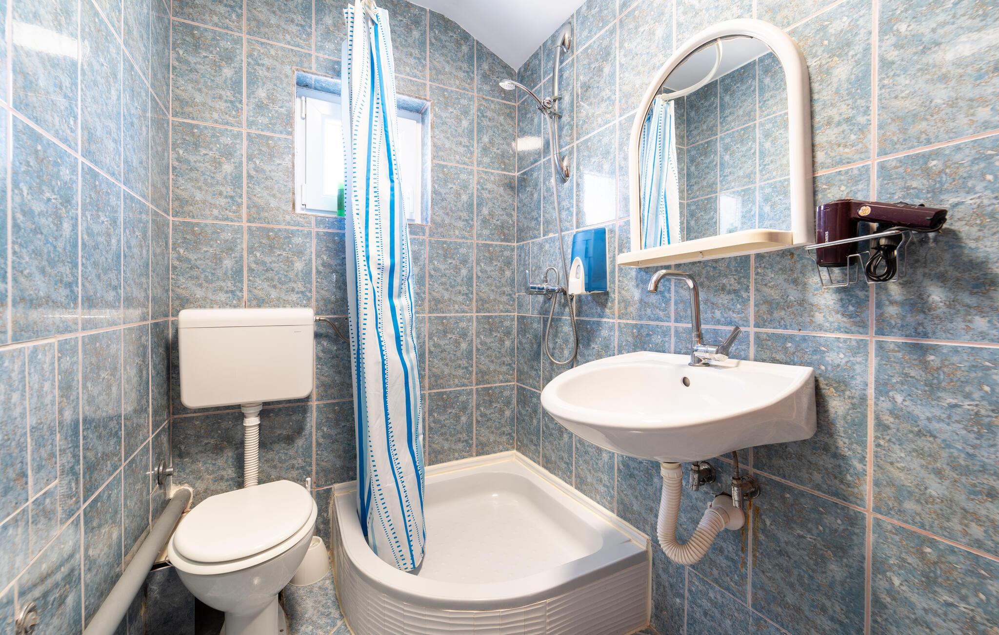 - WC mit warmem und kaltem Wasser, Dusche