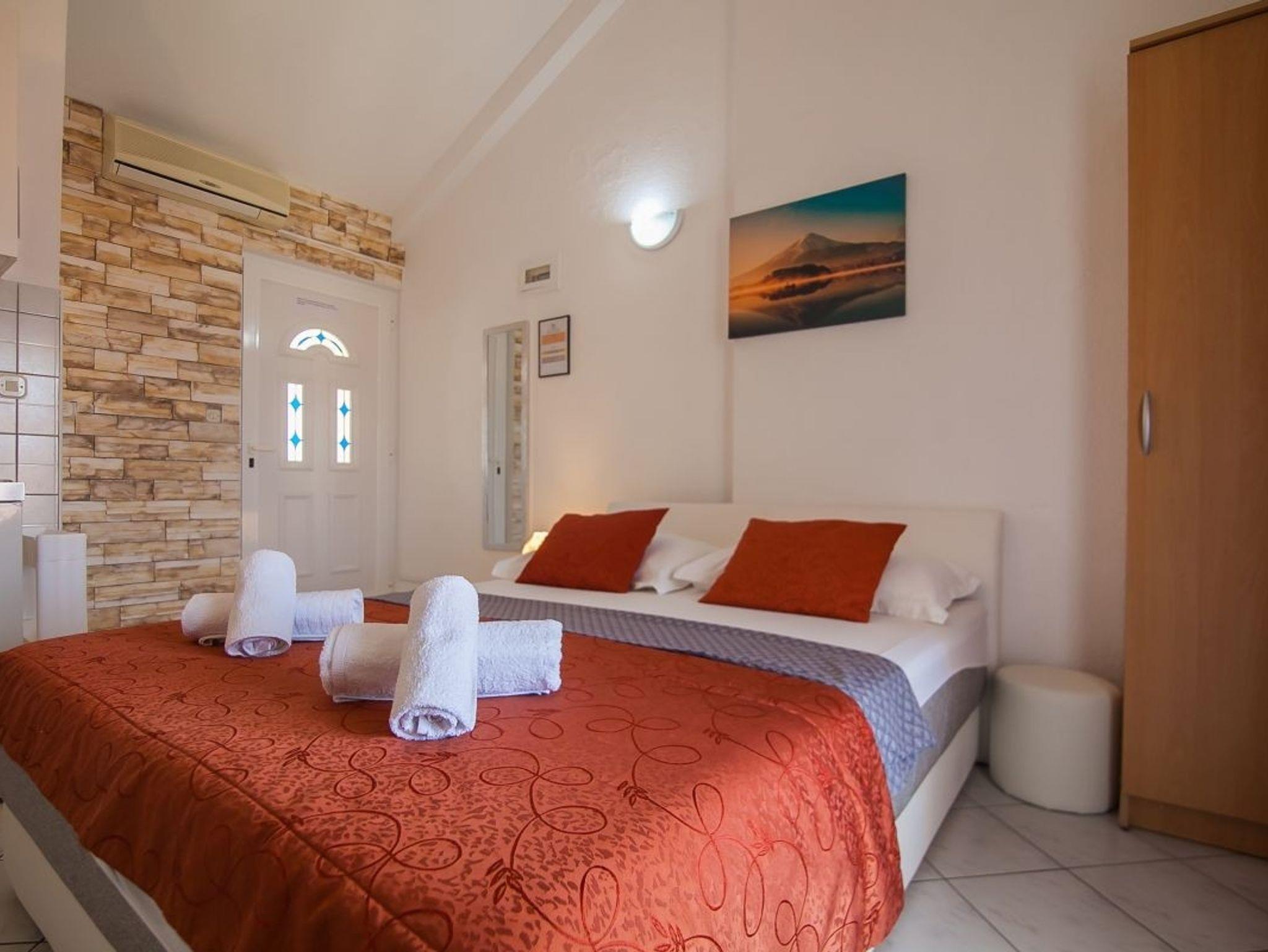 Studio bietet Platz für 2 Gäste. Die Betten sind in Schlafzimmern, die es 1 gibt, innerhalb einer Gesamtfläche von 20m2, angeordnet. Die Gäste haben einen eigenen Balkon zur Verfügung, auf der sie in warmen Sommernächten genießen können. Das Studio-Apartment bietet Meerblick. IM PREIS INBEGRIFFEN: Kurtaxe, Endreinigung, Klimatisierung, Internet, Wäschewaschen, Bügeleisen, Föhn. Die Verfügbarkeit zusätzlicher Dienstleistungen in Ihrem reservierten Termin und die Preise derselben (falls nicht aufgeführt) müssen im Voraus überprüft werden. Zusätzliche Dienstleistungen die in der Zahlungsaufforderung nicht aufgeführt sind werden direkt beim Vermieter bezahlt, angenommen der Gast nutzt auch diese.