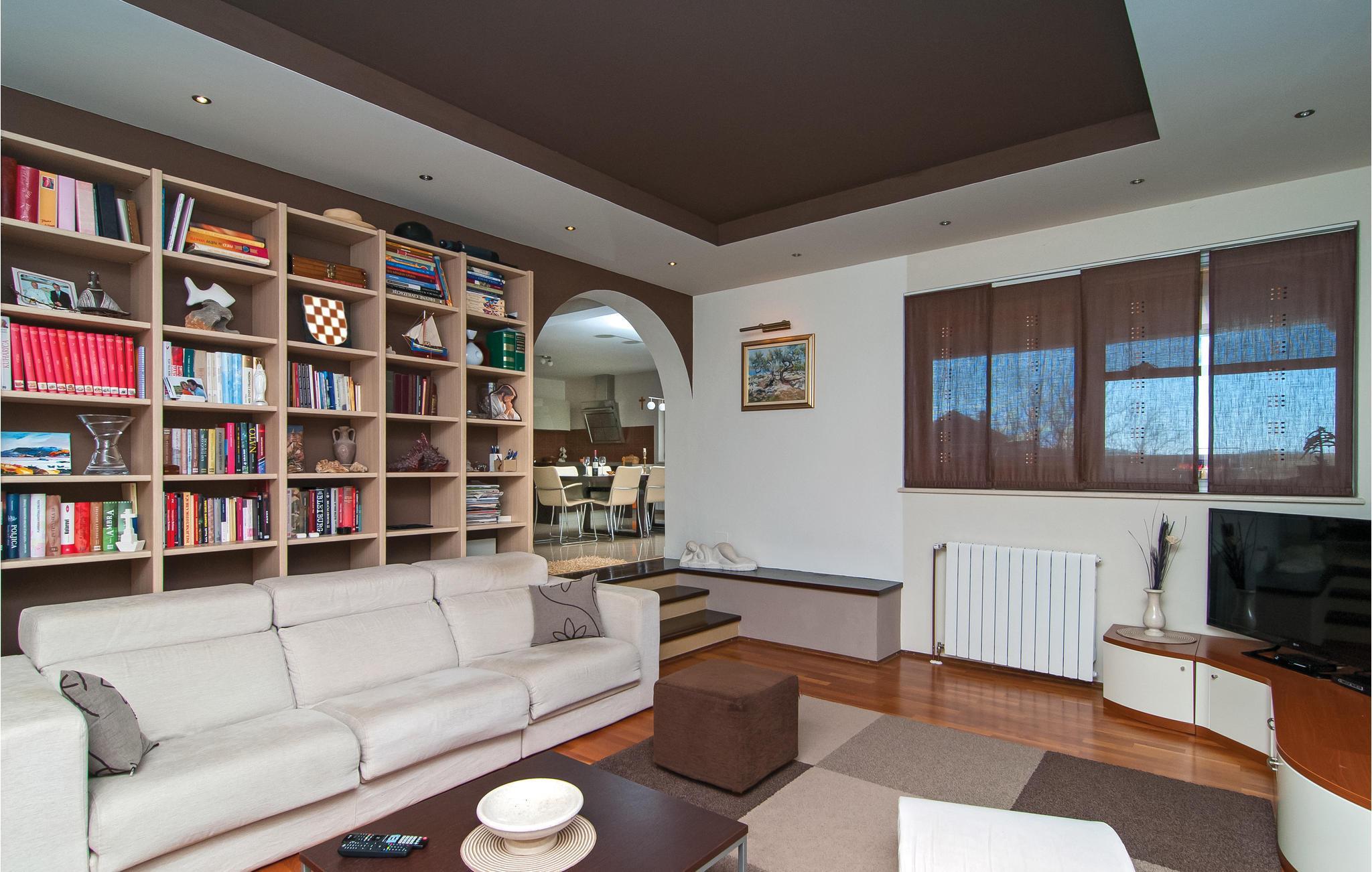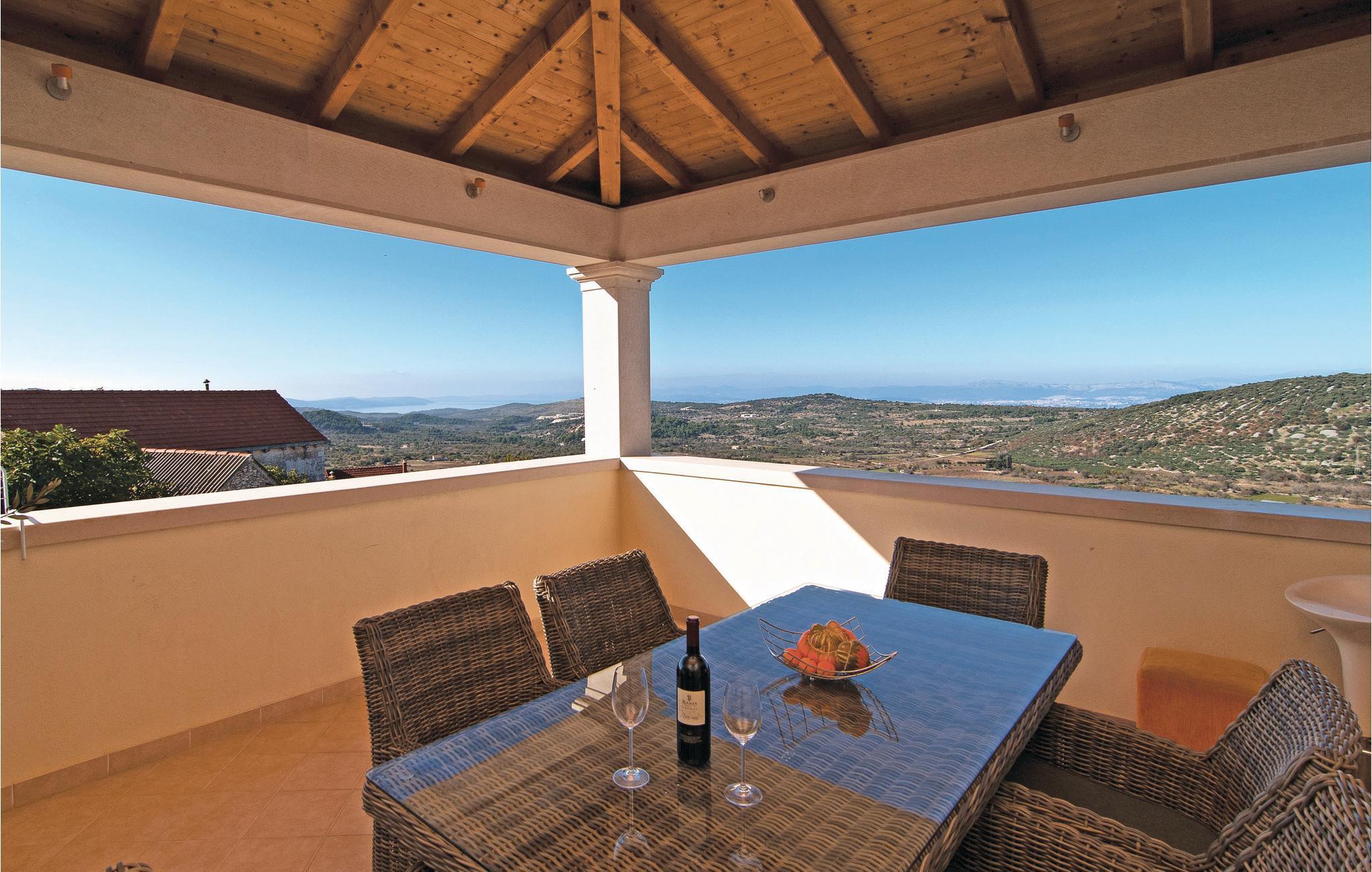 Verbringen Sie Ihren Urlaub in diesem schönen Ferienhaus mit Swimmingpool in Nerezisca, in ländlicher Umgebung auf der Insel Brac. Entspannen Sie in diesem herrlichen Ambiente. Im Erdgeschoss sind ein Wohnbereich mit Kamin und einem Tisch für 15 Personen sowie ein Schlafzimmer. Vor dieser Einheit ist eine Terrasse mit kleinem Steintisch. Seitlich davon ist die Treppe zur nächsten Etage. Unterhalb der Terrasse ist der große beheizbare Swimmingpool, zu ihm führt auch eine Treppe von der anderen Seite des Hauses. Genießen Sie die herrliche Aussicht von der überdachten Terrasse im 1. Stock. Besuchen Sie den höchsten Punkt der Insel, Vidova Gora.