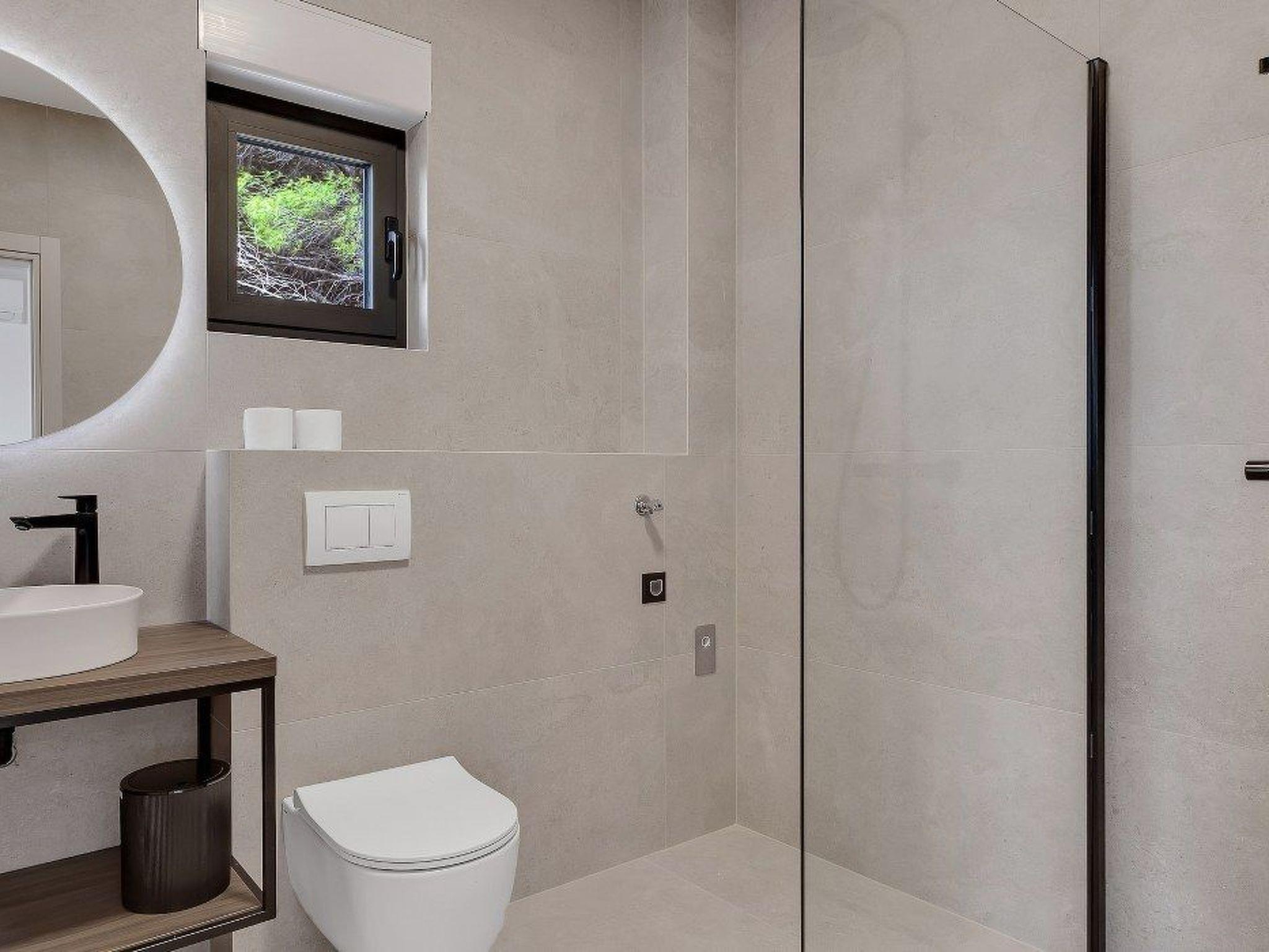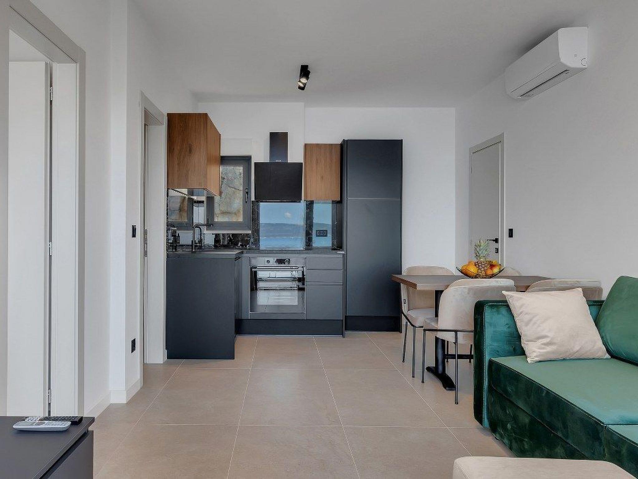 Innen bietet die Wohnung eine Oase der Ruhe und Entspannung. Jeder Raum ist mit Klimaanlage ausgestattet, um Ihnen auch an den wärmsten Tagen ein angenehmes Raumklima zu bieten. Für Ihre Bequemlichkeit steht Ihnen eine voll ausgestattete Küche mit hochwertigen Geräten wie Geschirrspüler, Backofen, Mikrowelle, Kühlschrank, Herd und Wasserkocher zur Verfügung. Das gemütliche Schlafambiente und ein tadellos gestaltetes Badezimmer mit ebenerdiger Dusche und Haartrockner versprechen erholsame Nächte und einen frischen Start in den Tag.