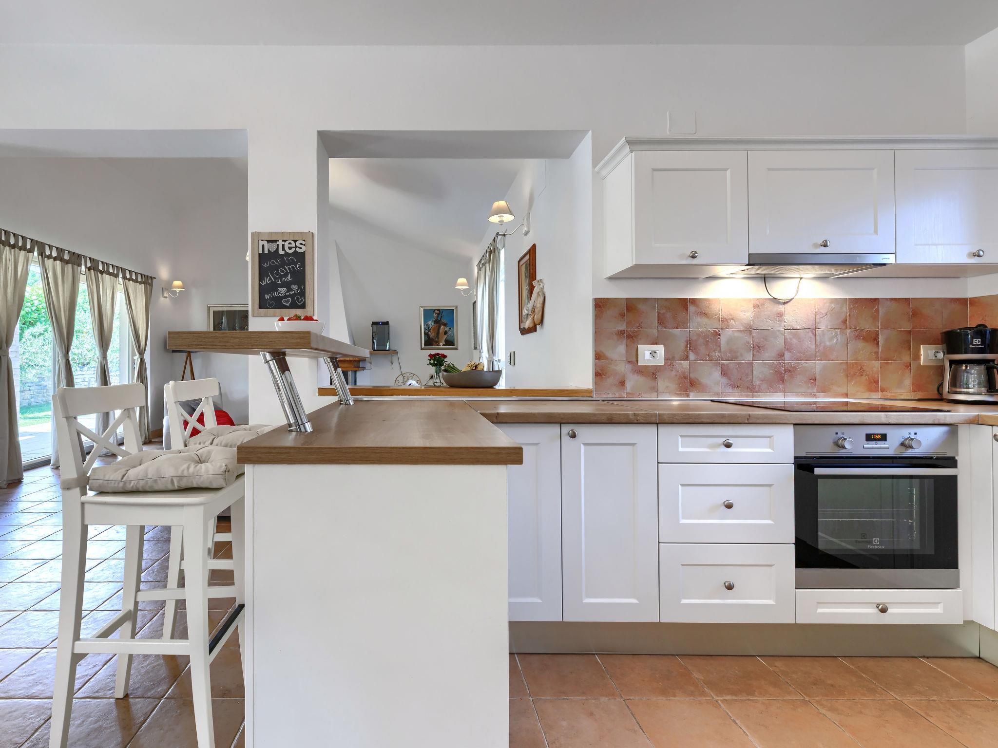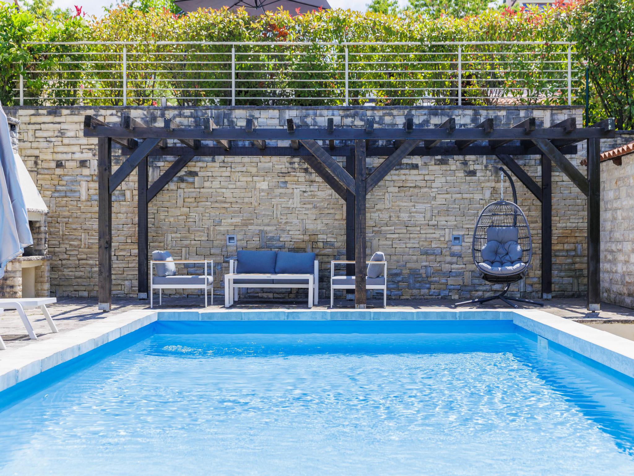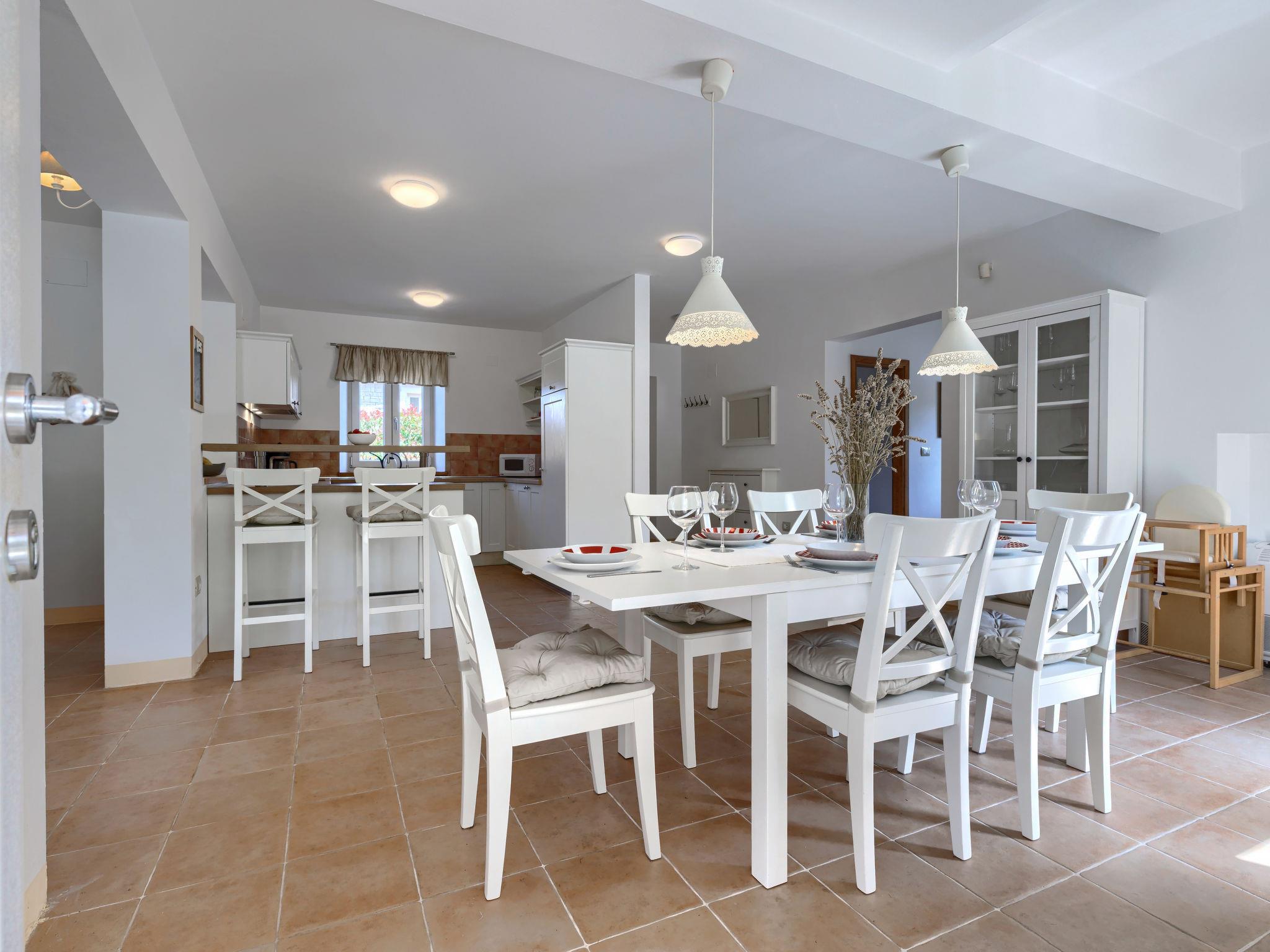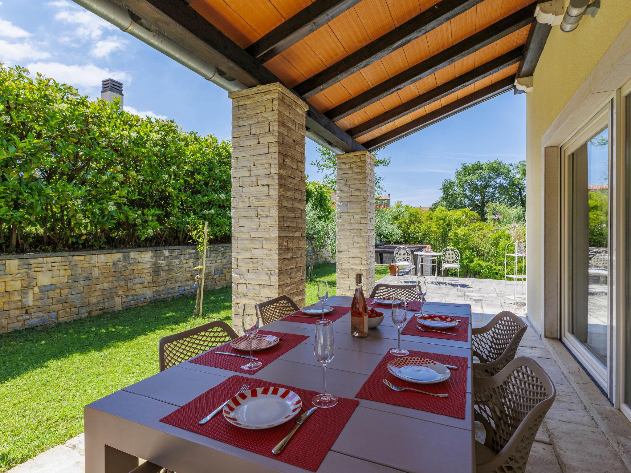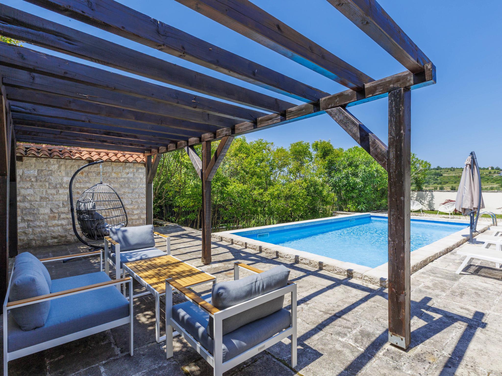 Momjan 5 km von Buje: Einfamilienhaus "Villa Samanta", auf 2 Stockwerken. Sonnige Lage, 17 km vom Meer. Zur Alleinbenutzung: Grundstück 500 m2 mit Rasen, Schwimmbad (8 x 4 m, 130 cm tief, saisonale Verfügbarkeit: 01.Mai. - 30.Sep.) mit Salzelektrolyse-Reinigungssystem. Aussendusche, Pergola (30 m2), Gartenmöbel, Grill. Im Hause: Internetzugang, Waschmaschine. Parkplatz (für 2 Autos) beim Haus auf dem Grundstück. Einkaufsgeschäft 200 m, Restaurant 150 m, Bushaltestelle 13.1 km, Kieselstrand 20 km, betonierter Strand 20 km. Wanderwege ab Haus 200 m, Radweg 250 m. Nahe gelegene Sehenswürdigkeiten: aquapark 16 km. Der Besitzer akzeptiert keine Jugendgruppen.