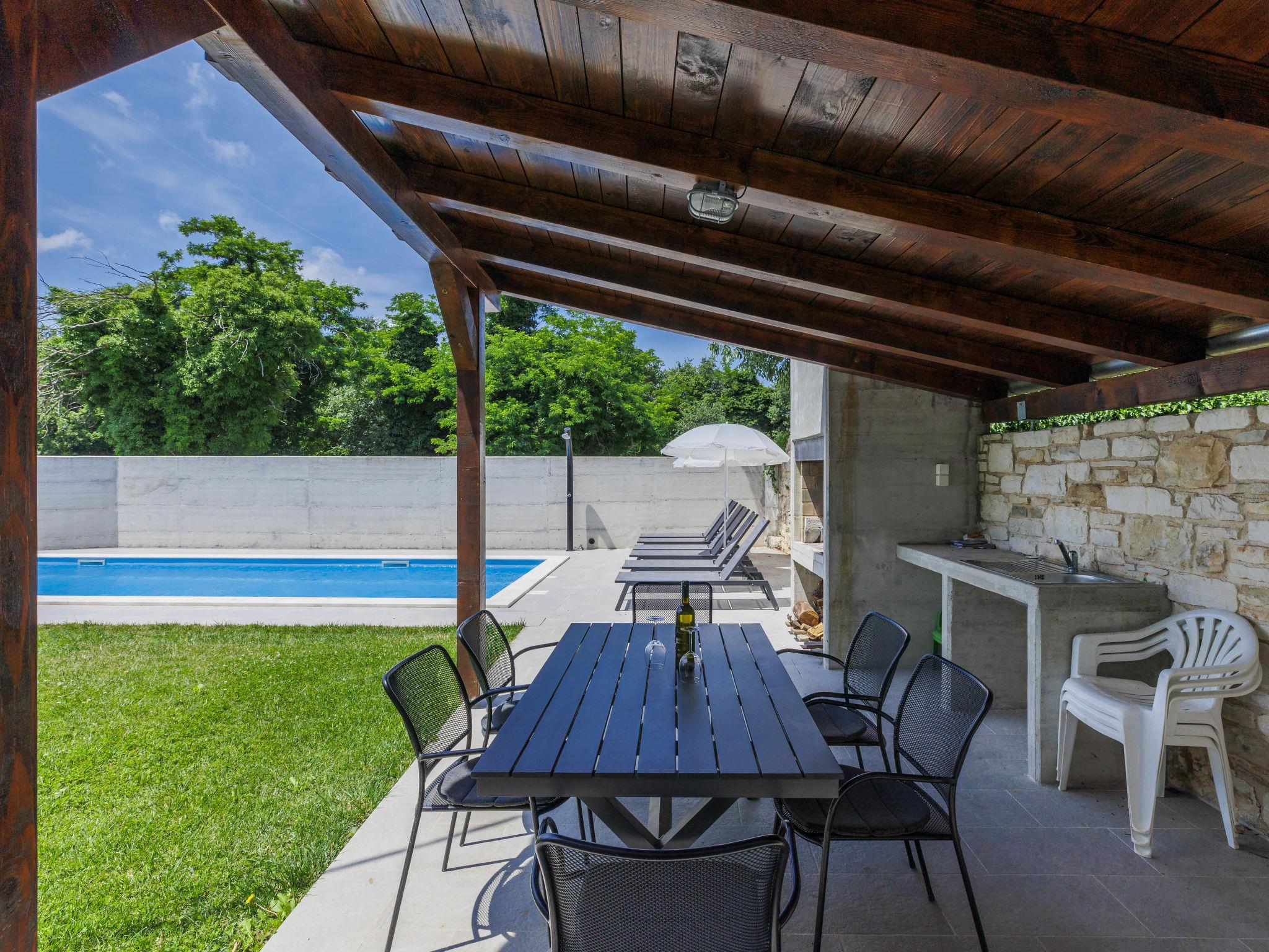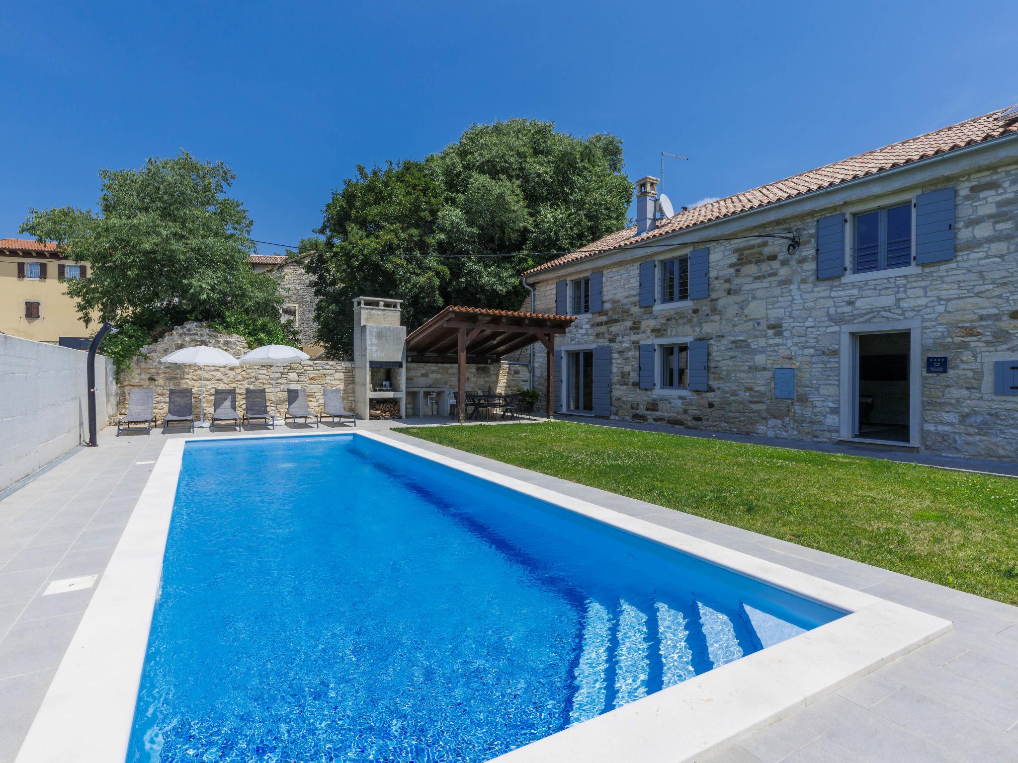 Momjan 5 km von Buje: Sehr altes, schönes Einfamilienhaus "Villa Mirta", auf 2 Stockwerken, renoviert im Jahre 2022. Im Weiler Ljubici, 6 km vom Zentrum von Buje, 5 km vom Zentrum von Grožnjan, ruhige, sonnige Lage, 17 km vom Meer. Zur Alleinbenutzung: Grundstück 1'000 m2 (eingezäunt) mit Rasen, Schwimmbad eckig (10 x 3 m, 150 cm tief, saisonale Verfügbarkeit: 01.Mai. - 15.Okt.) mit Innentreppe. Aussendusche, Terrasse (20 m2), Gartenmöbel, Grill. Im Hause: Internetzugang, Sprudelbad, Trampolin, Waschmaschine. Parkplatz (für 3 Autos) beim Haus auf dem Grundstück. Supermarkt 6 km, Restaurant 2 km, Bushaltestelle 5.1 km, Kieselstrand 18 km, Felsstrand 17 km. Wanderwege ab Haus 100 m, Radweg 150 m. Der Besitzer akzeptiert keine Jugendgruppen.