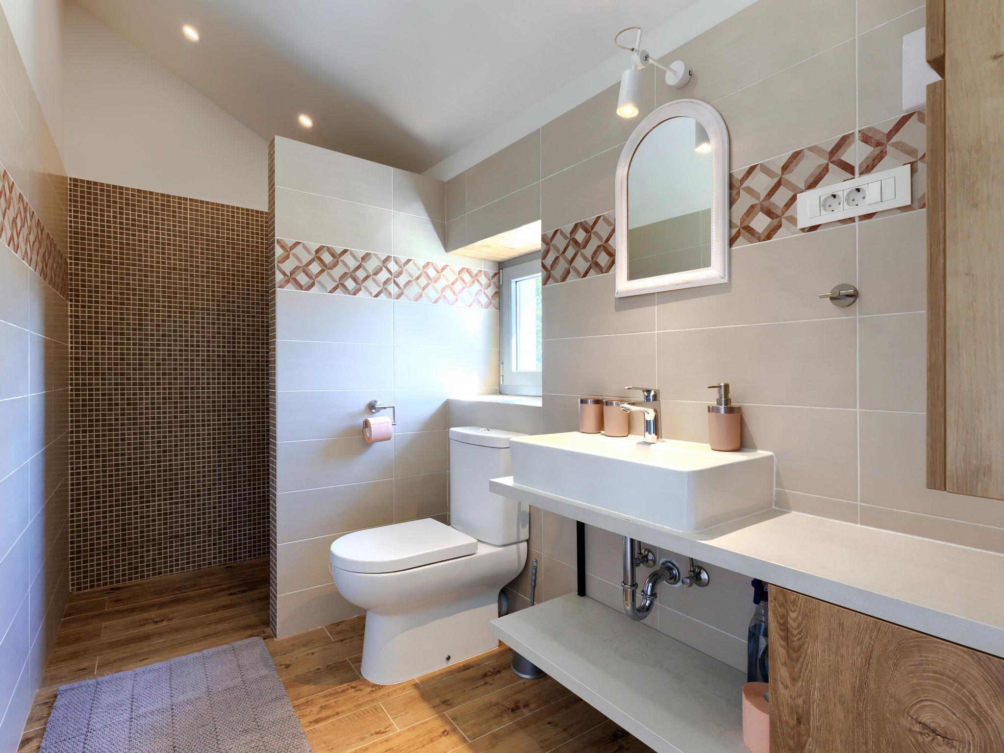 4-Zimmer-Haus 160 m2 auf 2 Stockwerken. Luxuriös und geschmackvoll eingerichtet: Wohn-/Esszimmer mit Sat-TV (Flachbildschirm), Klimaanlage. Ausgang zum Schwimmbad. Offene Küche (Backofen, Geschirrspüler, 4 Induktionskochplatten, Wasserkocher, Tiefkühler, elektrische Kaffeemaschine). Dusche/WC. Obergeschoss: 1 Zimmer mit 1 franz. Bett (160 cm, Länge 200 cm), Sat-TV (Flachbildschirm), Klimaanlage. 1 Zimmer mit 1 Doppelbett (2 x 90 cm, Länge 200 cm), Dusche/WC und Sat-TV (Flachbildschirm), Klimaanlage. Ausgang zur Terrasse. 1 Zimmer mit 2 Betten (90 cm, Länge 200 cm), Klimaanlage. Dusche/WC. Heizung (extra). Terrasse 20 m2, überdacht. Terrassenmöbel, Liegestühle. Zur Verfügung: Bügeleisen, Babybett, Haartrockner. Internet (Wireless LAN, gratis).