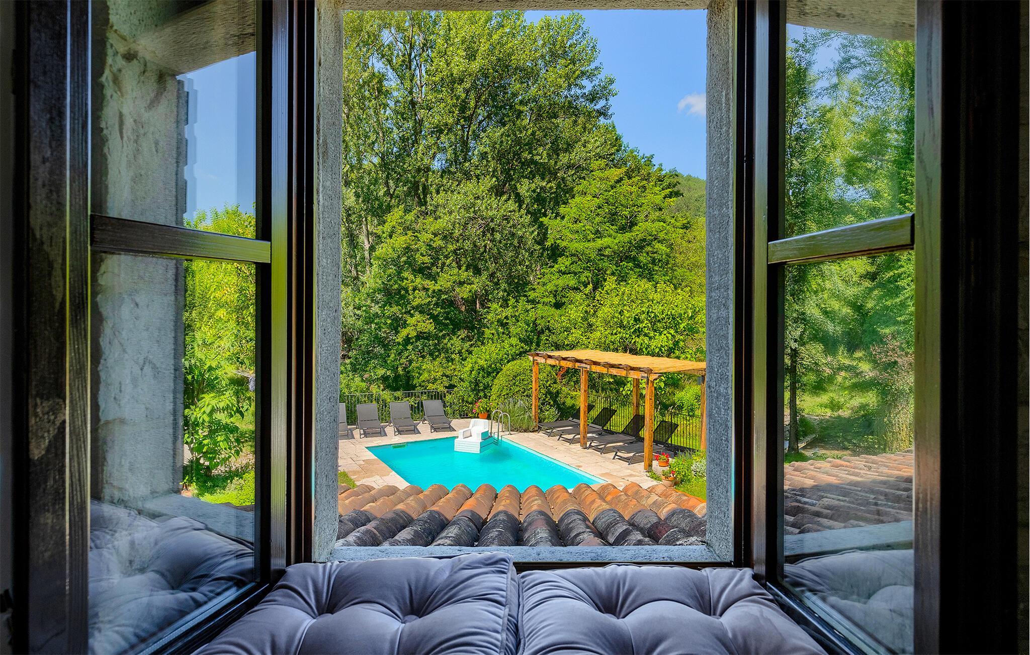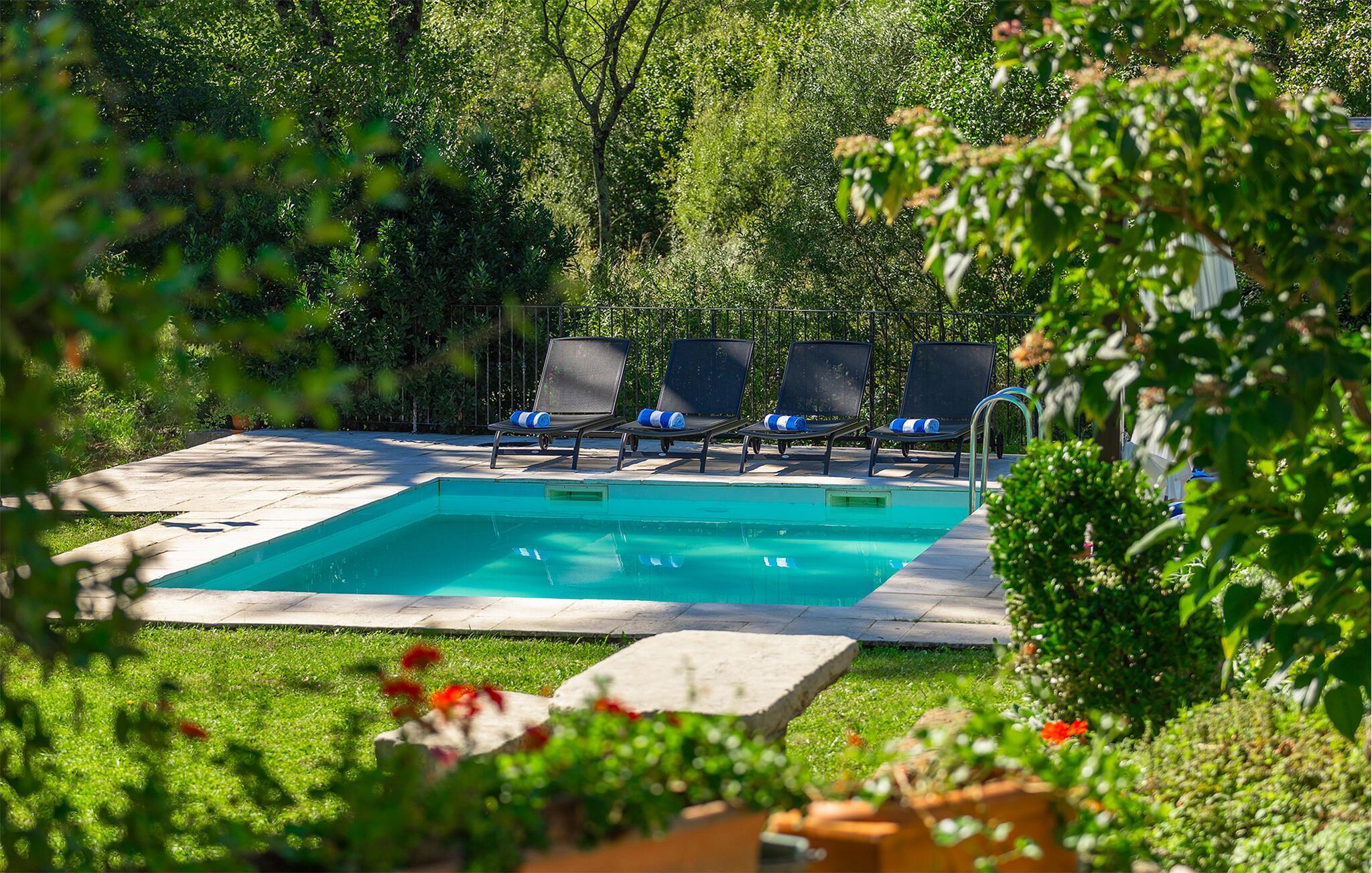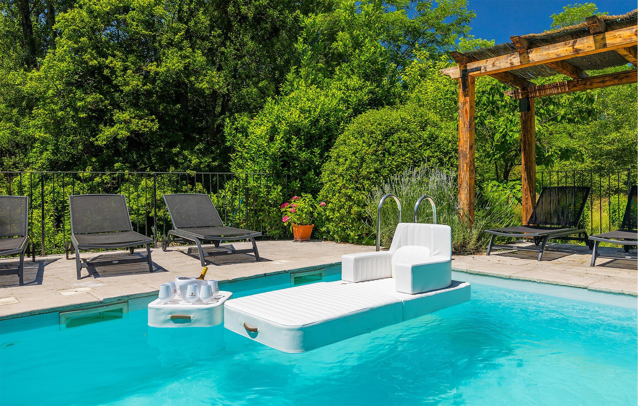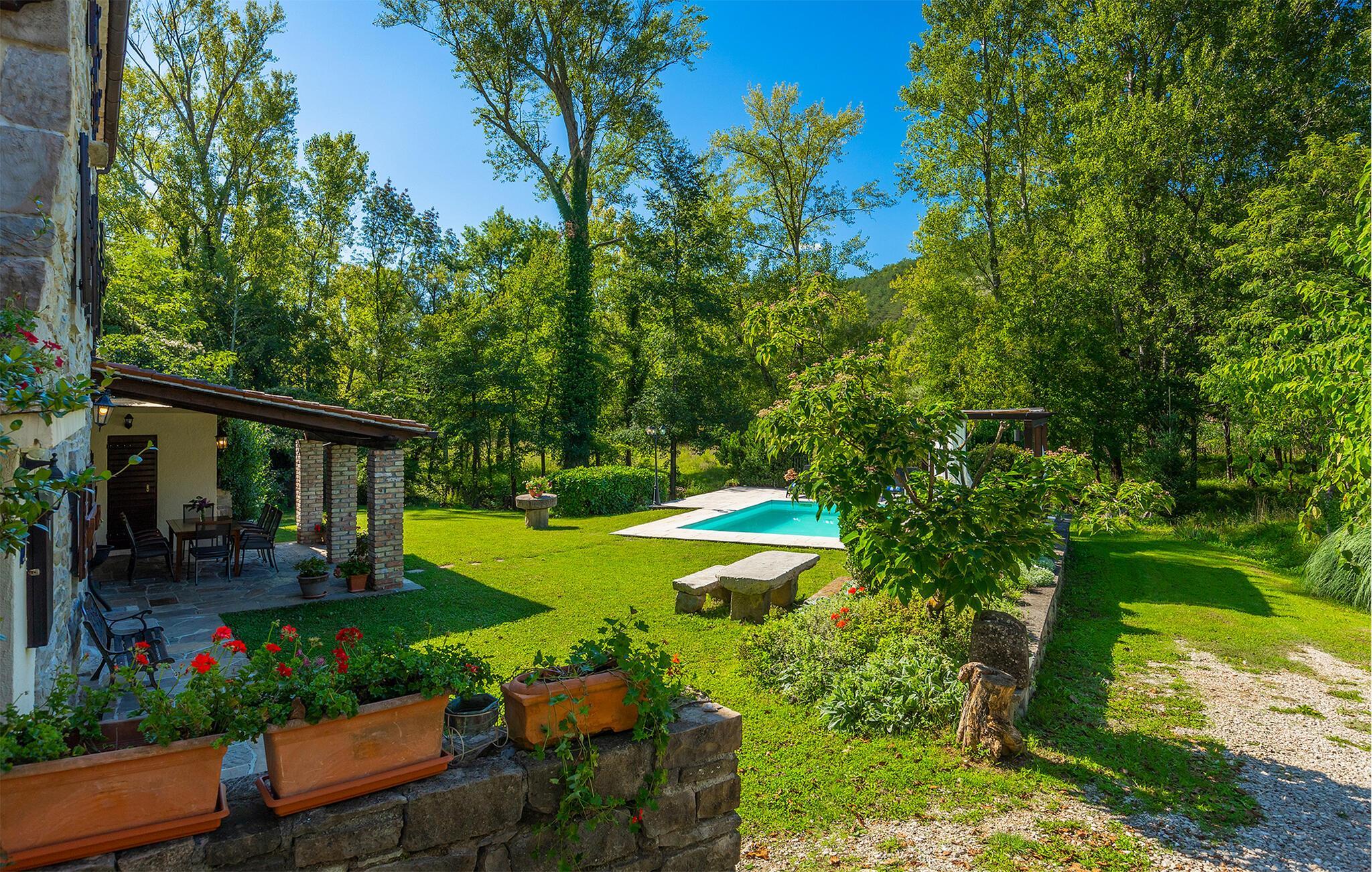 Vor der Villa können Sie sich im Pool abkühlen oder auf Liegestühlen Ihr Lieblingsgetränk trinken. In der ruhigen Atmosphäre der istrischen Umgebung werden Sie sich durch den Geräusch des Baches, der durch das Grundstück fließt, besonders entspannen. Auf der überdachten Terrasse vor der Villa genießen Sie Gerichte, die auf einem Steingrill im Garten zubereitet werden.