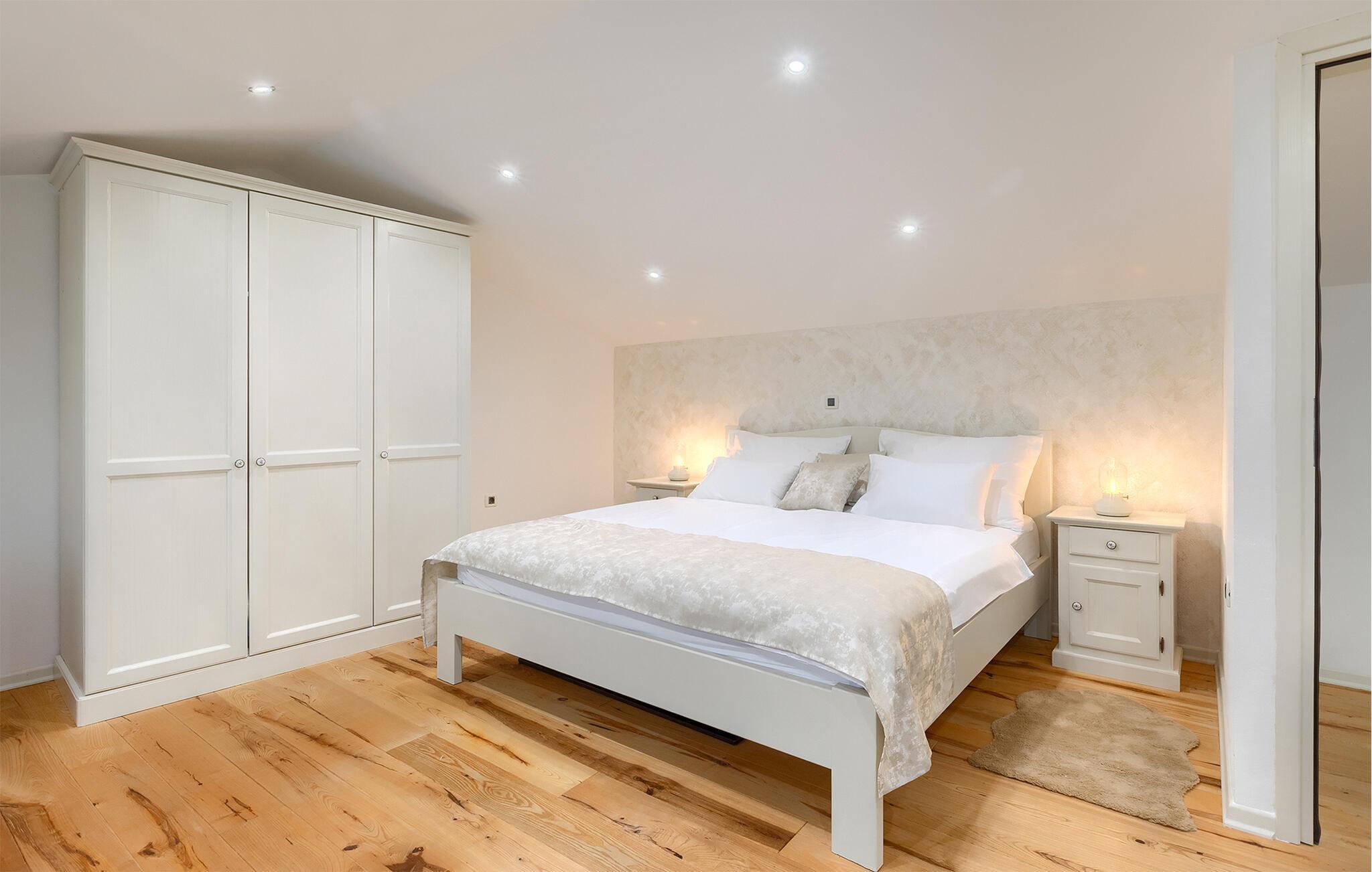 Im ersten Stock befinden sich zwei gemütliche Schlafzimmer mit Doppelbetten, während sich die restlichen Schlafzimmer mit Doppelbetten im zweiten Stock befinden. Auf jeder Etage befindet sich ein Badezimmer.