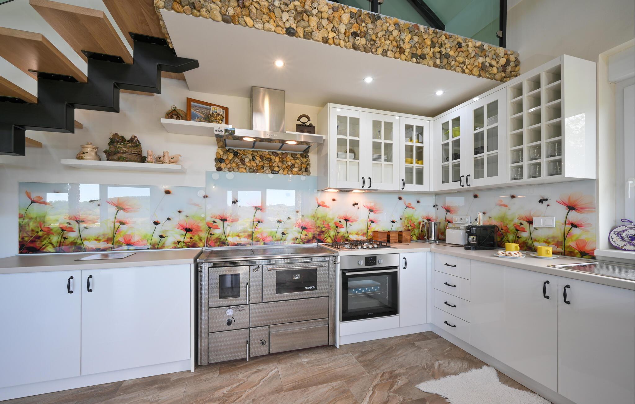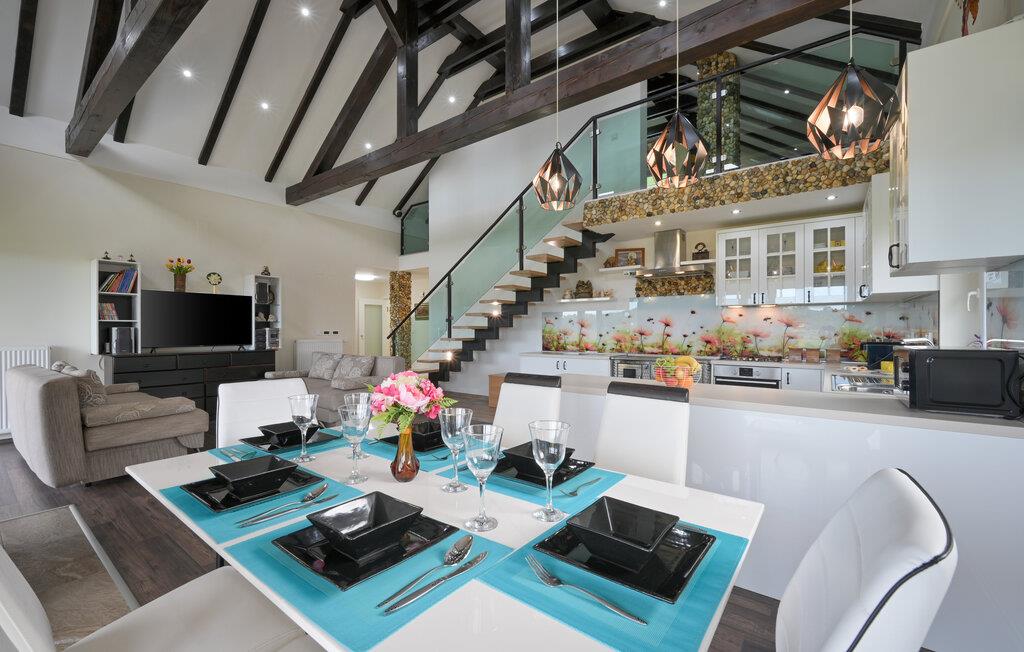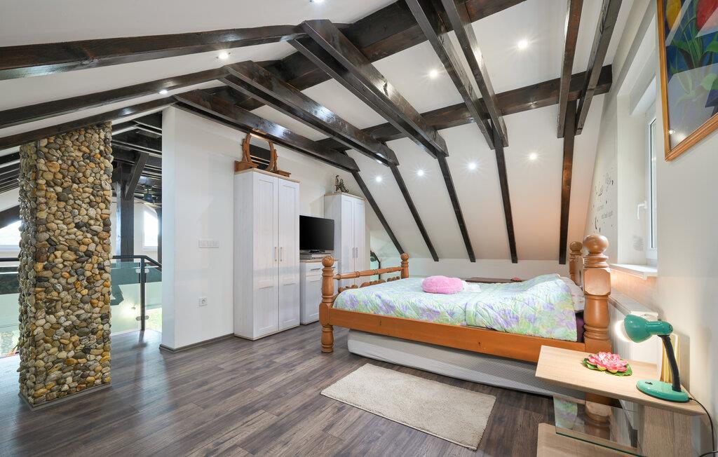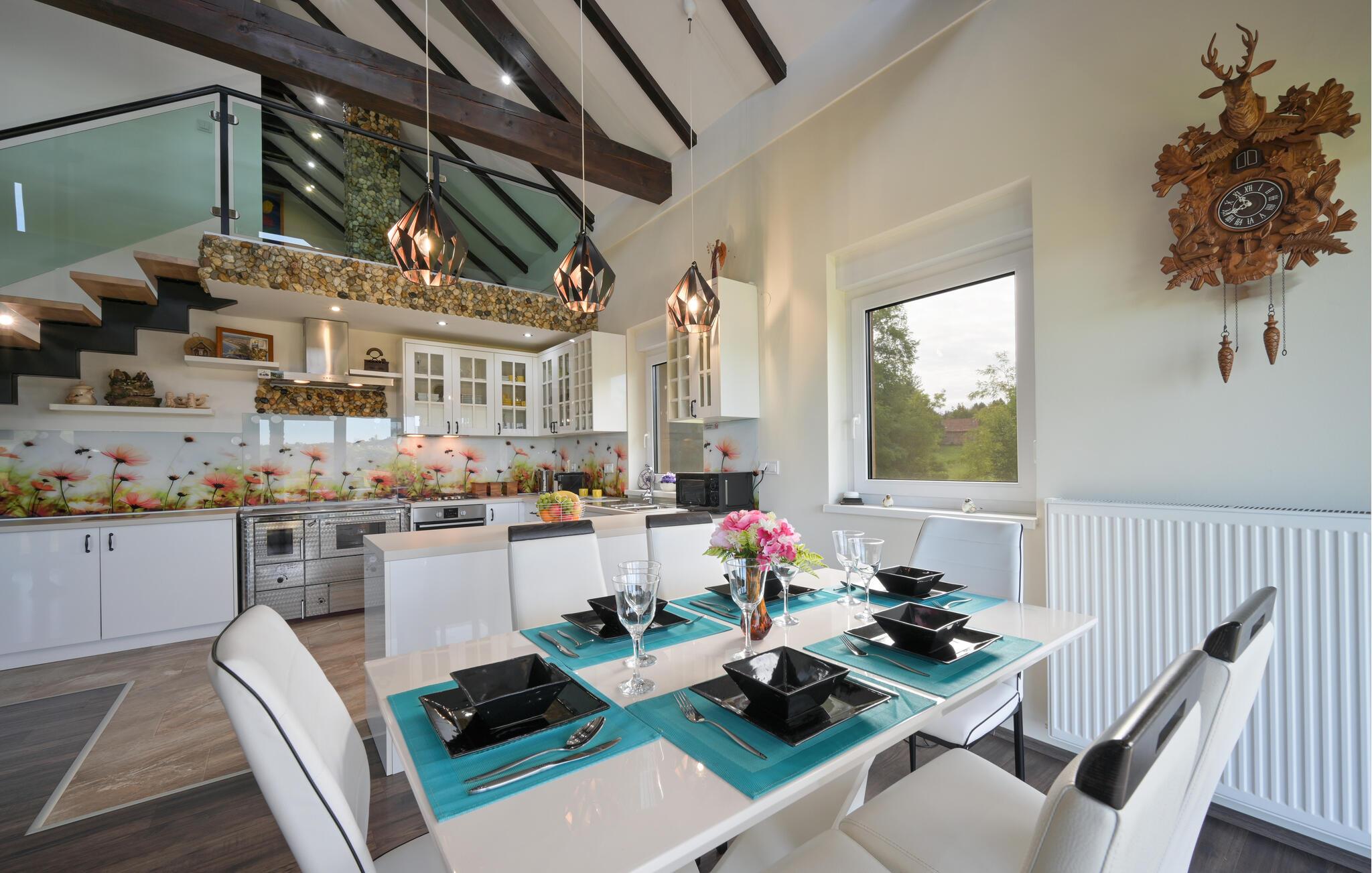 Genießen Sie hier eine harmonische Kombination aus hellen Räumen und dunklen Deckenbalken, die für Entspannung sorgt. Erfreuen Sie sich an der schönen Aussicht und genießen Sie bei den gemeinsamen Mahlzeiten den Blick ins Freie. Machen Sie es sich nach einem spannenden Tag auf dem Sofa bequem und sorgen Sie mit einem Feuer im Kaminofen für eine gemütliche Stimmung.