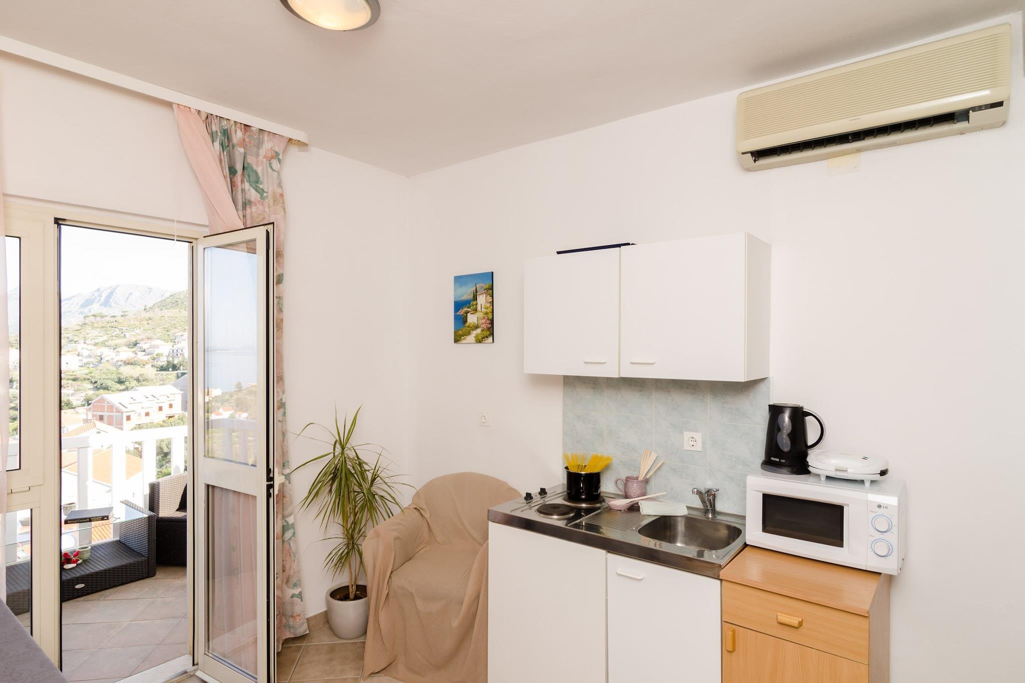 Apartments Villa Bell Memories are located in Cavtat, 12 minutes from the beautiful sandy beach "Albatros" and a 6 minute ride from the Cavtat Old Town. All guests have access to large common furnished terrace with sea view, swimming pool, sun beds, parasols, outdoor shower, sauna and gym. Luggage storage before check in and after check out are available, so that you can explore the area a bit more before departure. Free private parking on site. This lovely one bedroom apartment can comfortably accommodate up to three persons. It features free Wi-Fi, air conditioning and LCD SAT TV. Kitchenette is well equipped and comes with dining area. Private bathroom includes shower and hair dryer. Balcony with an outdoor seating area and sea view is at guests disposal. Baby cot and highchair are available upon request. Many shops, restaurants, cafes, parks and a famous promenade are around 20 minutes walk away, as well as tennis courts, bank, ATM and post office. There are also many beaches in the nearby area awaiting for your discovery. The accommodation is 30 minutes away from Dubrovnik Old Town (by car or by bus) with a bus stop 500 meters from the property. Dubrovnik Airport is 4 km away from the property.